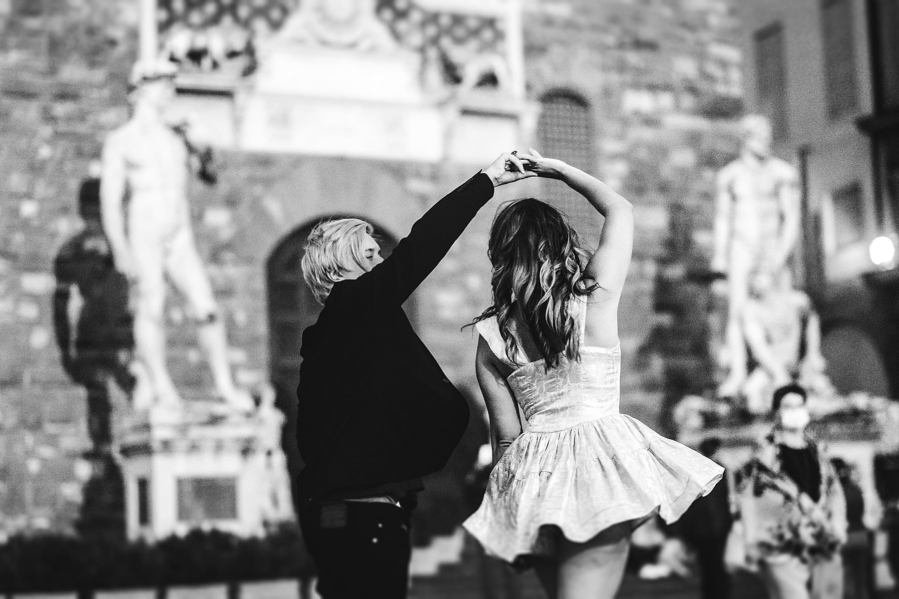 Romantic and exciting couple engagement session in Florence, Tuscany. Photo by the Italian elegant creative and modern proposal photographer in Tuscany based Florence, Italy