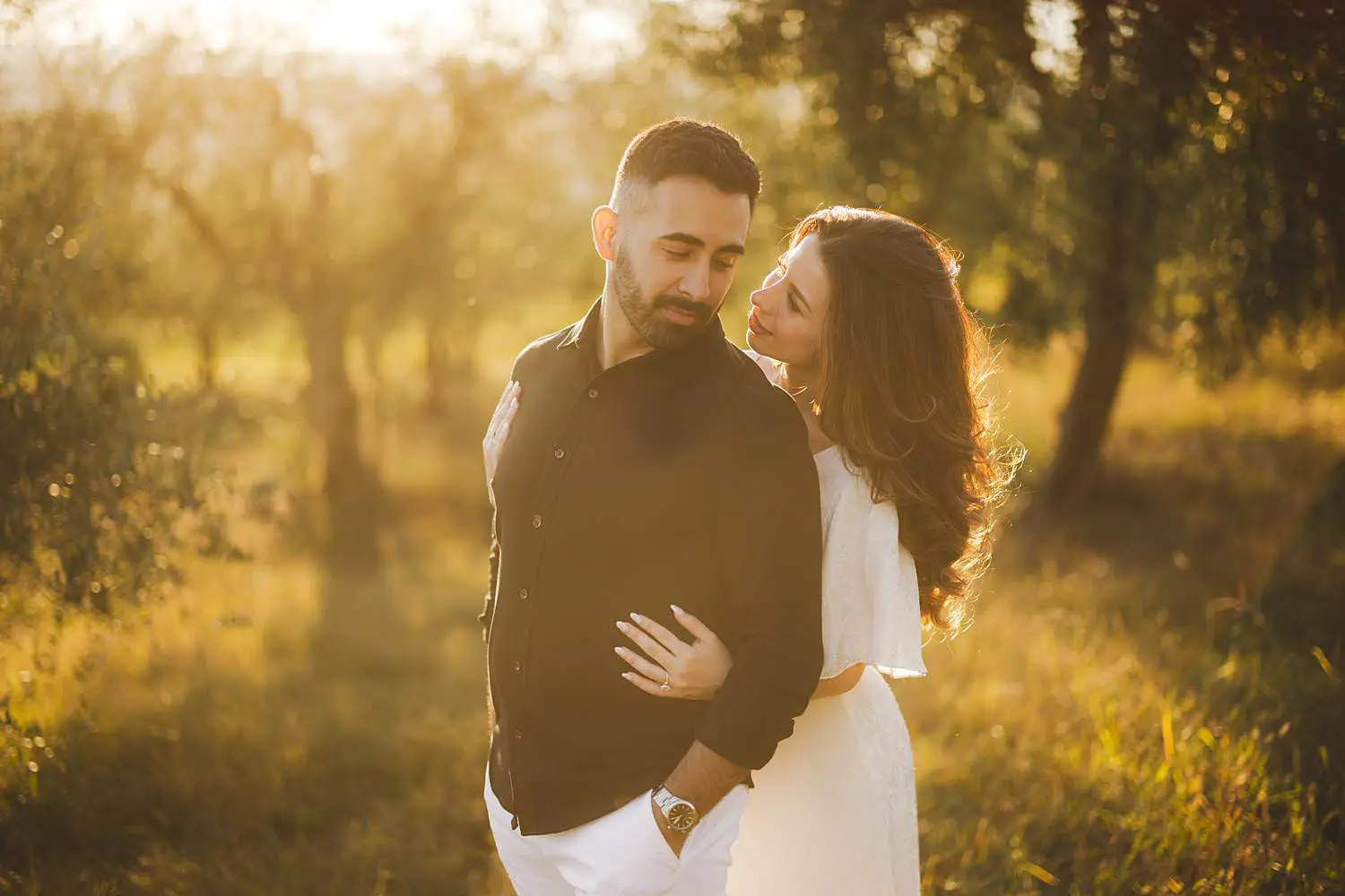 Elegant engagement photo under golden light in the heart of Tuscany. Photo by the Italian elegant engagement photographer in Tuscany Gabriele Fani
