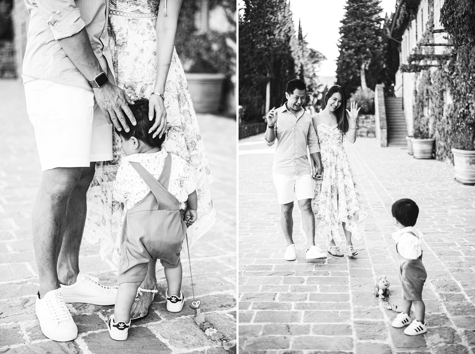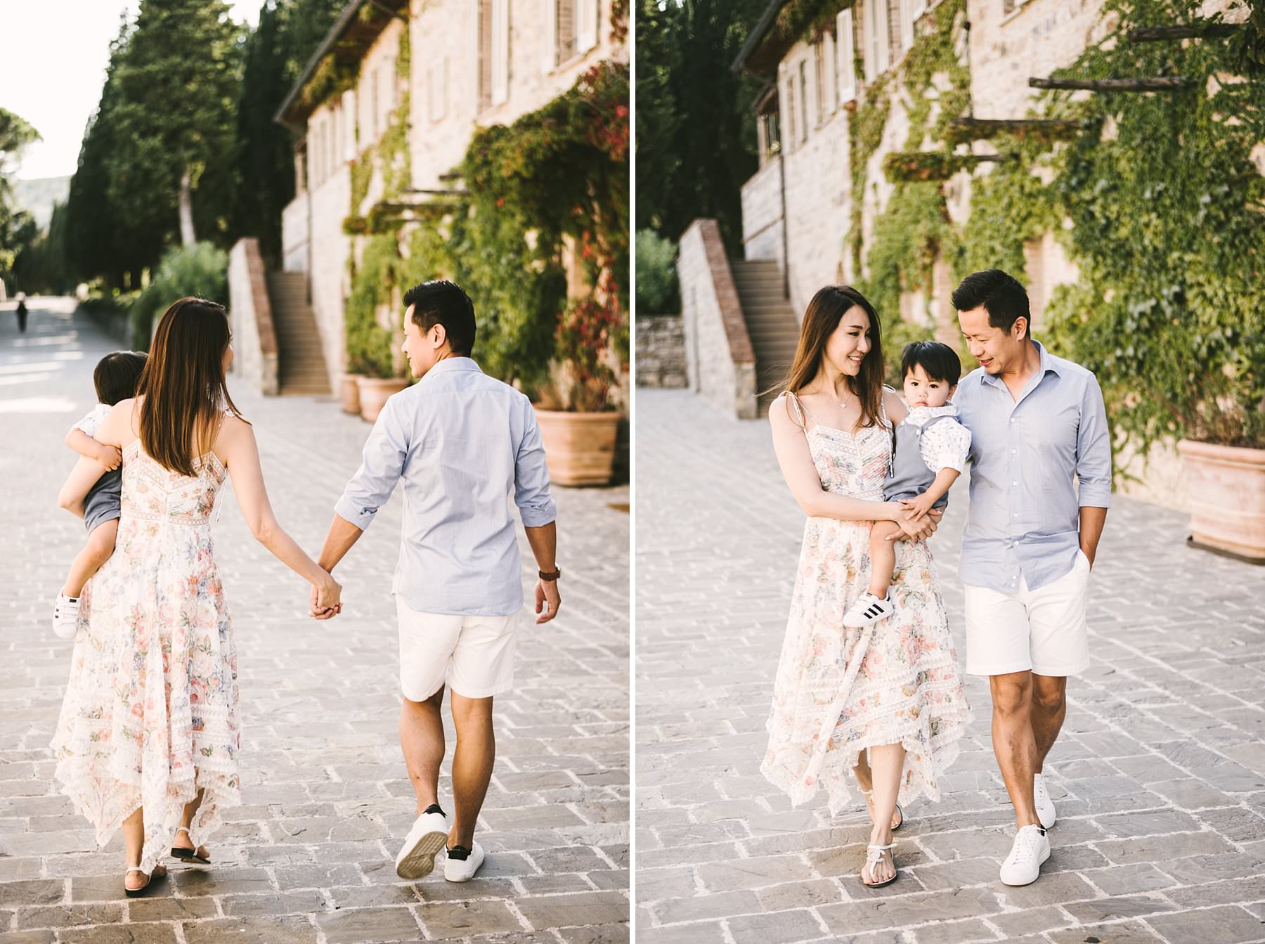 Serena and Kelvin, wife and husband from Singapore, chose Tuscany as the destination of a relaxing holiday with their littlest love: their son. Since he was so young, they decided to contact me for a family holiday photoshoot so that the memory of those days would live forever – for all of them.