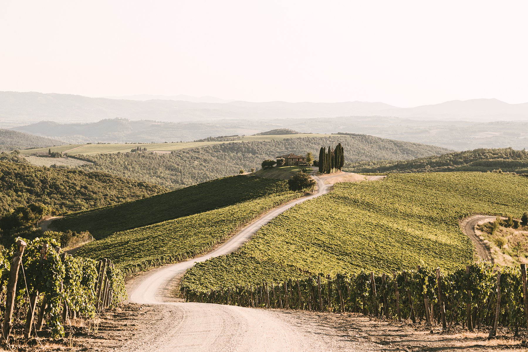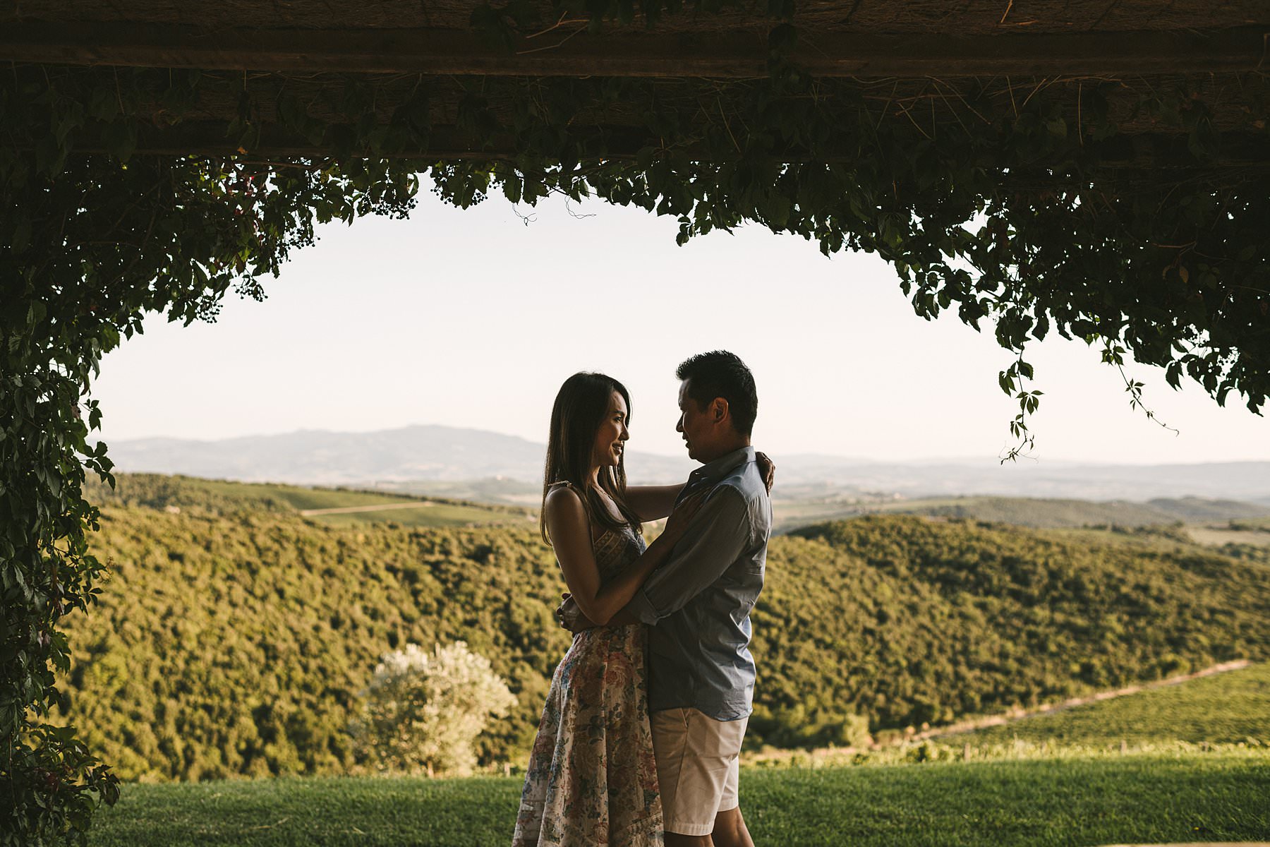 When I shot Serena and Kelvin’s family photos, the owners were so kind to open their private “Capanna” vineyard for us. Imagine an endless expanse of rolling hills covered in grapevines, with a white path that guides your gaze to a little, picturesque cypress grove. The warm and golden light of the late afternoon was the finishing touch to a family holiday photoshoot that they will surely cherish forever.