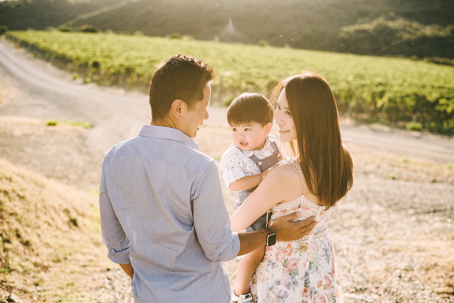 The marvelous vineyard of Rosewood Castiglion del Bosco. Serena and Kelvin, wife and husband from Singapore, chose Tuscany as the destination of a relaxing holiday with their littlest love: their son. Since he was so young, they decided to contact me for a family holiday photoshoot so that the memory of those days would live forever – for all of them. We met at the location where they were staying, Rosewood Castiglion del Bosco, and I guided them through a simple but meaningful photo session. When one of the protagonists is so young, it can be tricky to keep him focused and entertained throughout the shooting: that’s why is always better to hire an experienced photographer. Photo by the Italian experienced elegant family photographer in Val d’Orcia, Tuscany based Florence Gabriele Fani