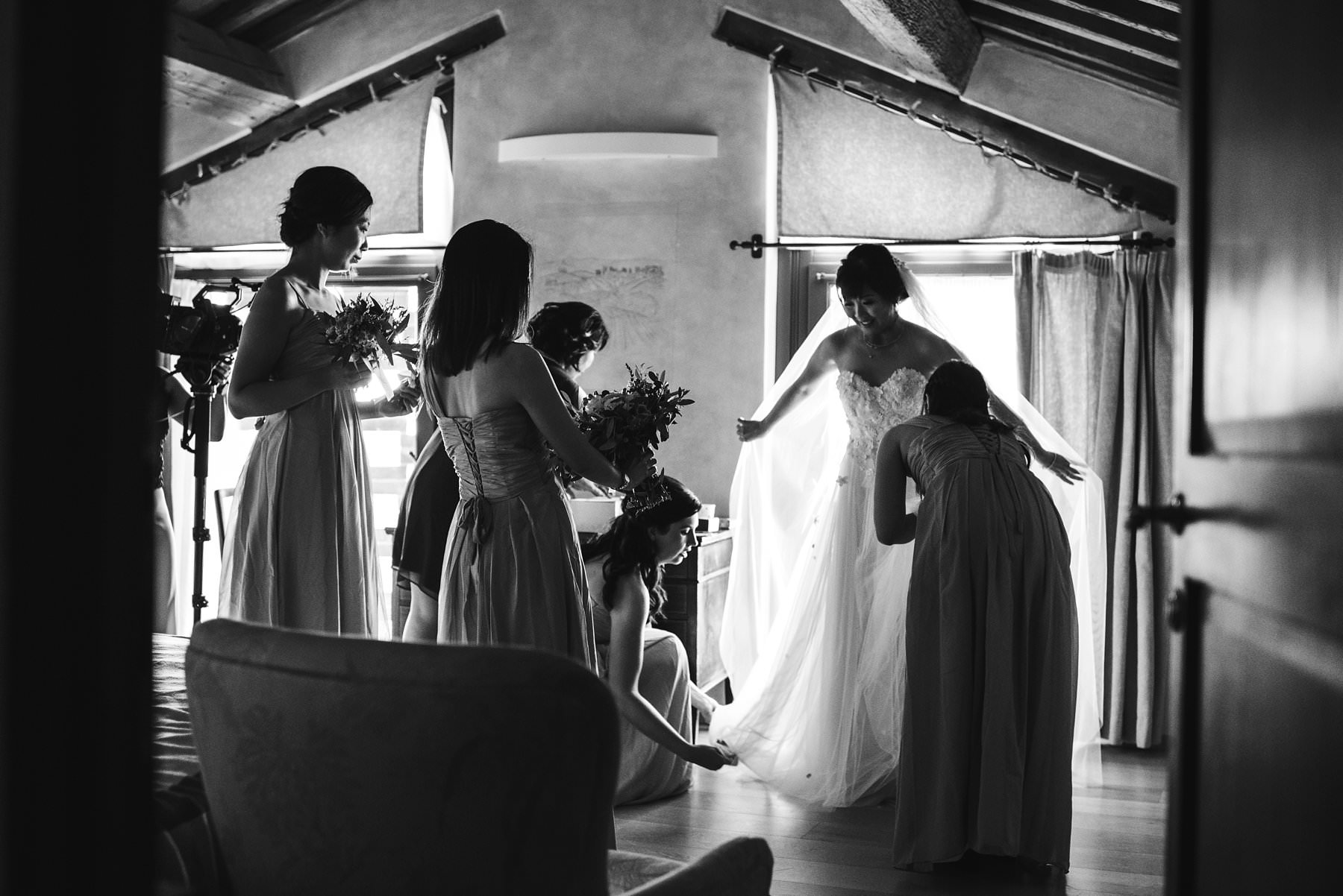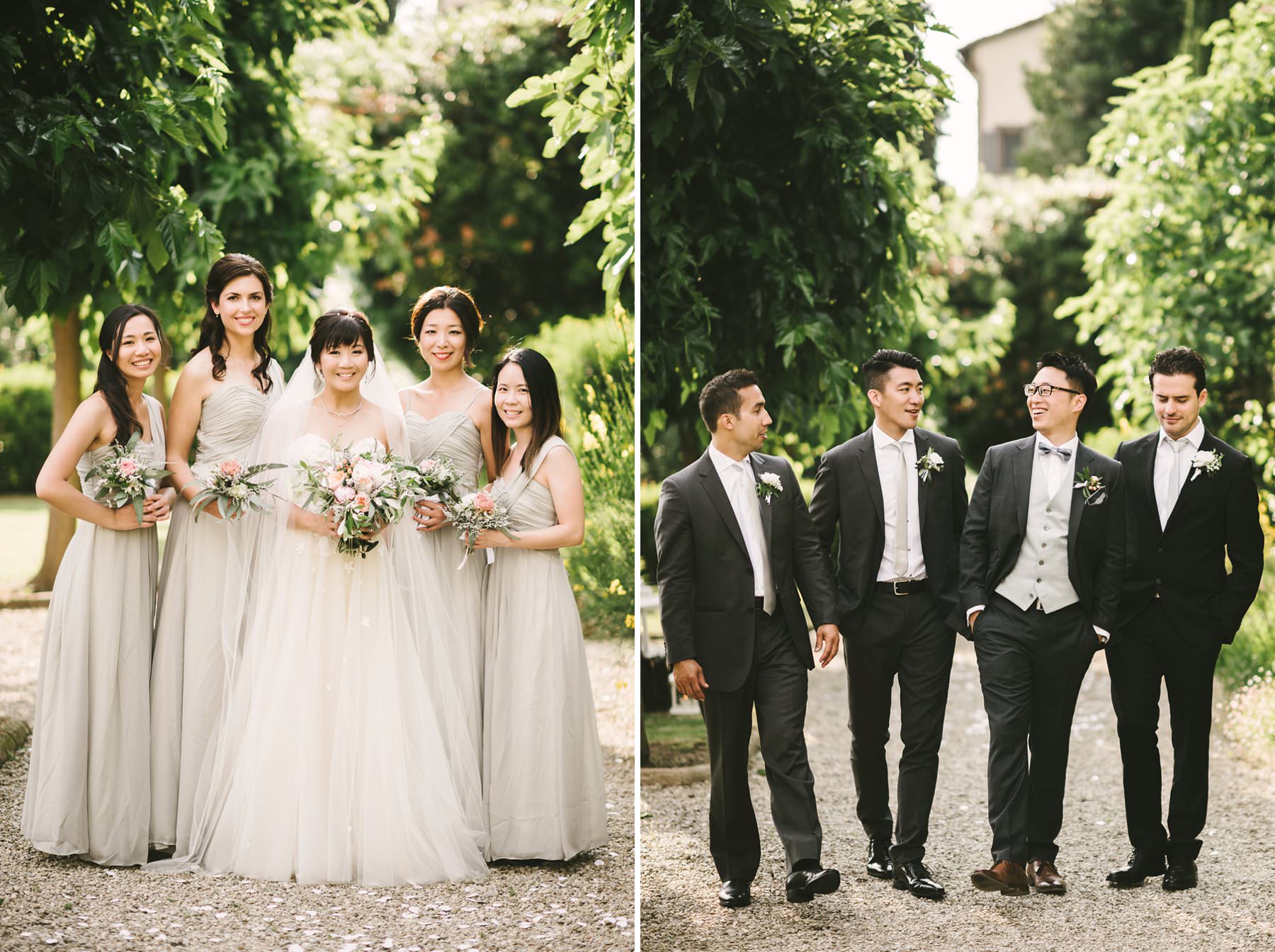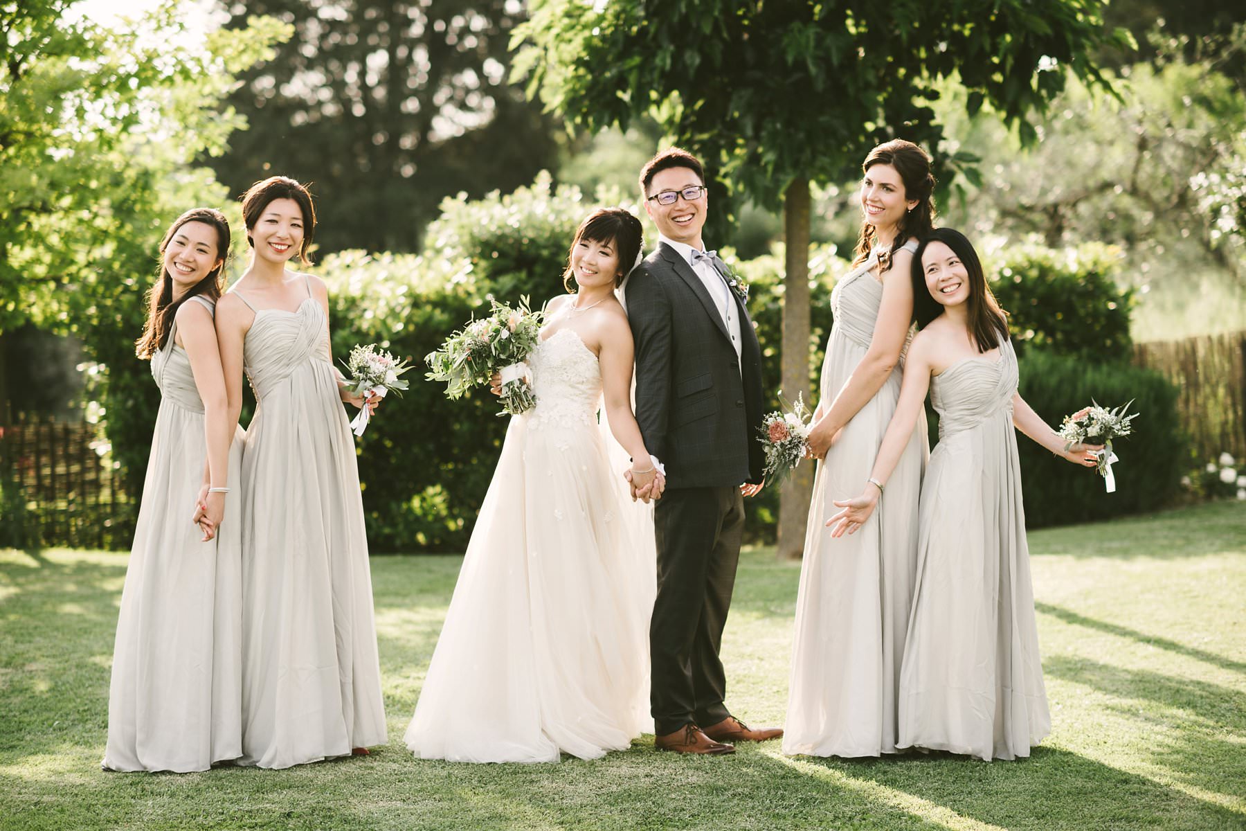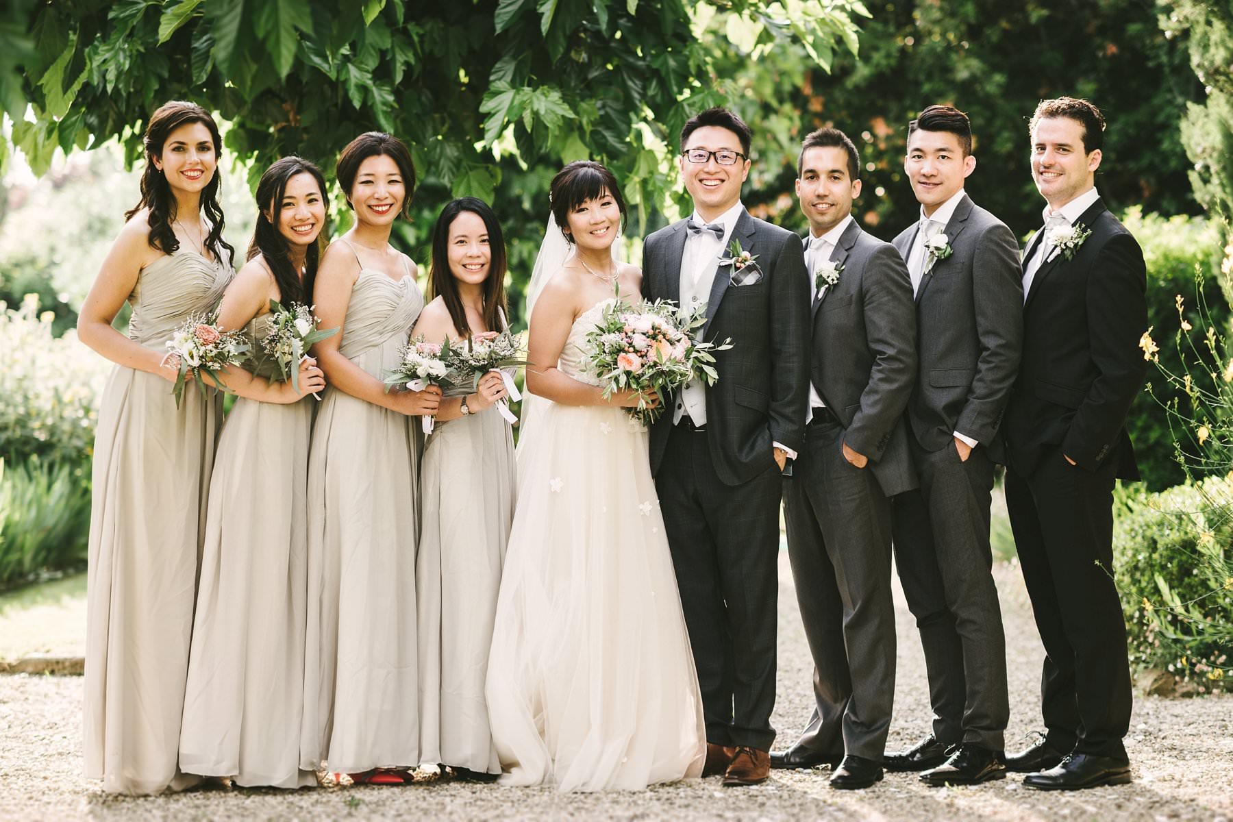 Elegant and classic bridal party photo by the Italian wedding photographer in Tuscany based Florence Gabriele Fani