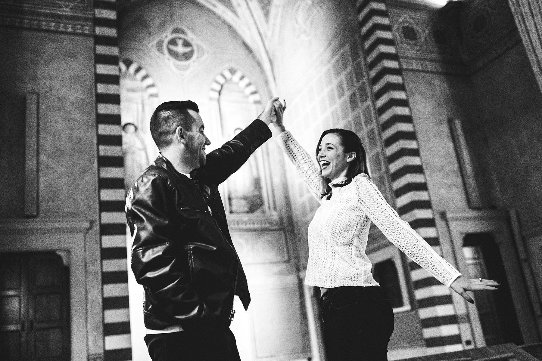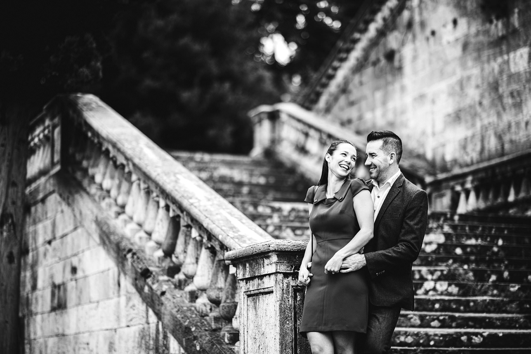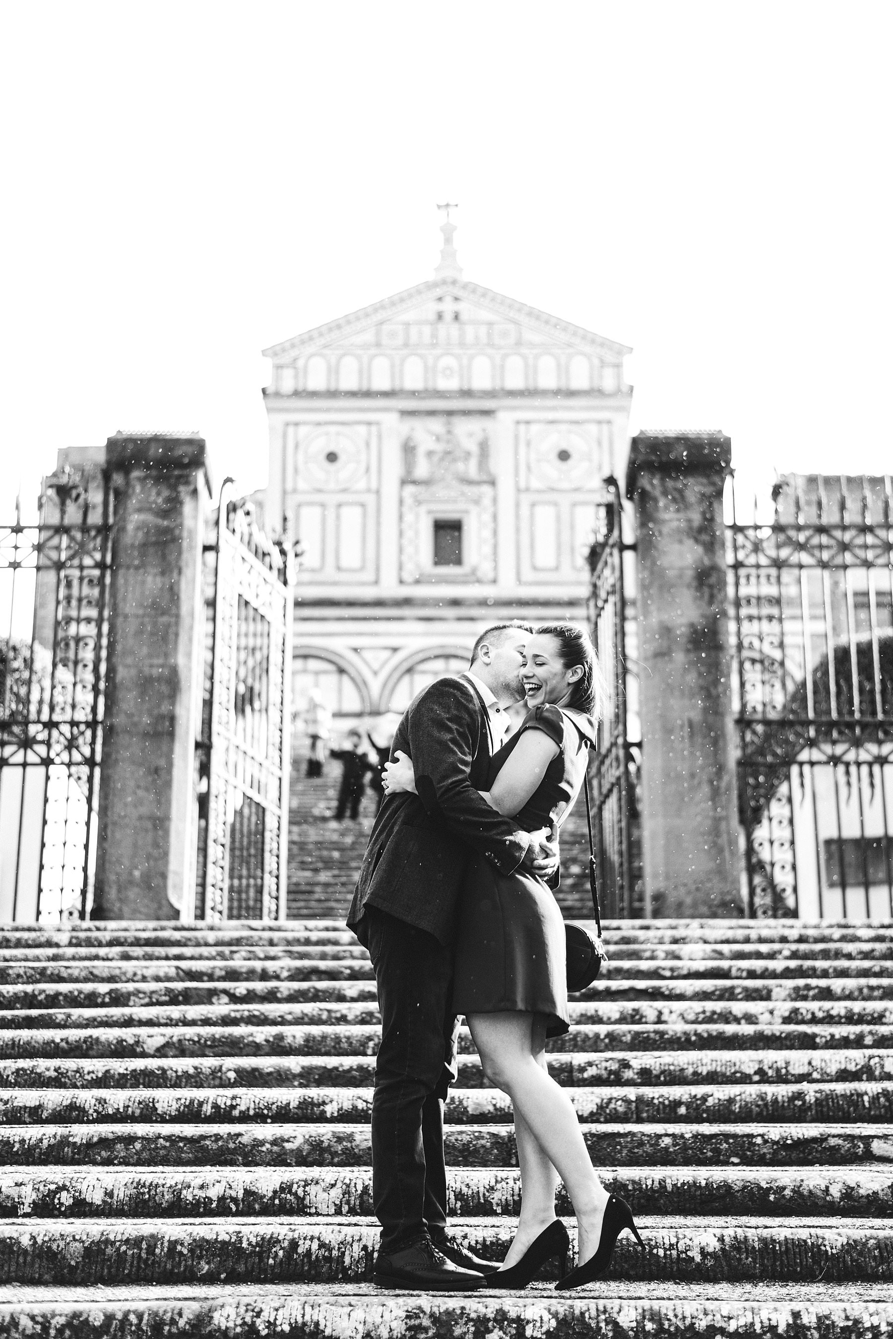 Cara and Vincent’s exciting and lovely surprise proposal and photoshoot. San Miniato al Monte couple portrait photo shoot with breathtaking view of Florence. Photo by the elegant creative and modern engagement photographer in Tuscany based Florence Gabriele Fani