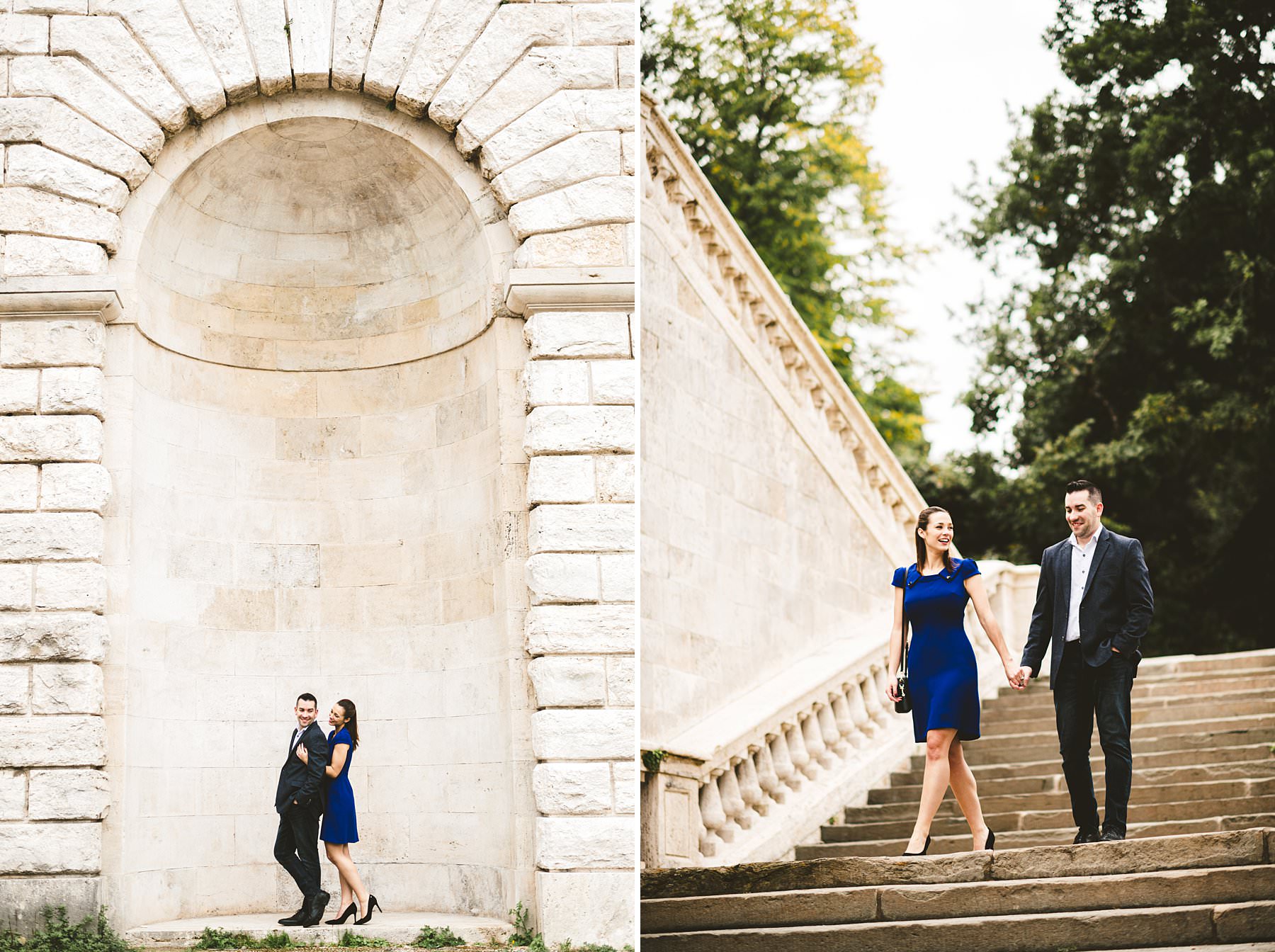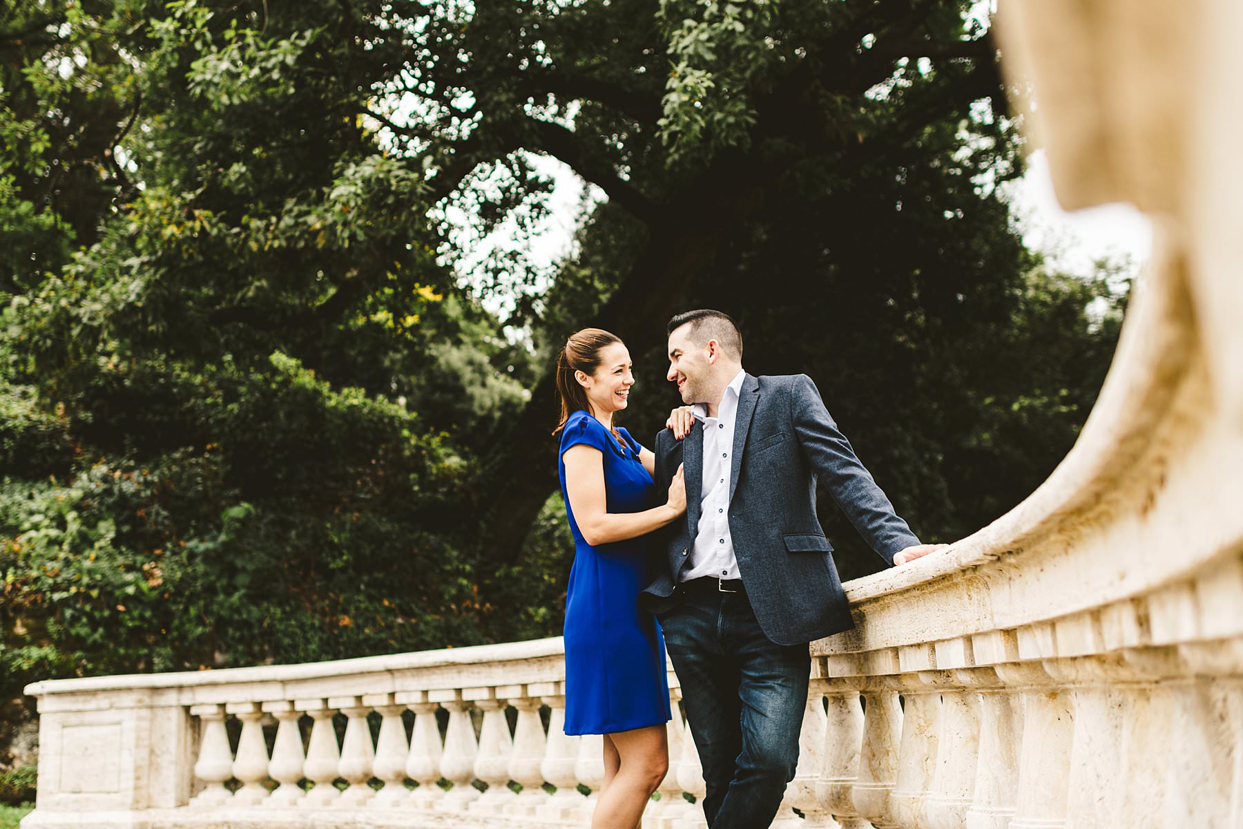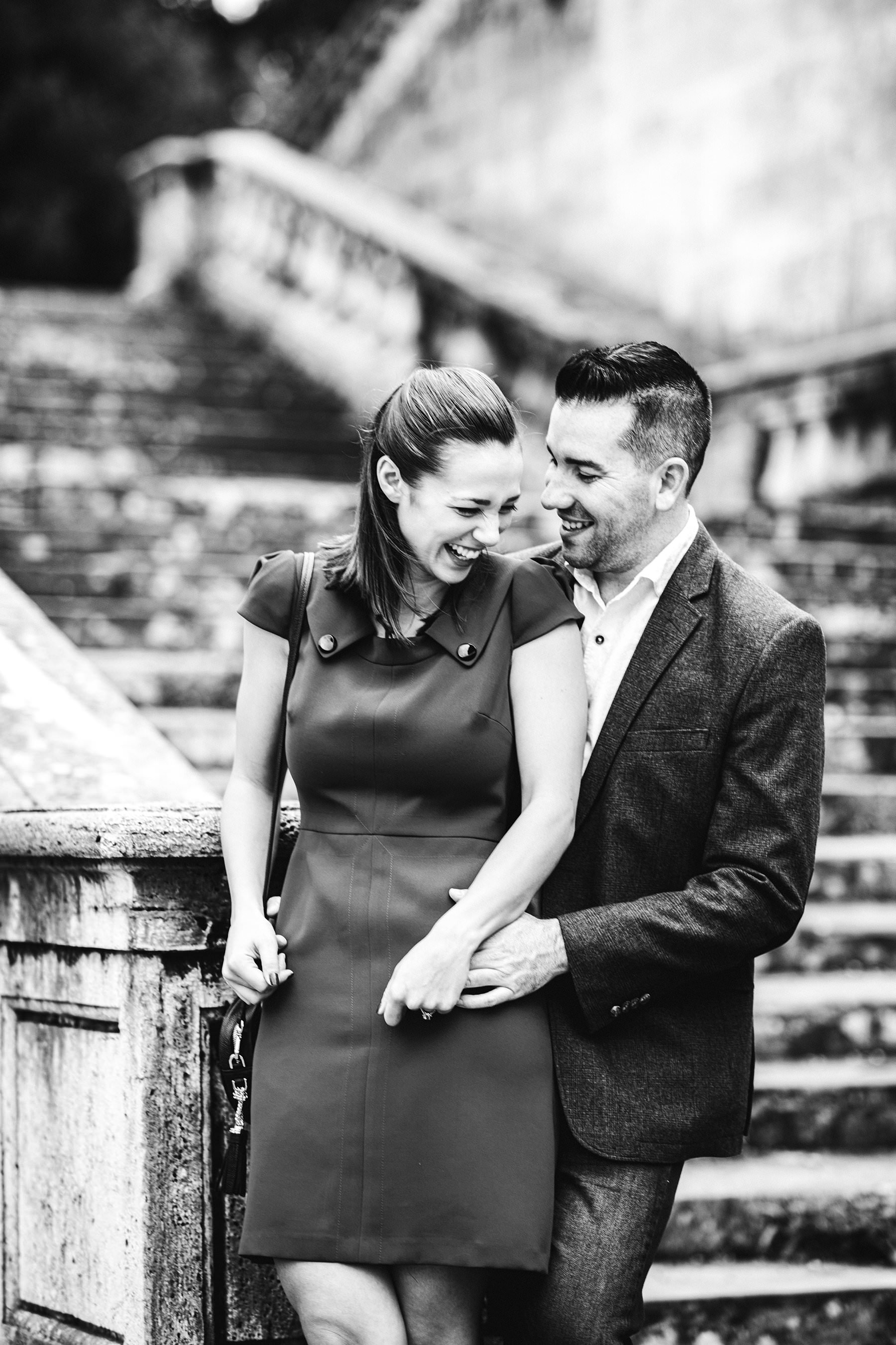 She didn’t suspect anything: she wore a stunning electric blue dress and she shed tears of joy when Vincent kneeled in front of her. I was hiding in a strategic position that allowed me to capture the touching surprise proposal and, after that, I came out for an engagement shooting with an incredible background.