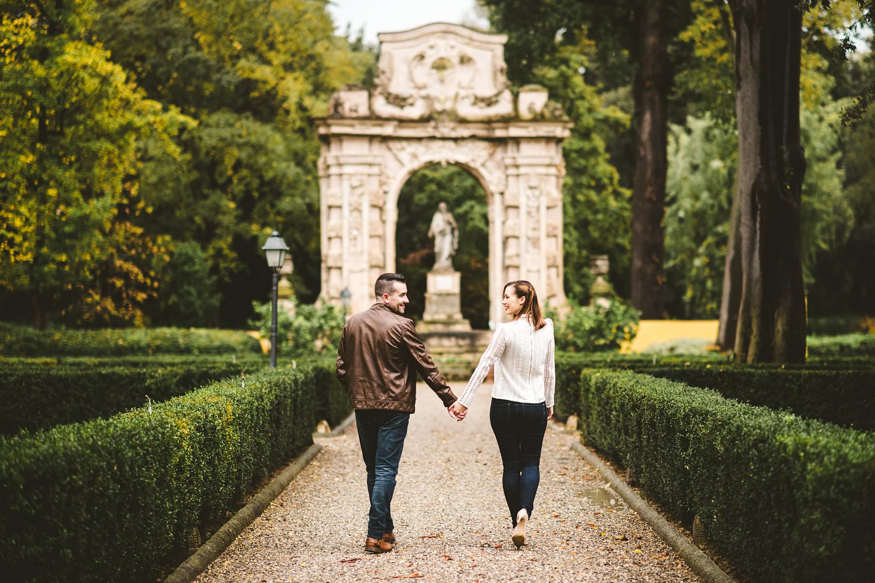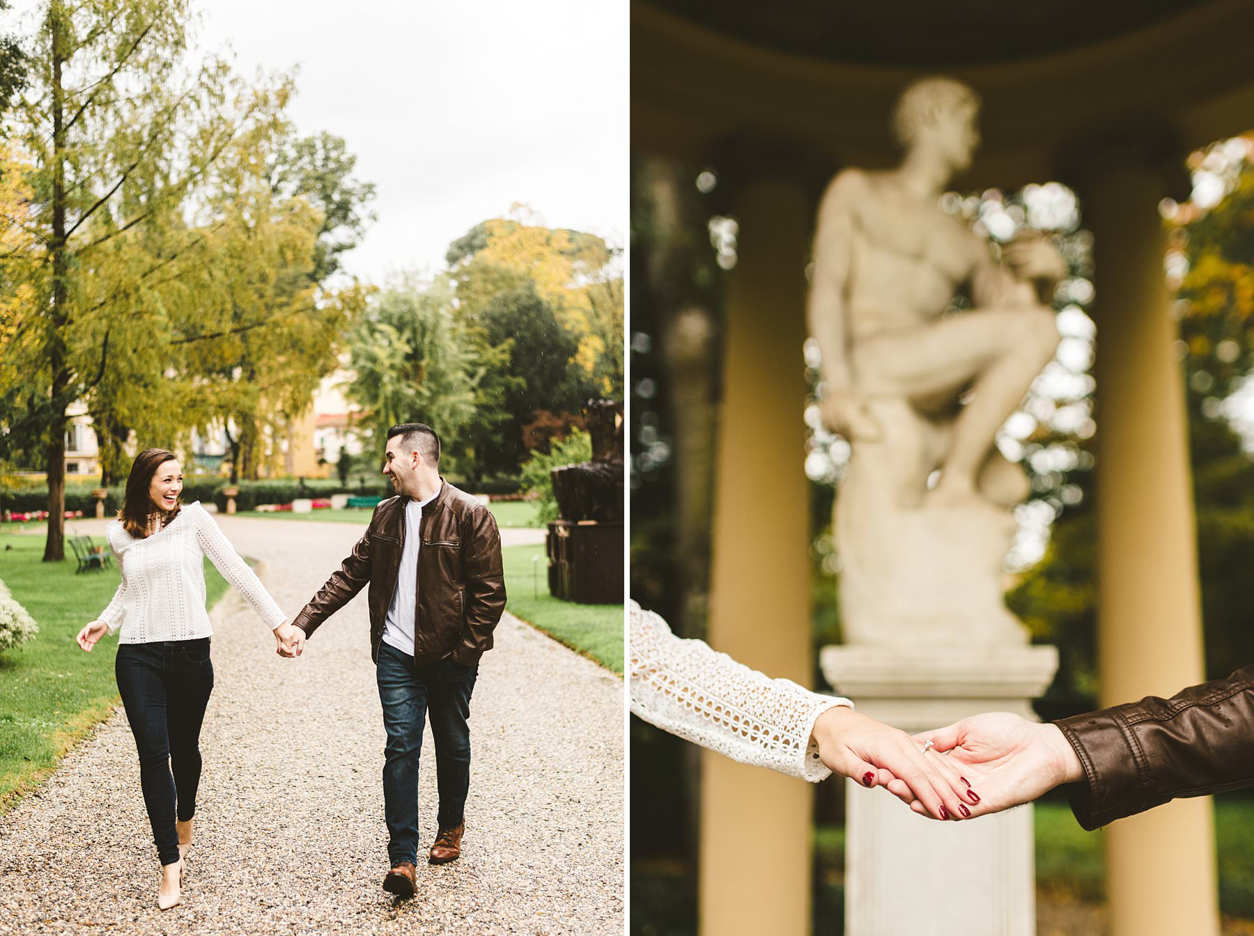 Unforgettable surprise proposal photoshoot at Four Seasons in Florence. Lovely and romantic walk photo tour in the Gherardesca garden park at Hotel Four Seasons Florence, the most luxury hotel in the city. Photo by the elegant creative and modern engagement photographer in Tuscany based Florence Gabriele Fani