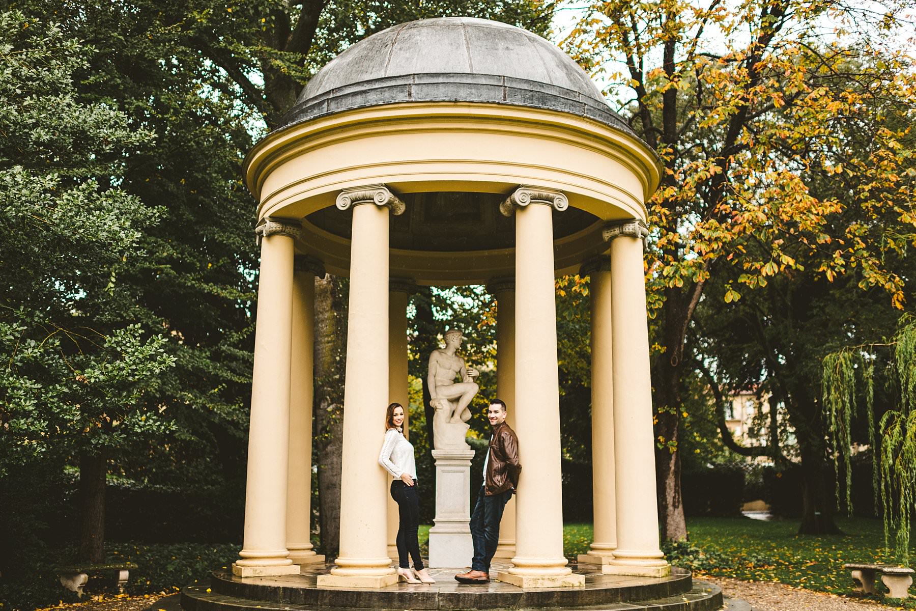 Four Seasons Florence, a unique location for your photo shoot. Being one of the most luxurious accommodations in the city, this hotel is a perfectly restored Renaissance gem. We had the chance to use the foyer, Convent Ballroom and the lobby of Gherardesca Palace as settings: their beautiful architecture and historic frescoes added unique value to the pictures. Not to mention the immense, wonderful Gherardesca Garden with its little Ionic temple: no setting could be more romantic than that! Photo by the elegant creative and modern engagement photographer in Tuscany based Florence Gabriele Fani