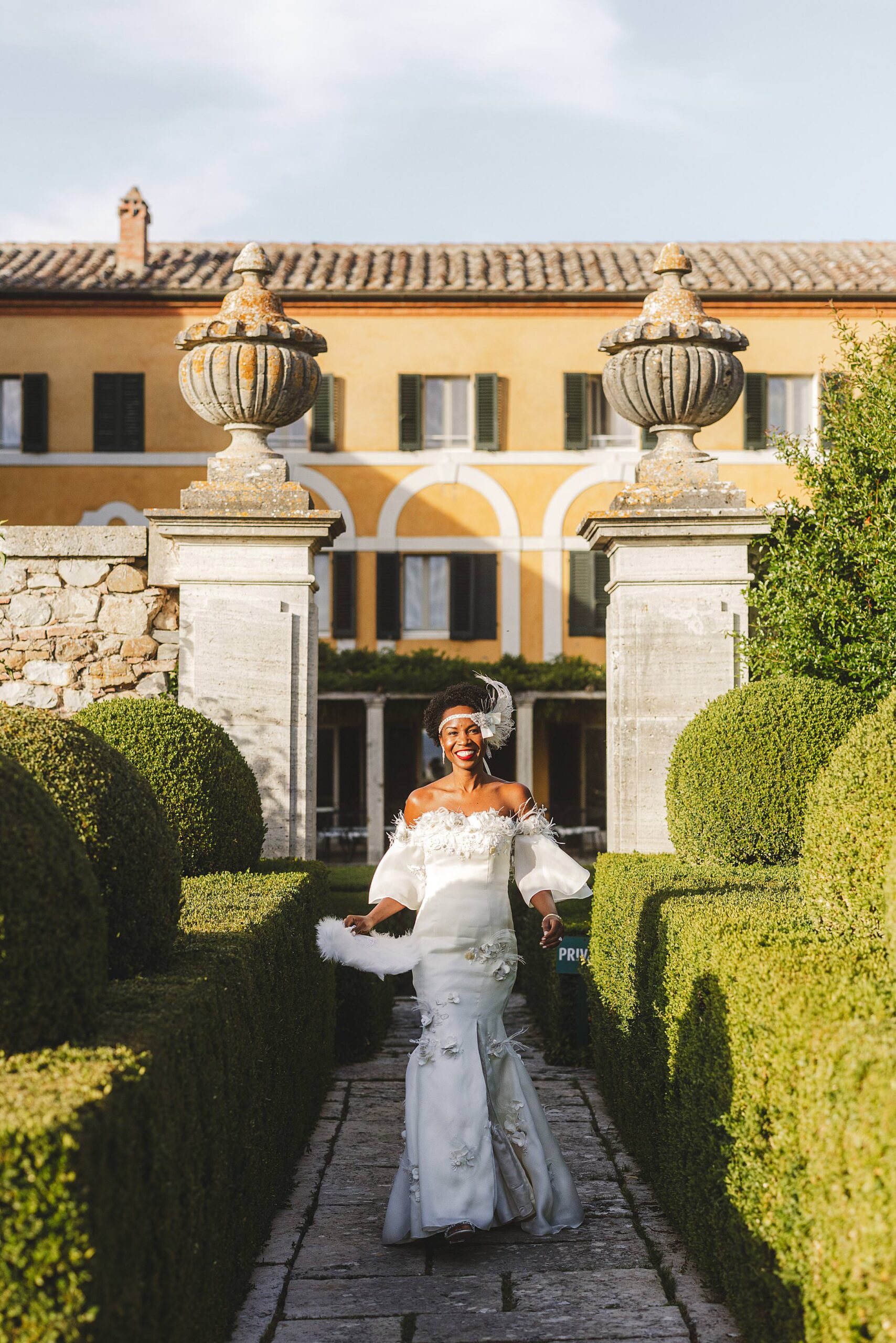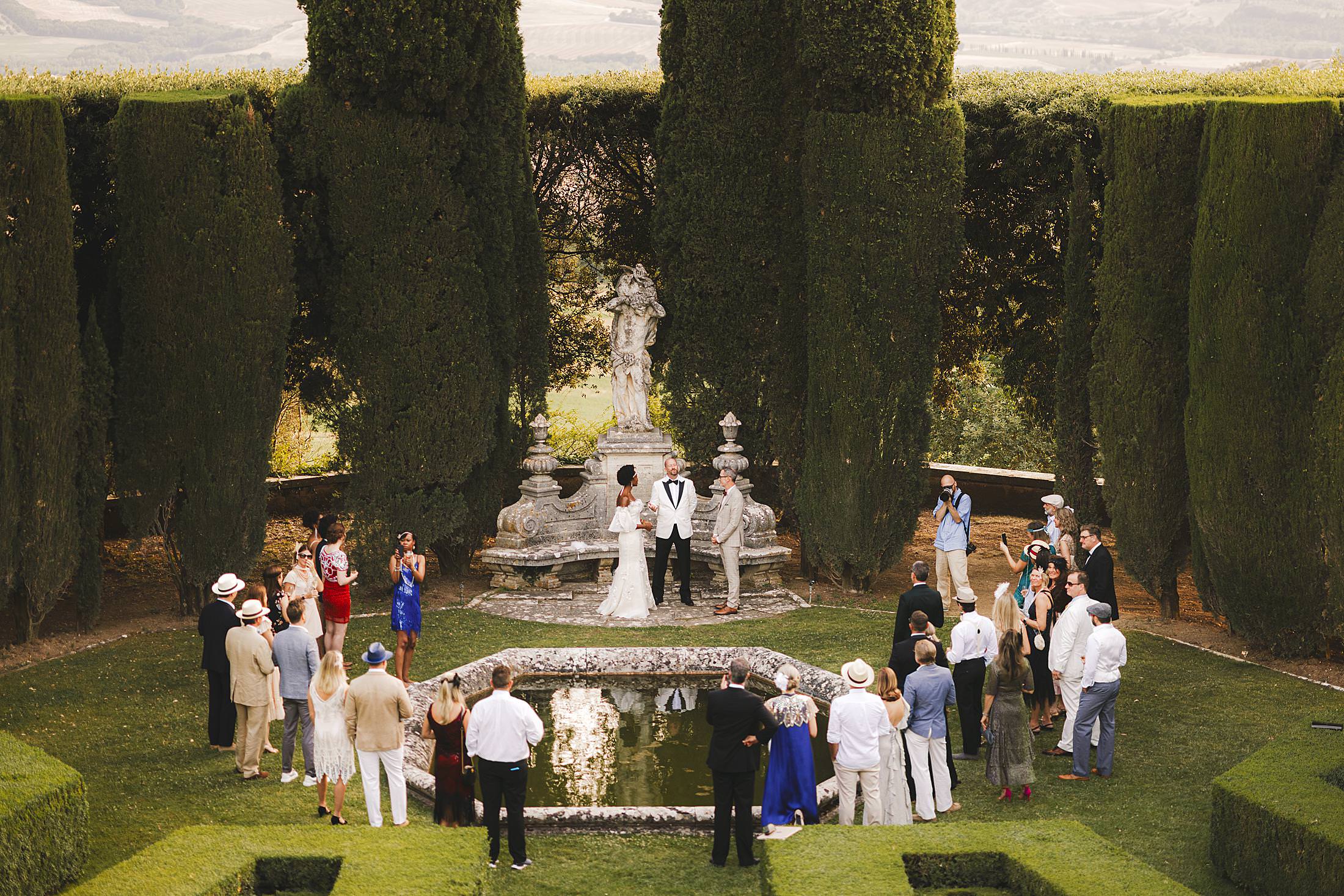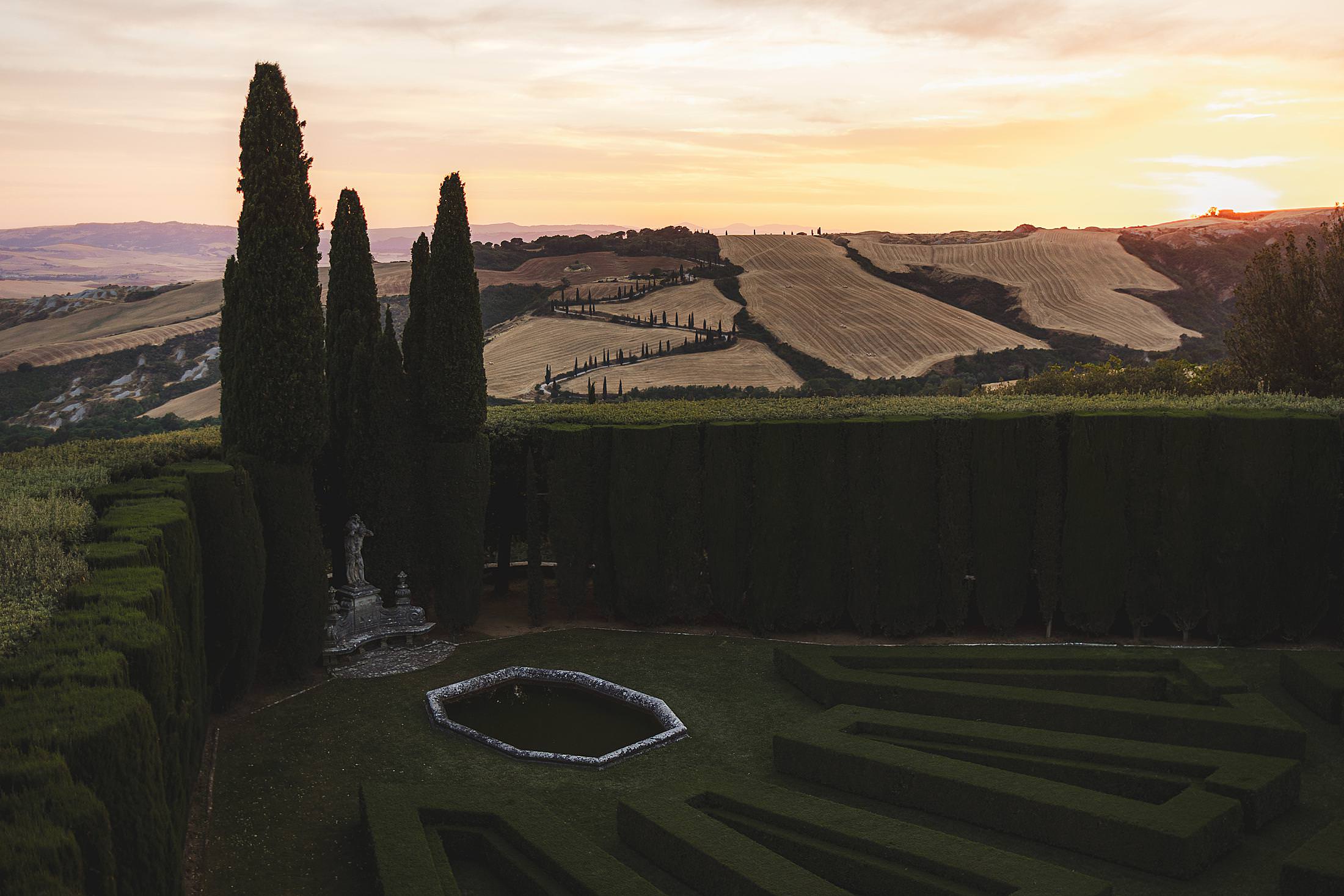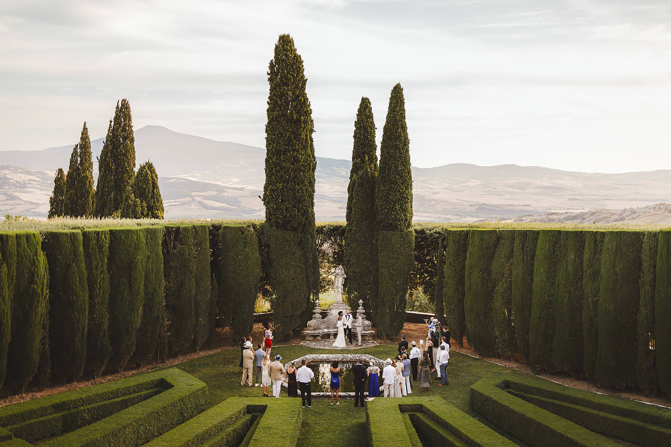 Italian style garden at La Foce breathtaking wedding venue, one of the most beautiful in the Val d’Orcia. Photo by the Italian elegant wedding photographer in Tuscany based Florence Gabriele Fani