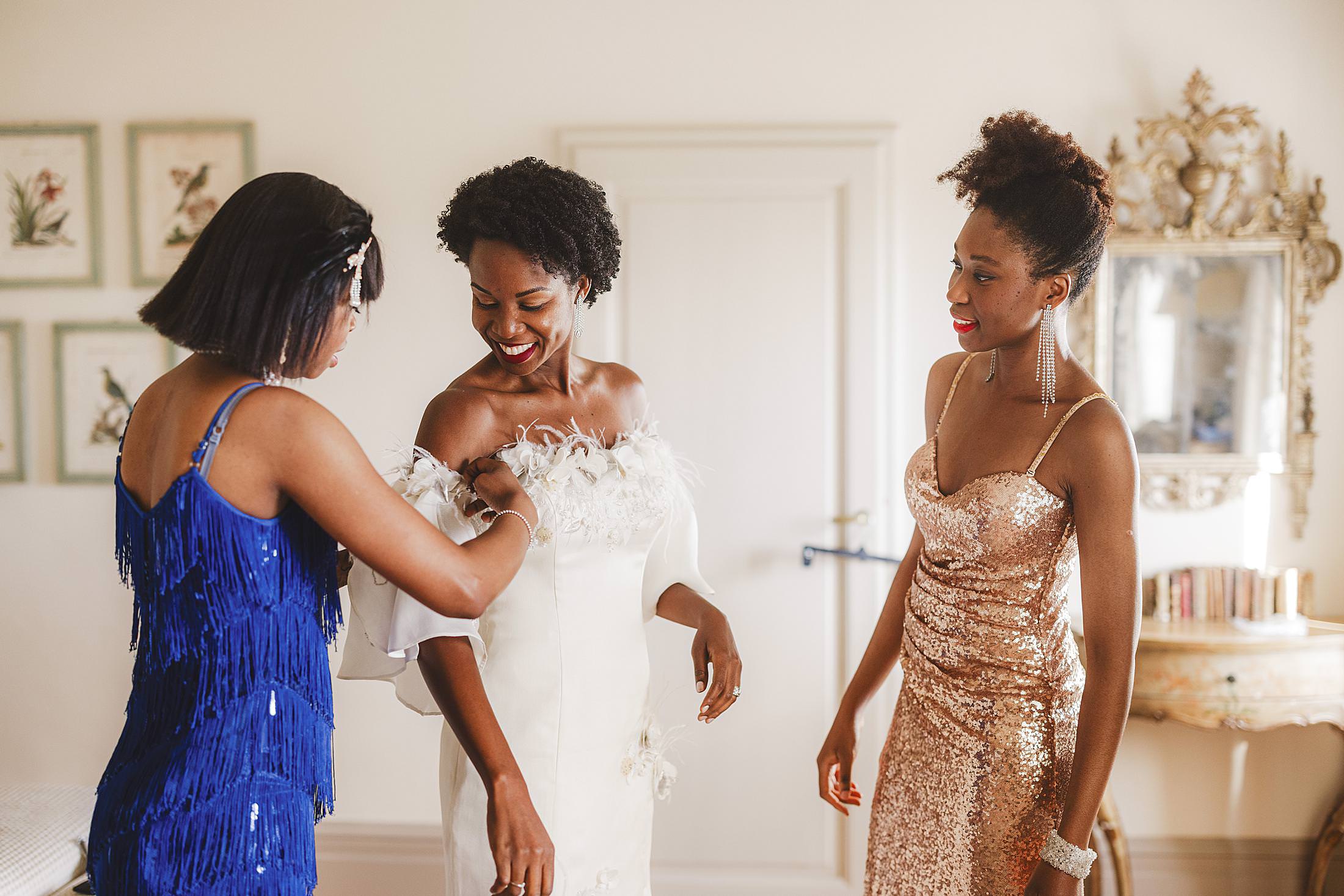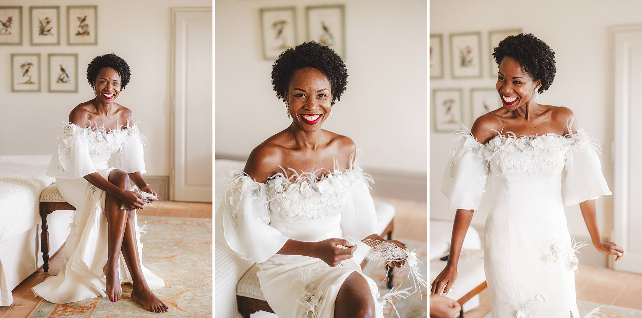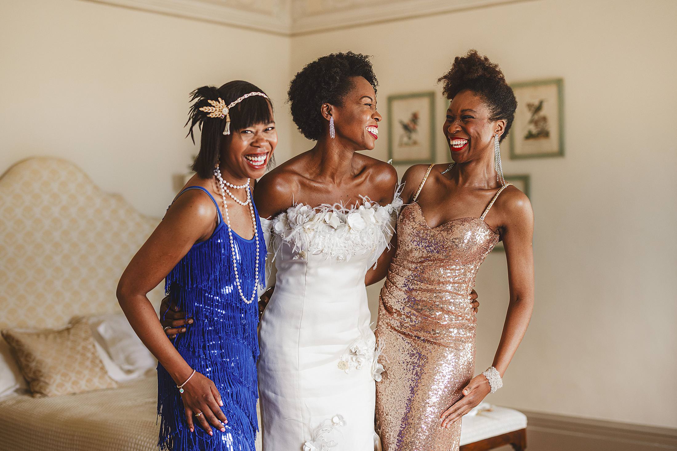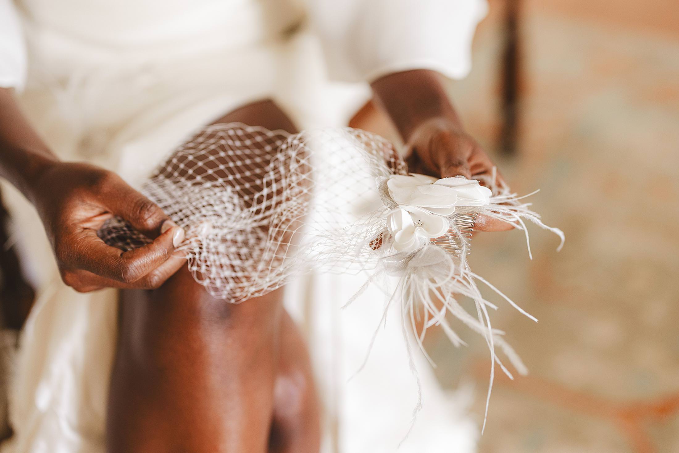 Lovely and elegant bride get ready at La Foce breathtaking venue for glamour 1920s 1930s 10th wedding anniversary event. Photo by the Italian elegant wedding photographer in Tuscany based Florence Gabriele Fani