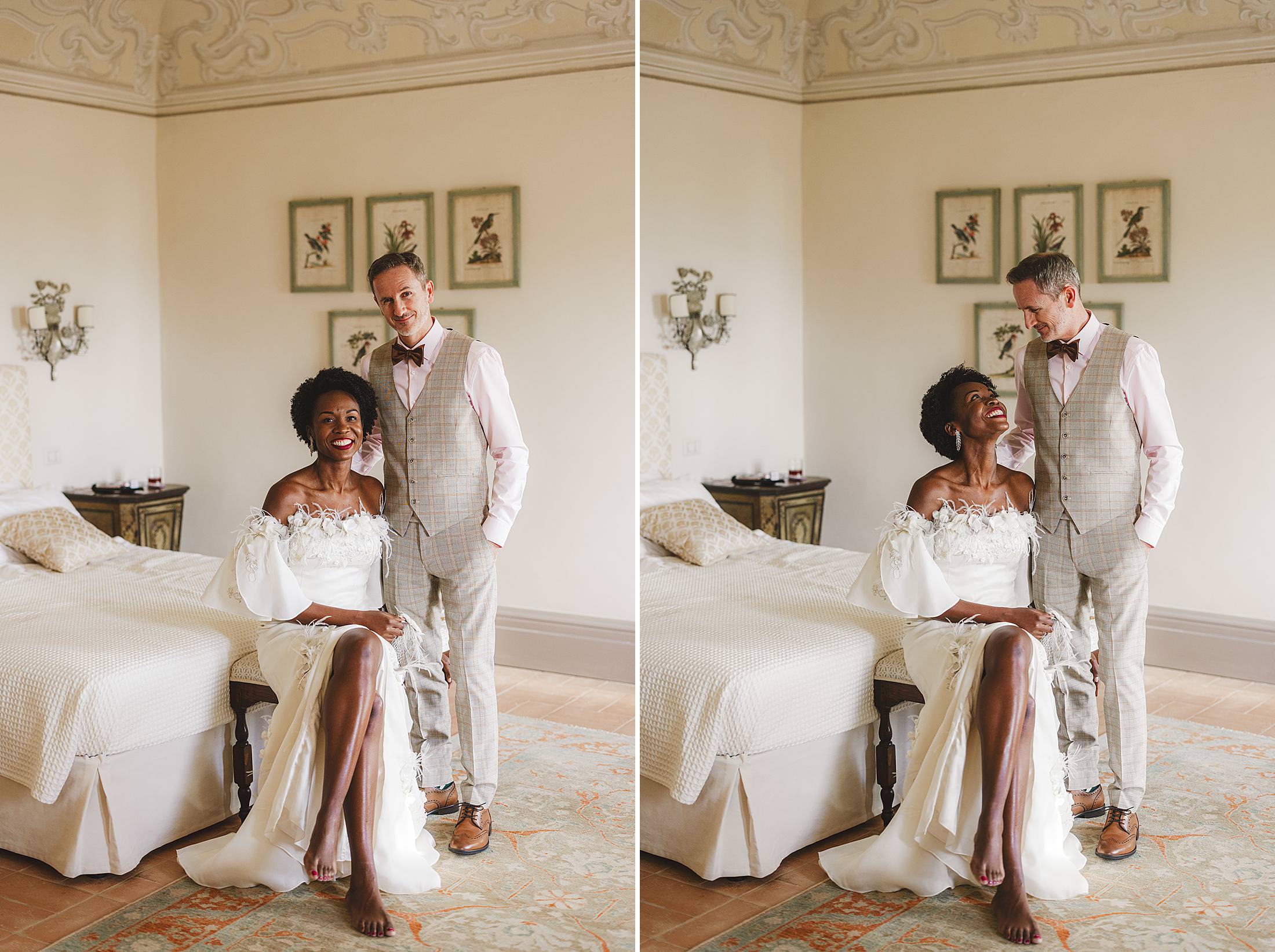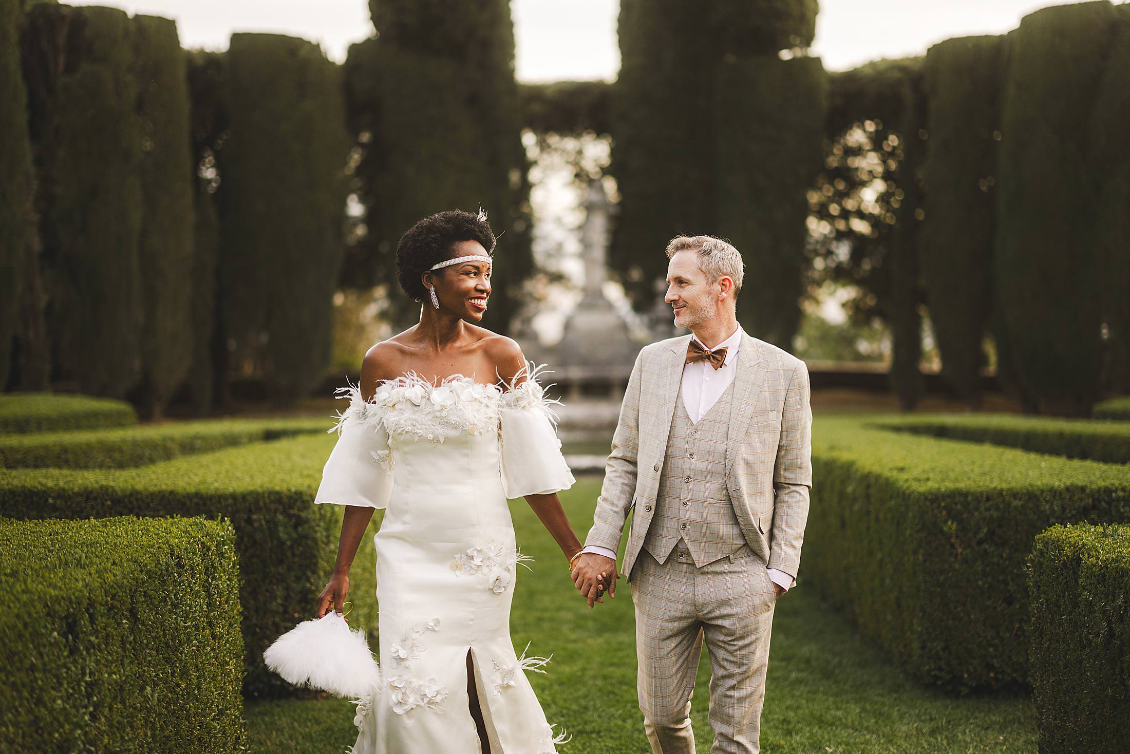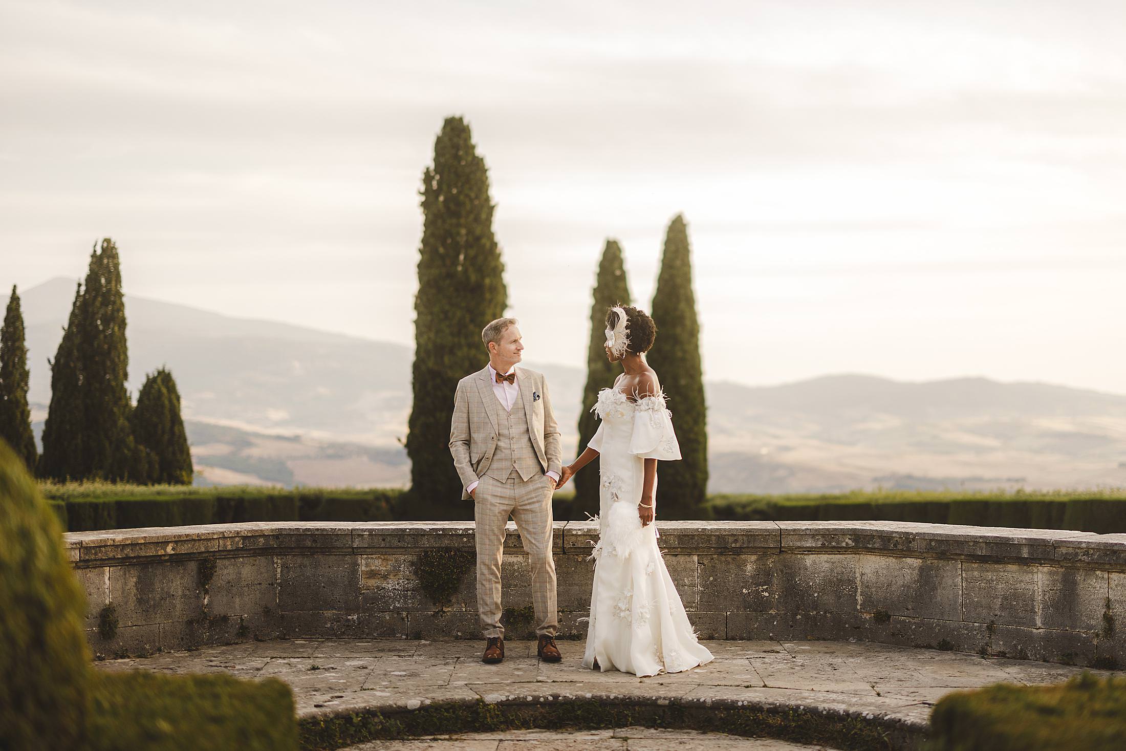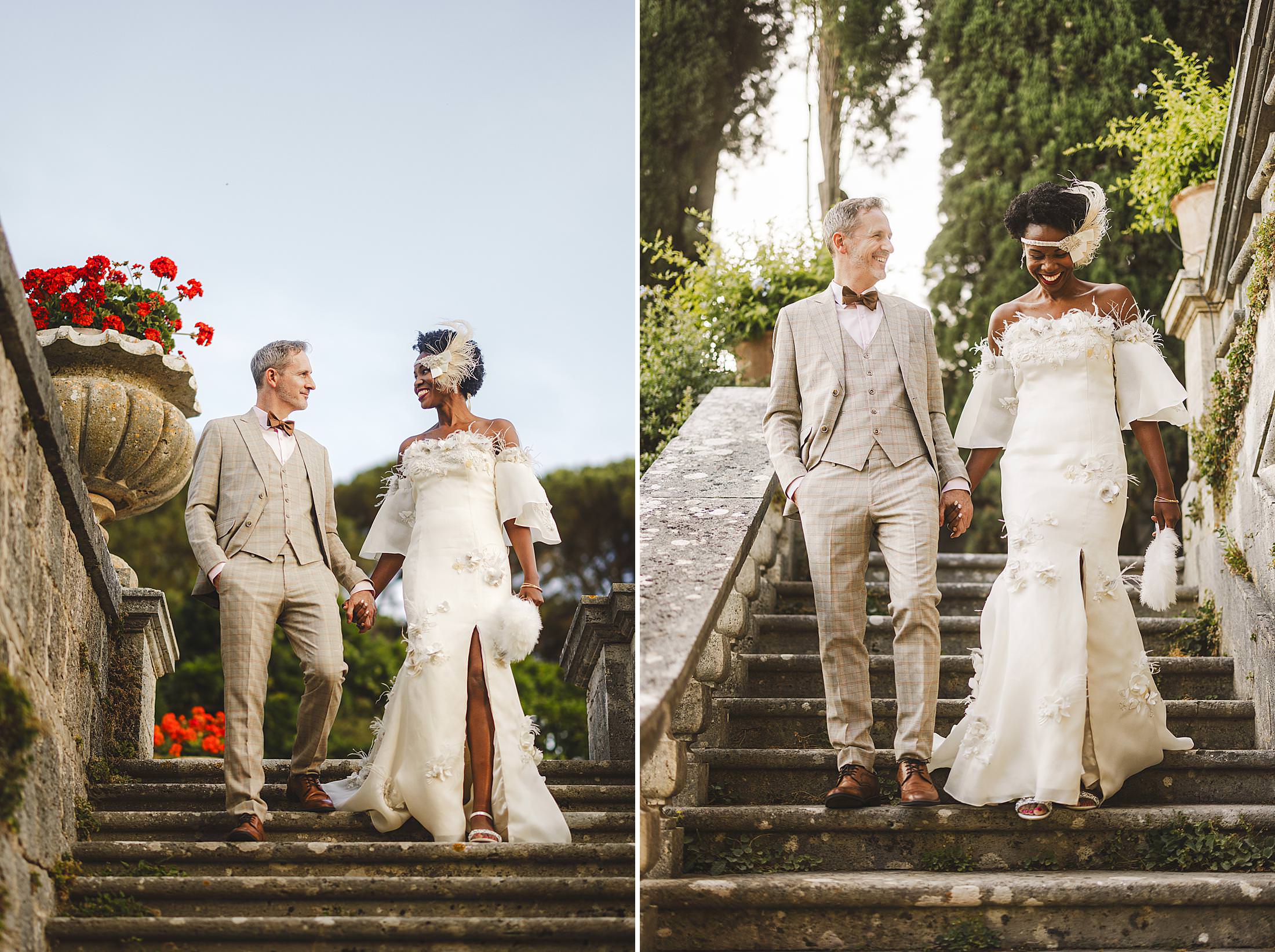 Creative and elegant couple photo shoot at La Foce in the heart of Val d’Orcia. Photo by the Italian elegant wedding photographer in Tuscany based Florence Gabriele Fani