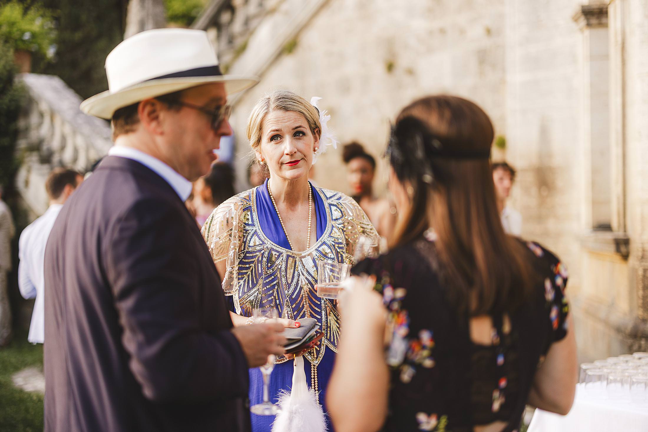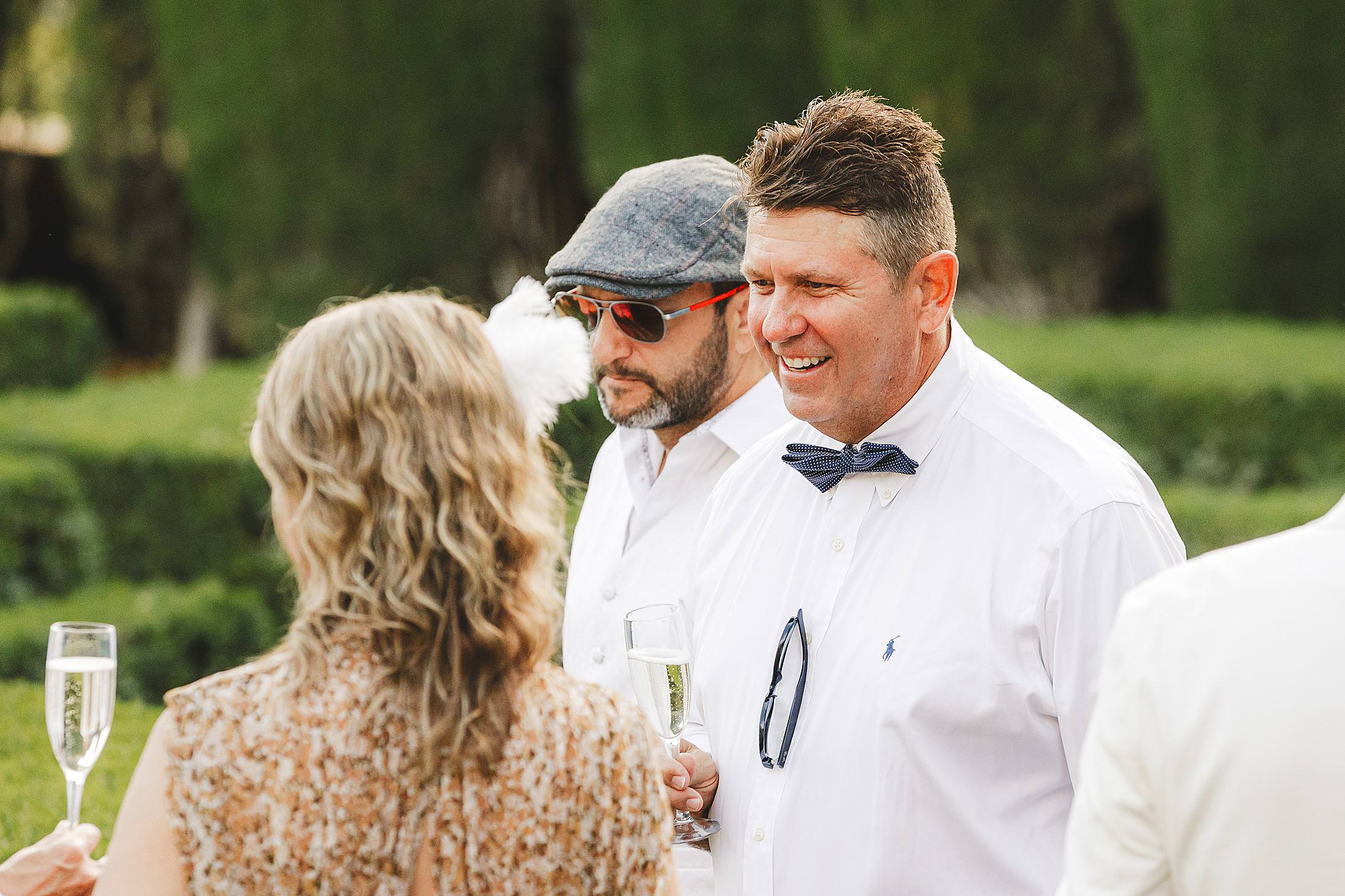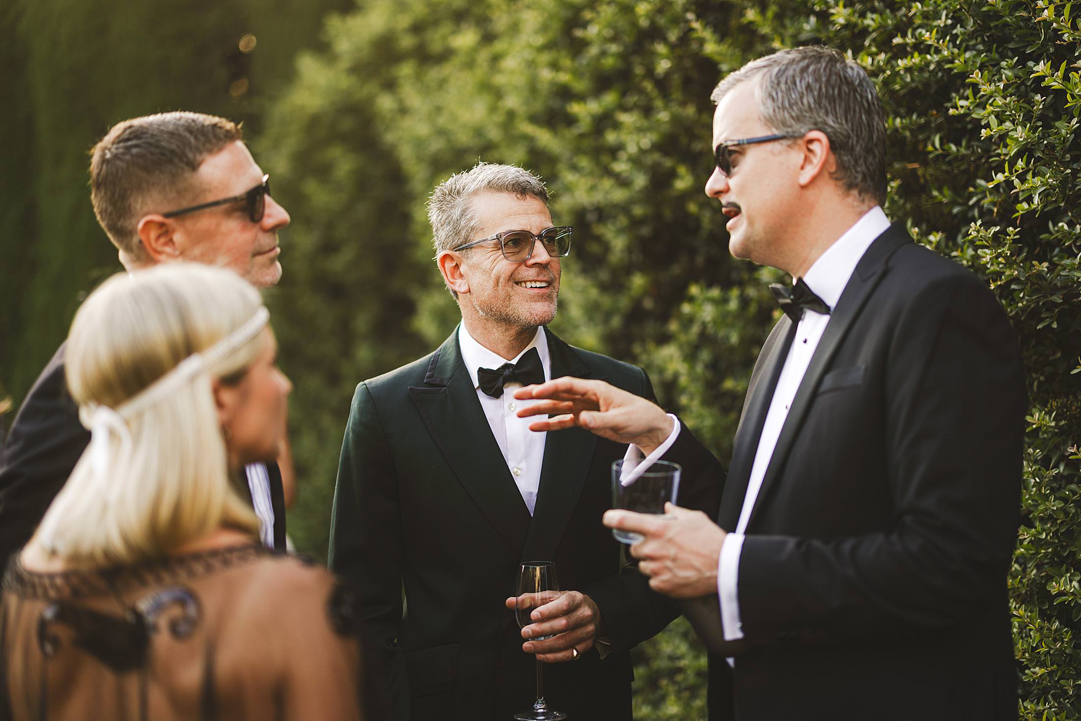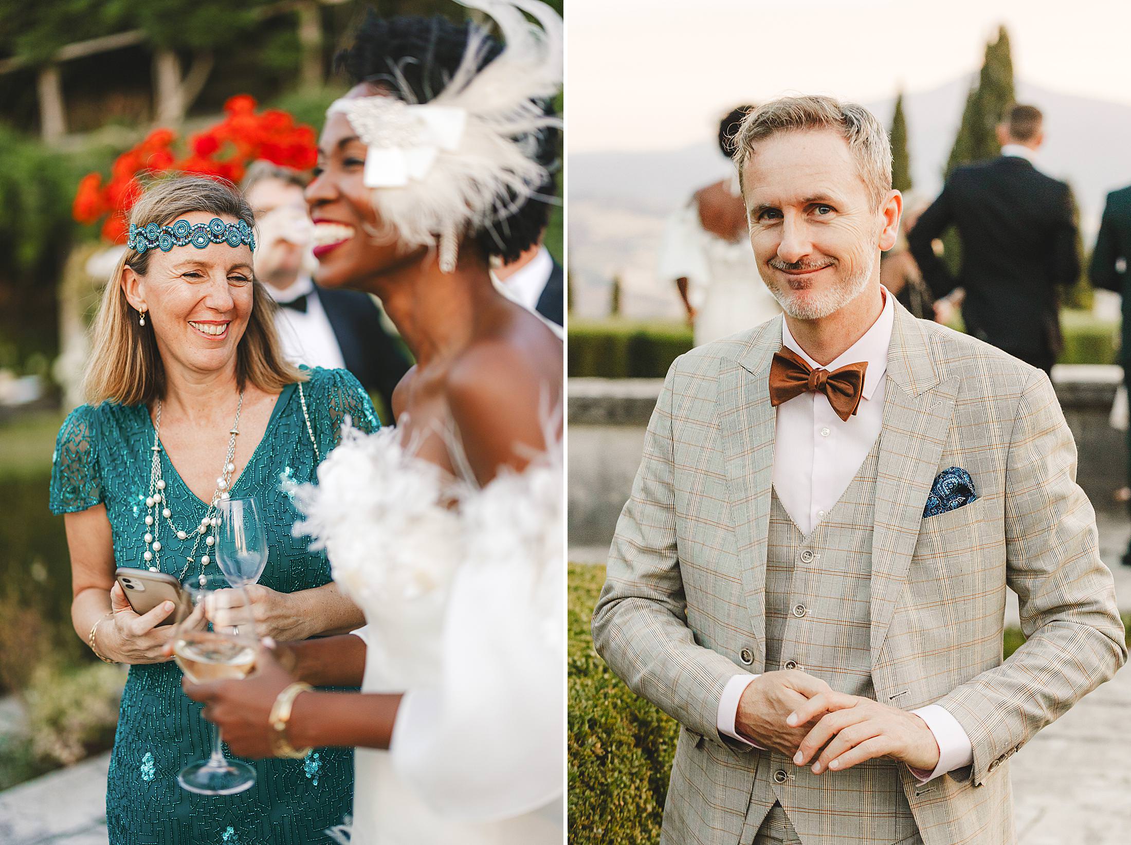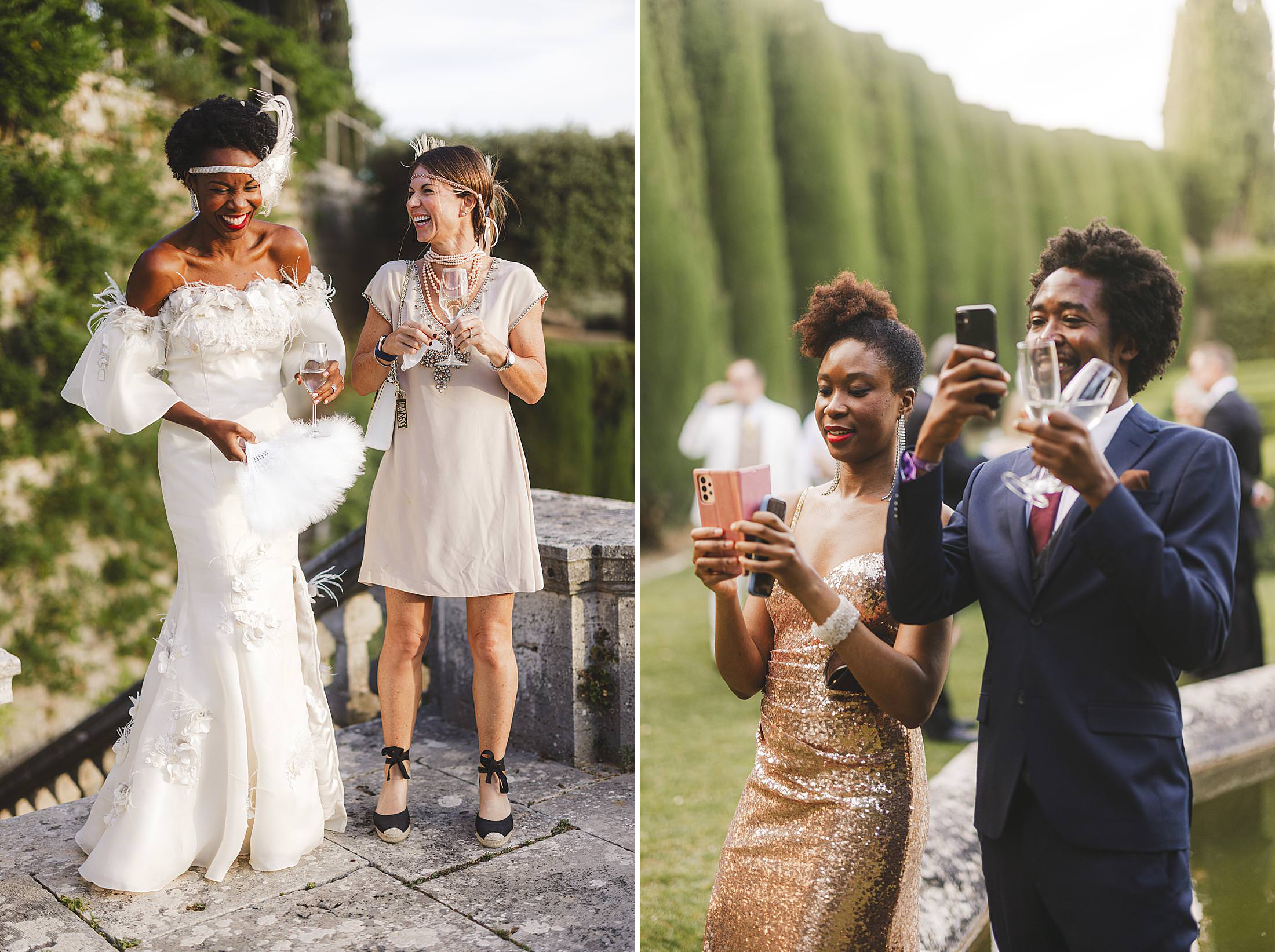 Wedding anniversary welcome cocktail in the gardens of La Foce. Photo by the Italian elegant wedding photographer in Tuscany based Florence Gabriele Fani