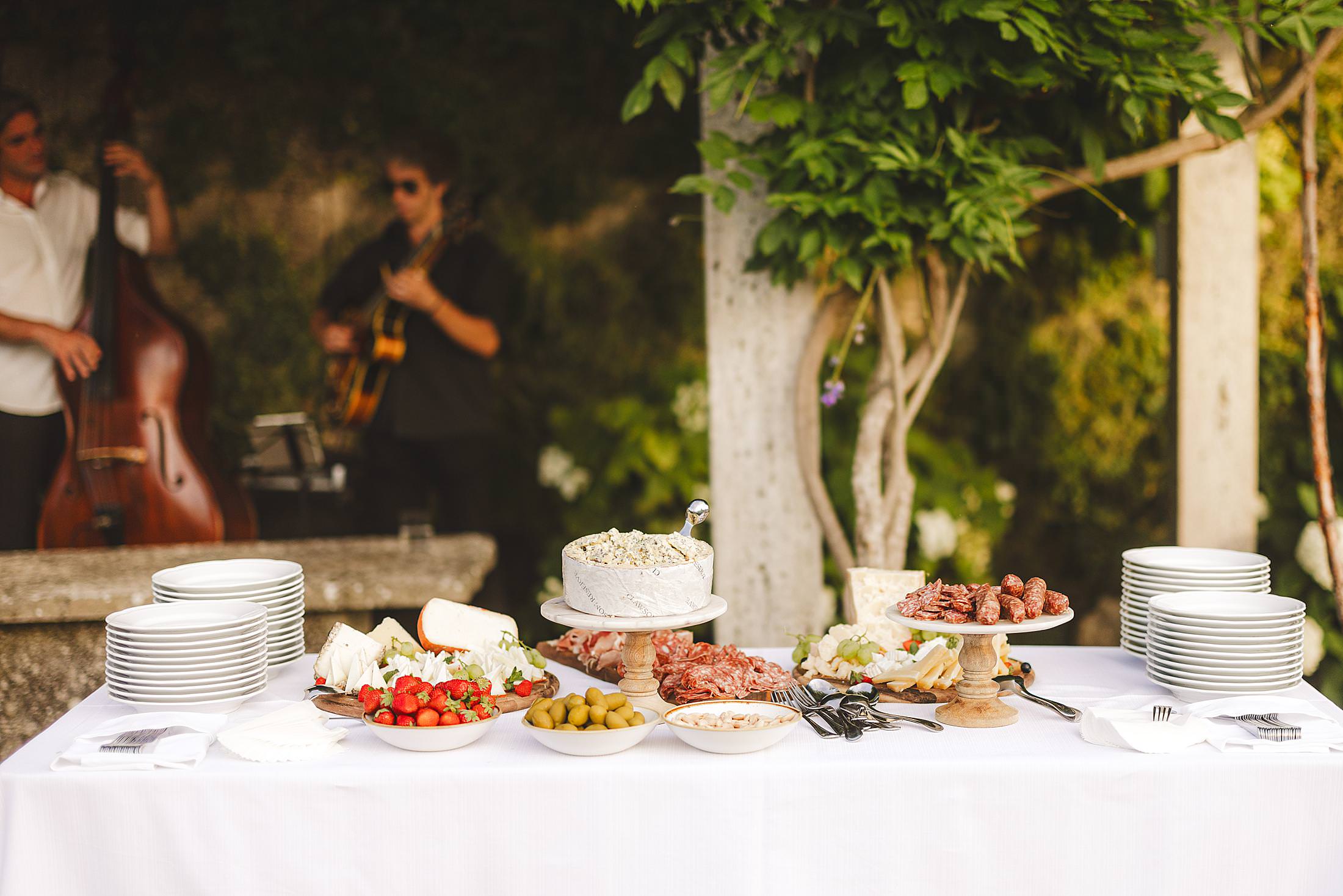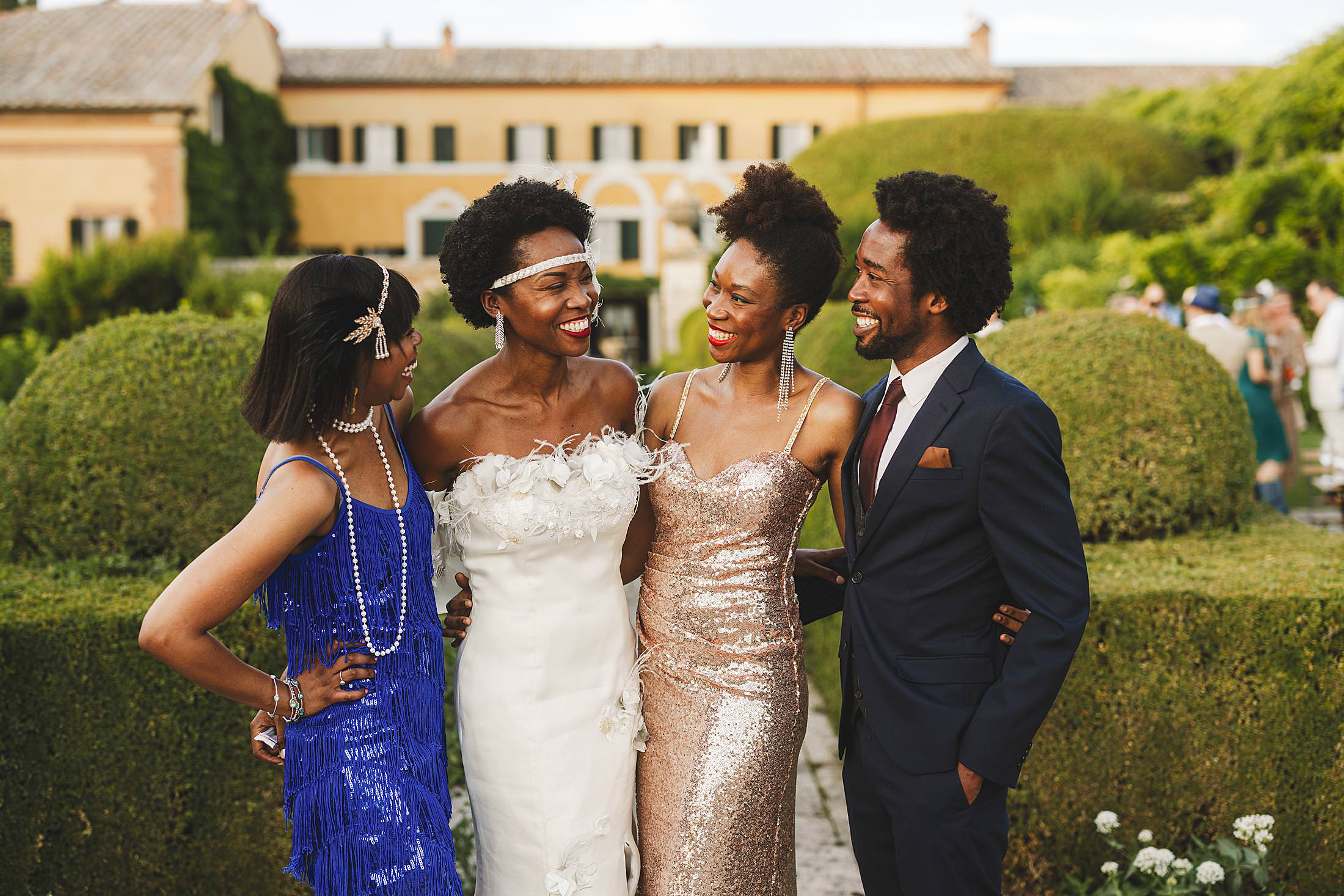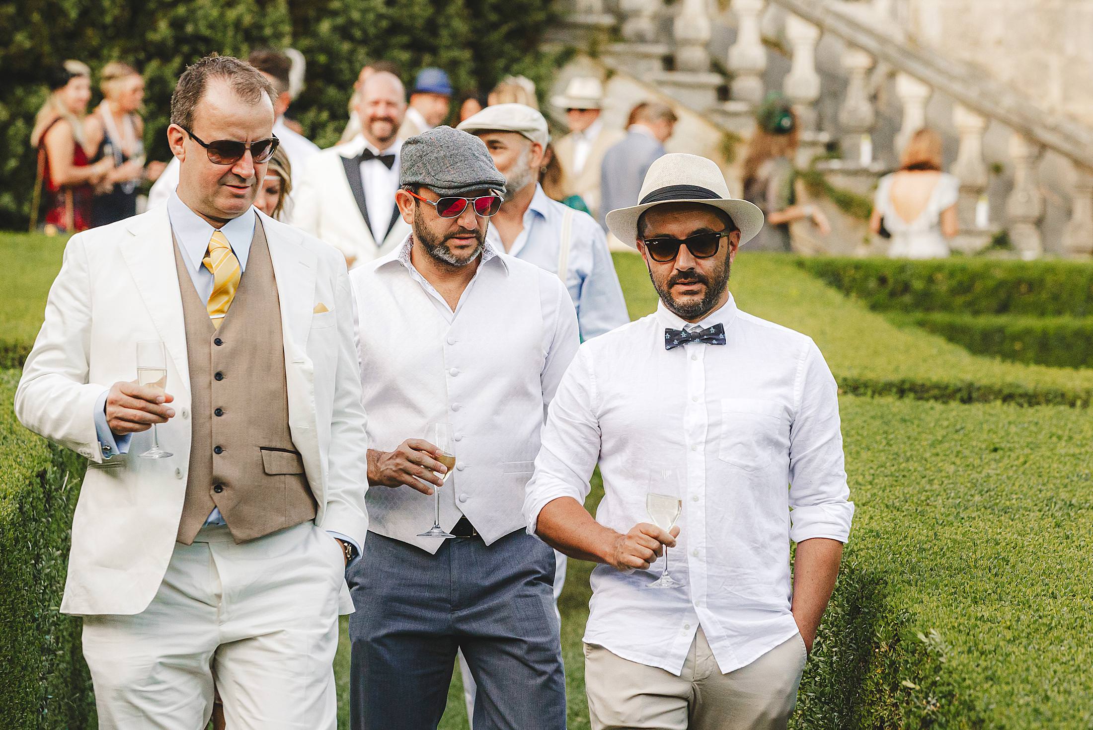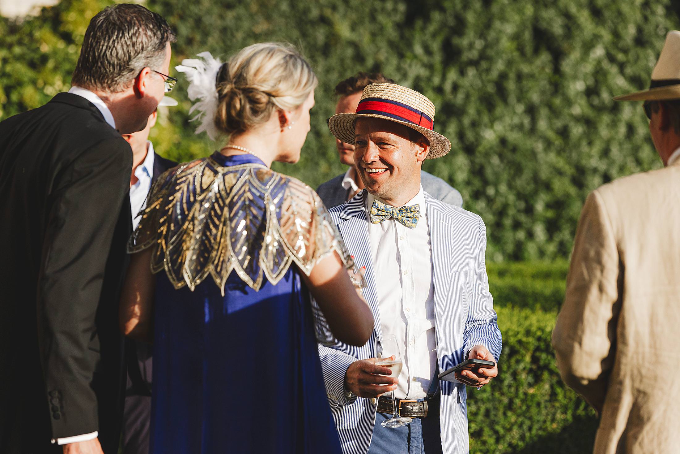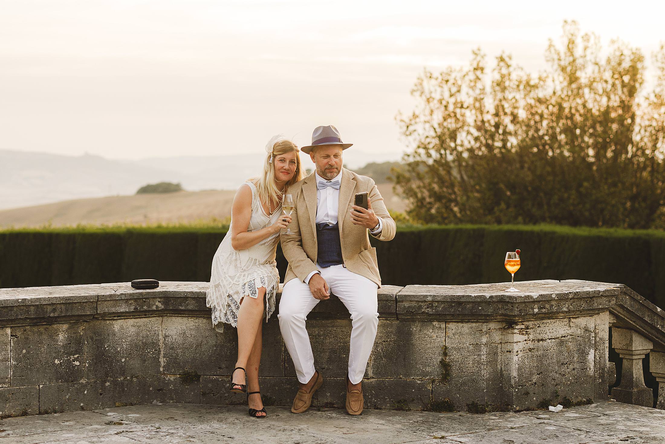 Wedding anniversary welcome cocktail in the gardens of La Foce. Photo by the Italian elegant wedding photographer in Tuscany based Florence Gabriele Fani