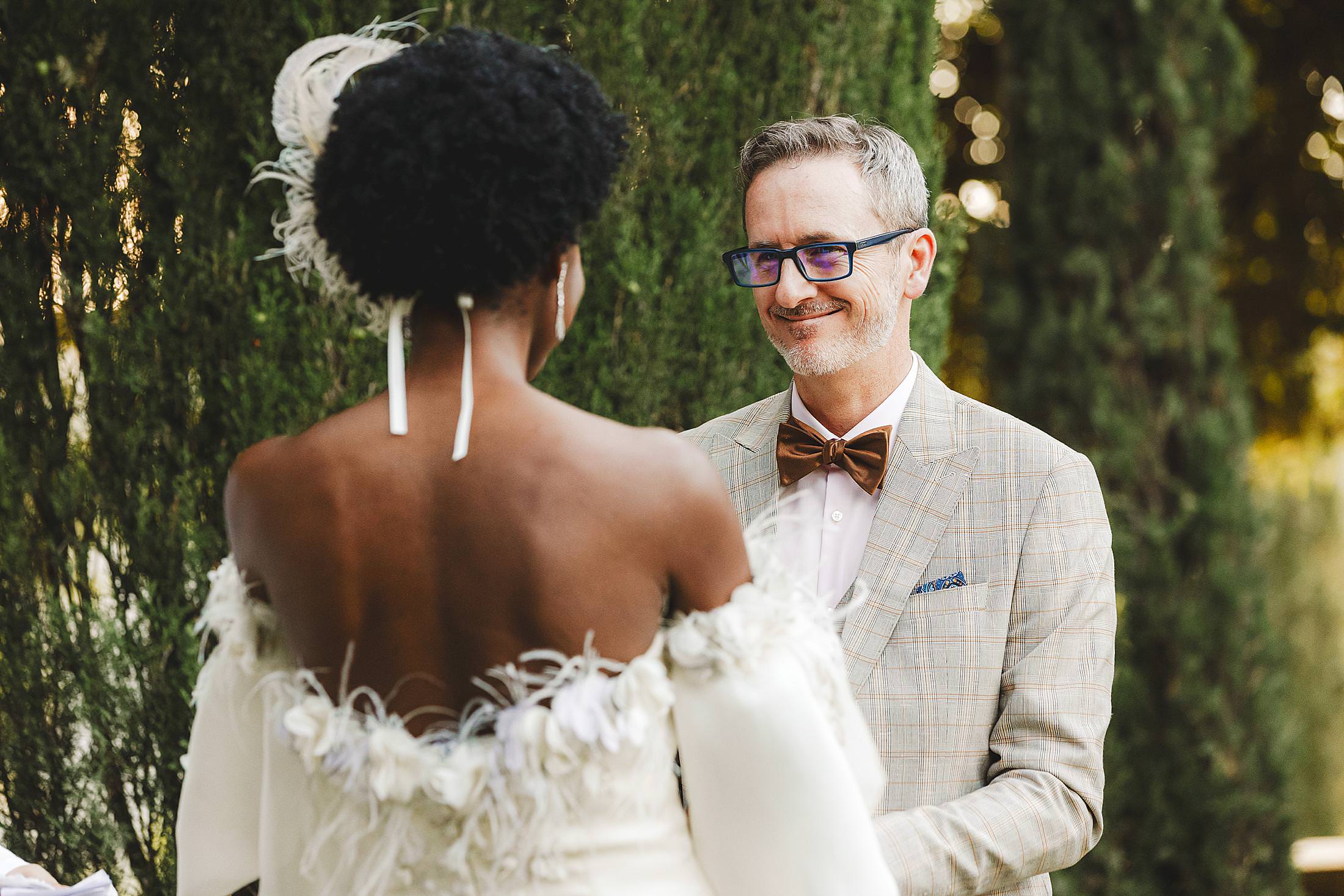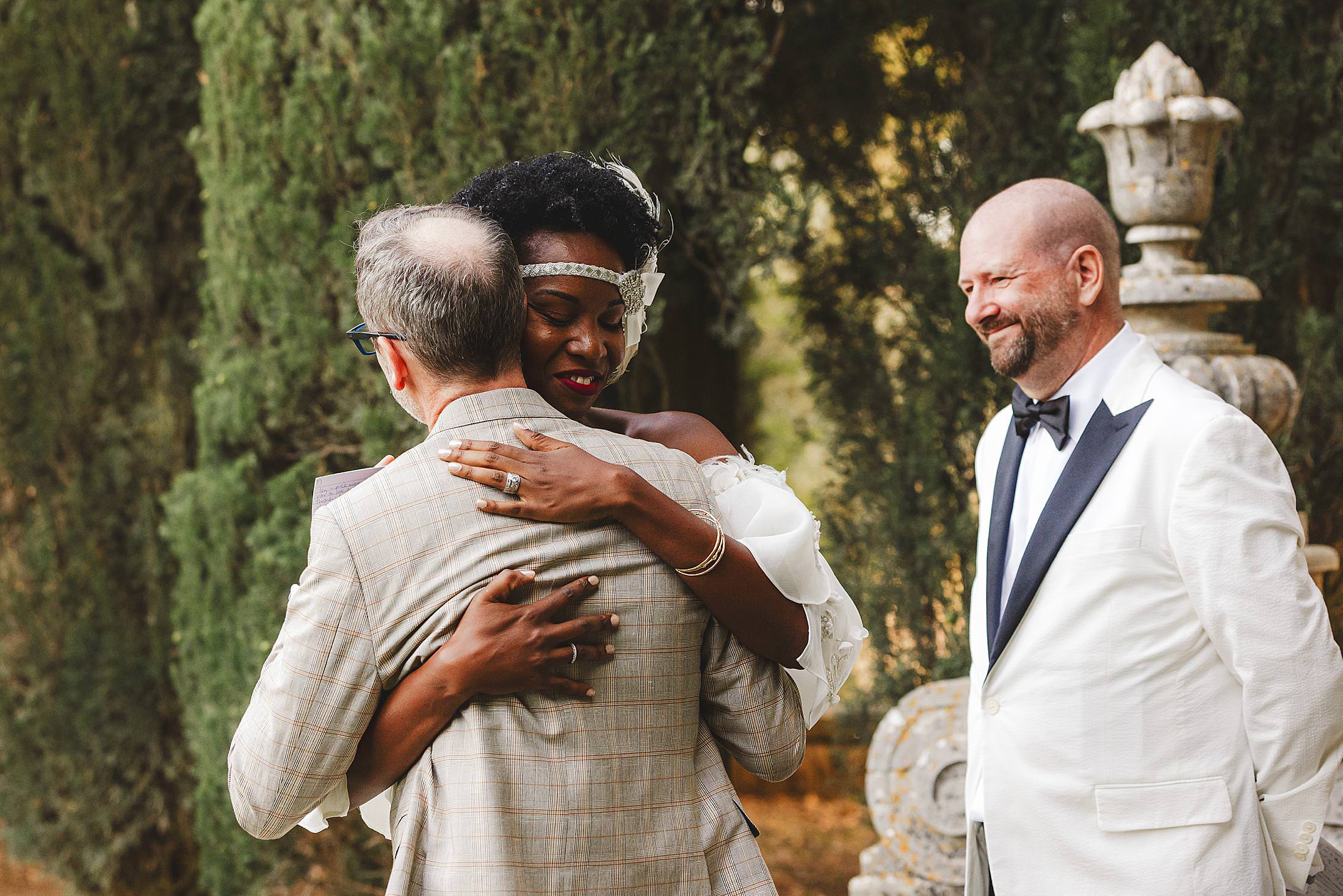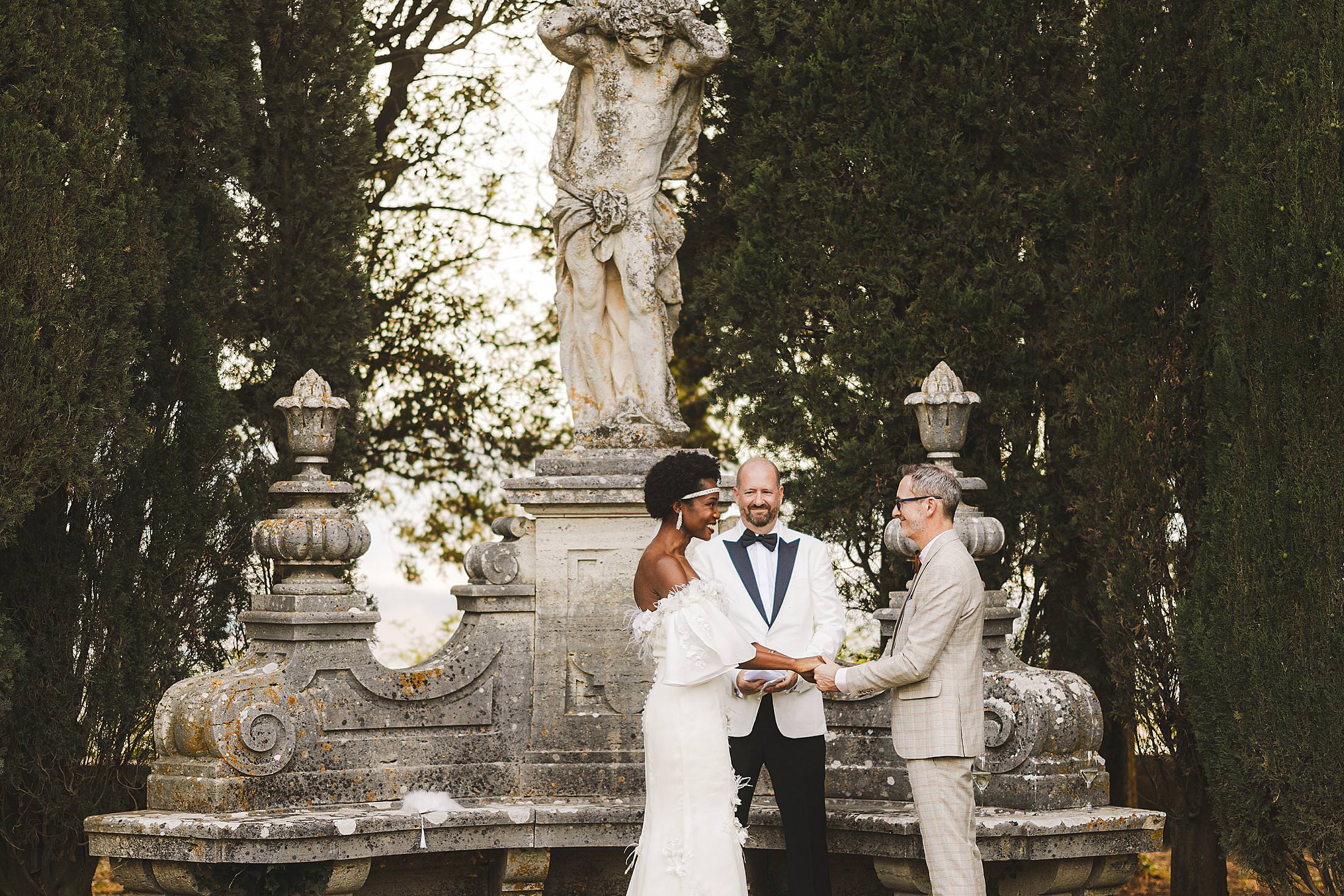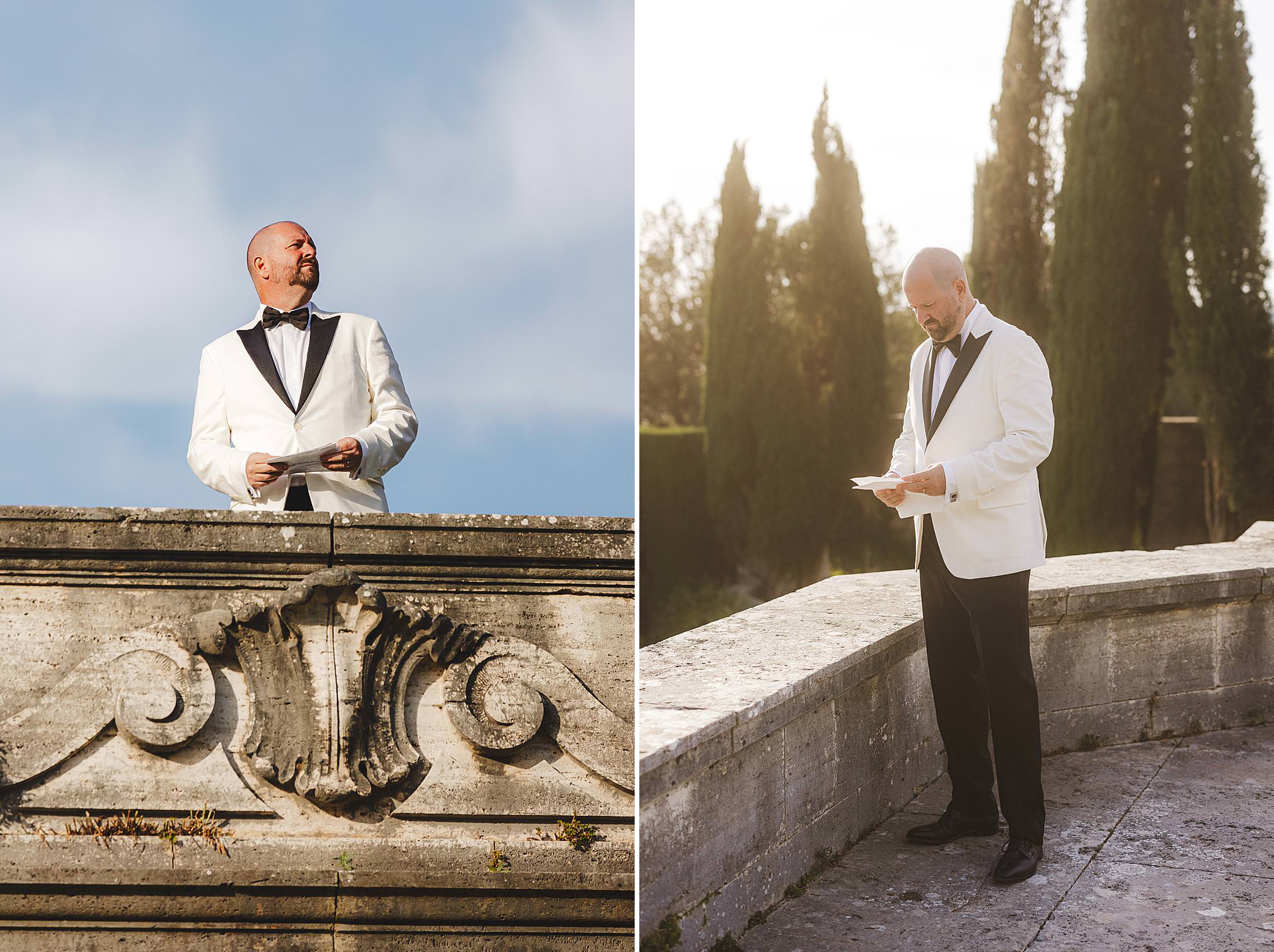 Emotional 10th wedding anniversary vow renewal ceremony at La Foce breathtaking venue. Photo by the Italian elegant wedding photographer in Tuscany based Florence Gabriele Fani