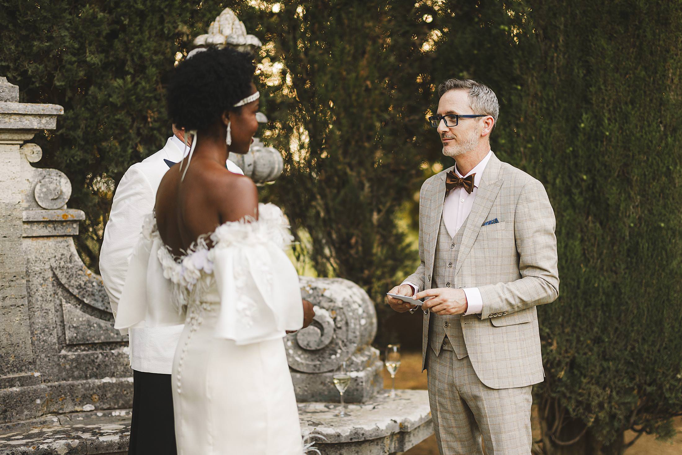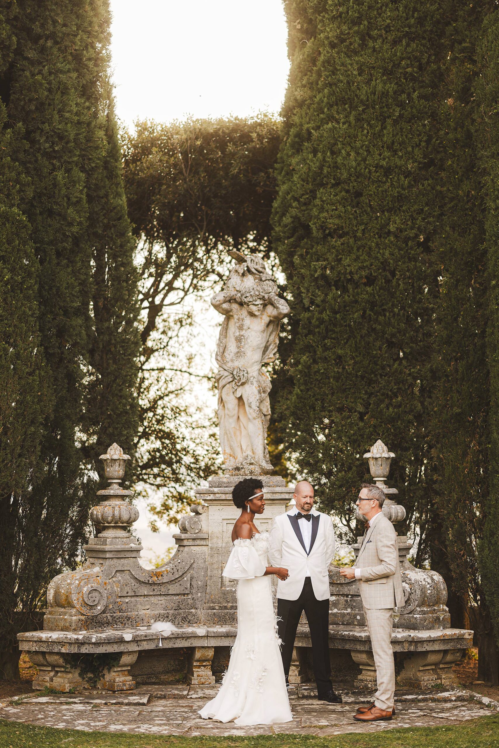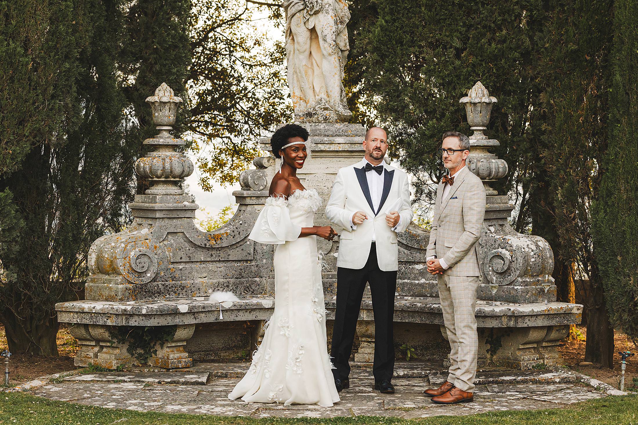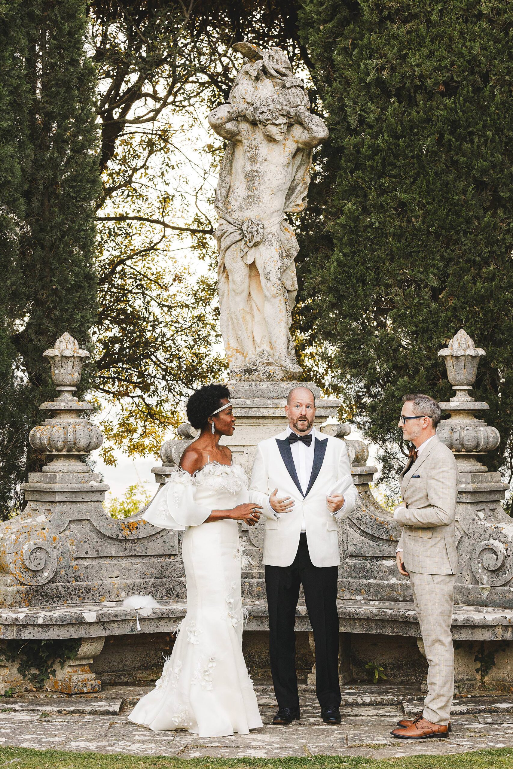 Emotional 10th wedding anniversary vow renewal ceremony at La Foce breathtaking venue. Photo by the Italian elegant wedding photographer in Tuscany based Florence Gabriele Fani
