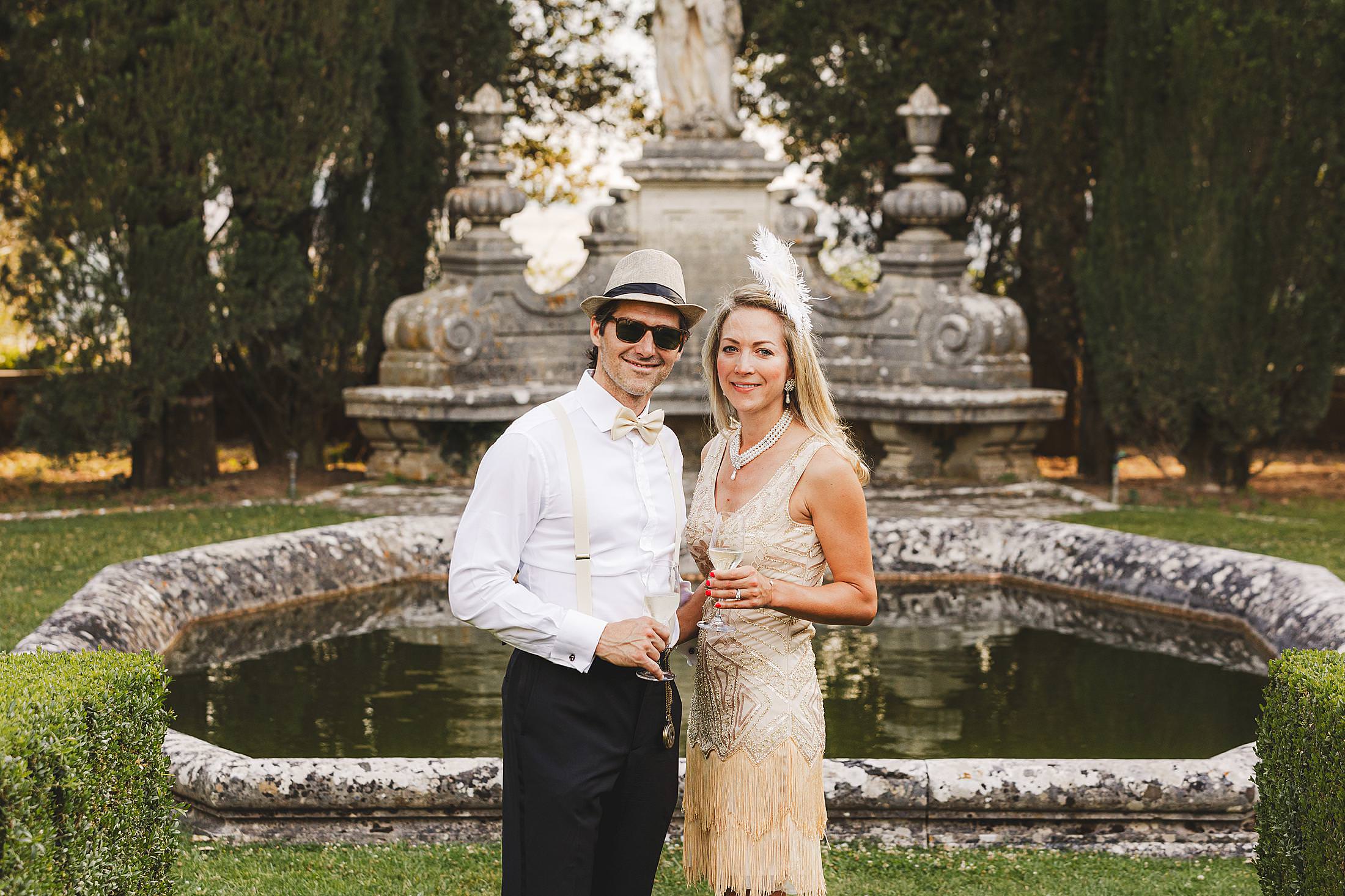 Glamour 10th wedding anniversary of the 1920s and 1930s at La Foce in the heart of Val d’Orcia. Photo by the Italian elegant wedding photographer in Tuscany based Florence Gabriele Fani