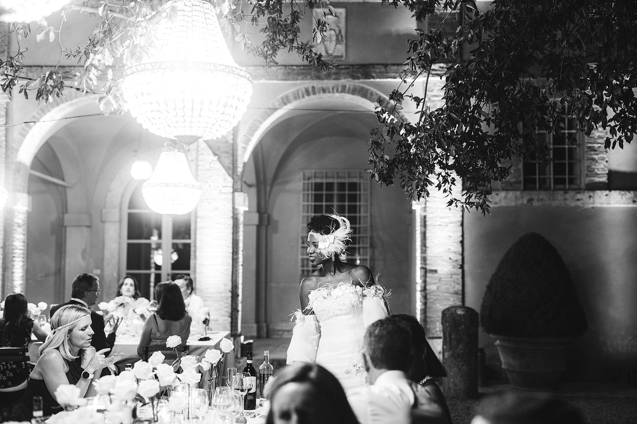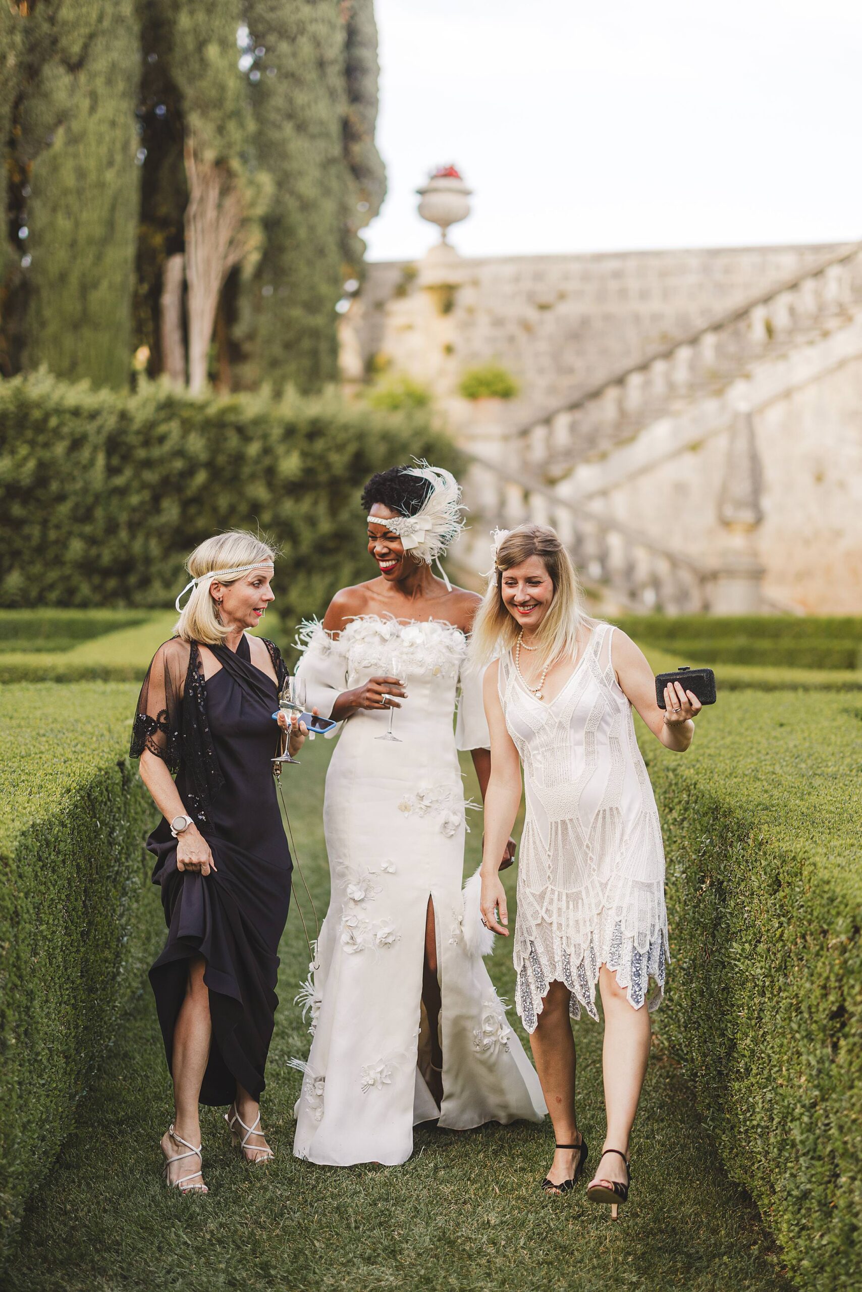 Bride candid photo at 10th wedding anniversary event at La Foce. Photo by the Italian elegant wedding photographer in Tuscany based Florence Gabriele Fani