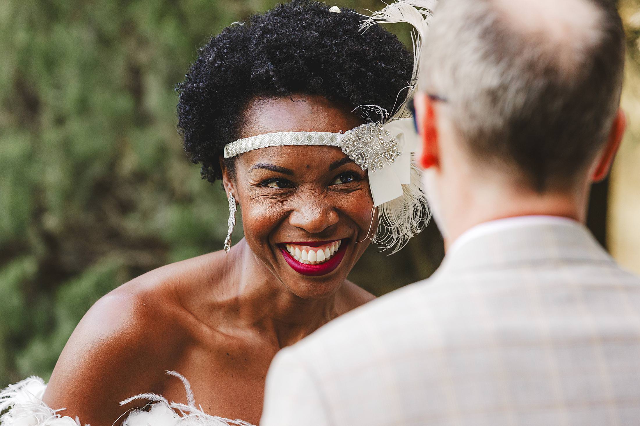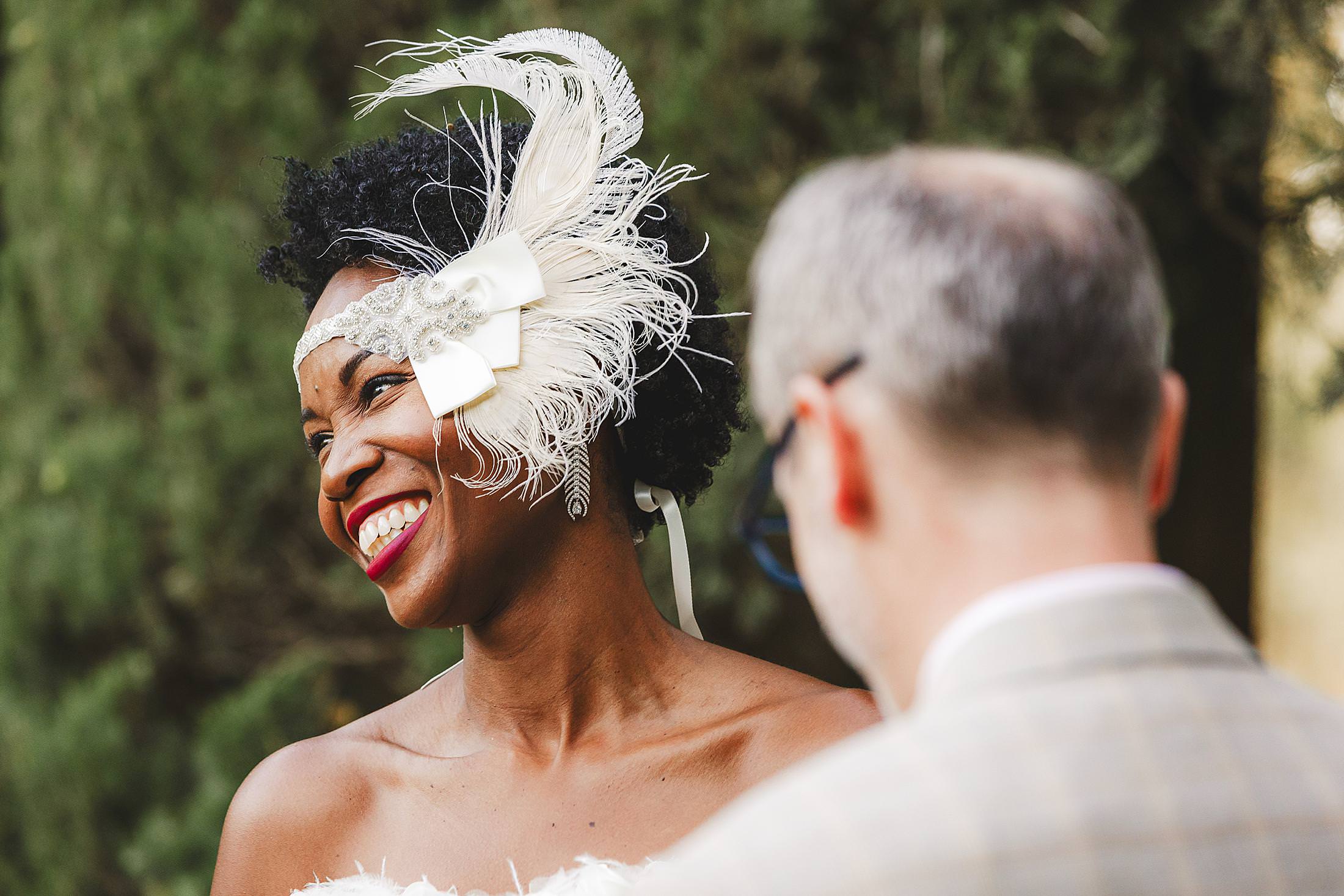 Lovely bride dressed as of the 1920s and 1930s style at La Foce. Photo by the Italian elegant wedding photographer in Tuscany based Florence Gabriele Fani
