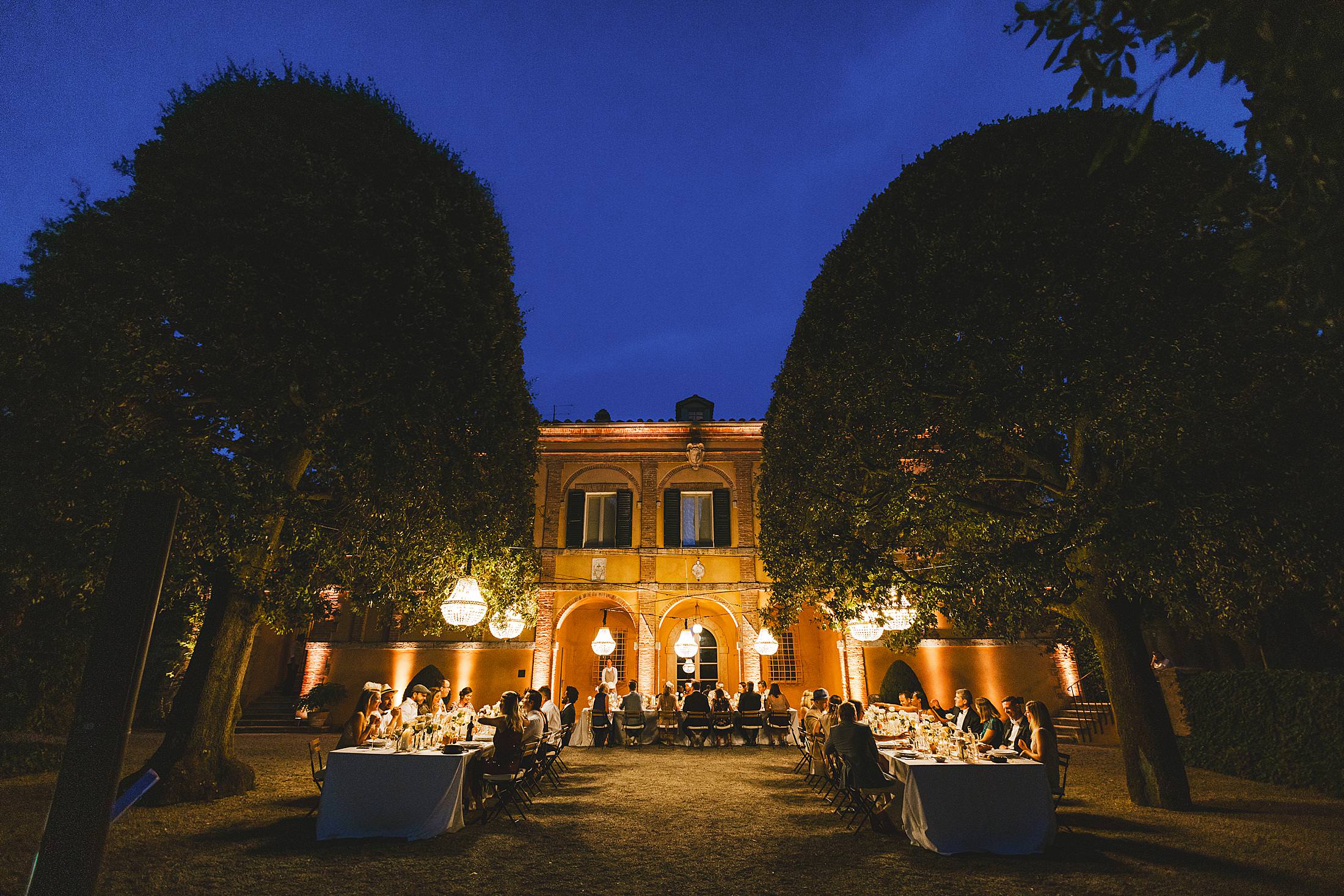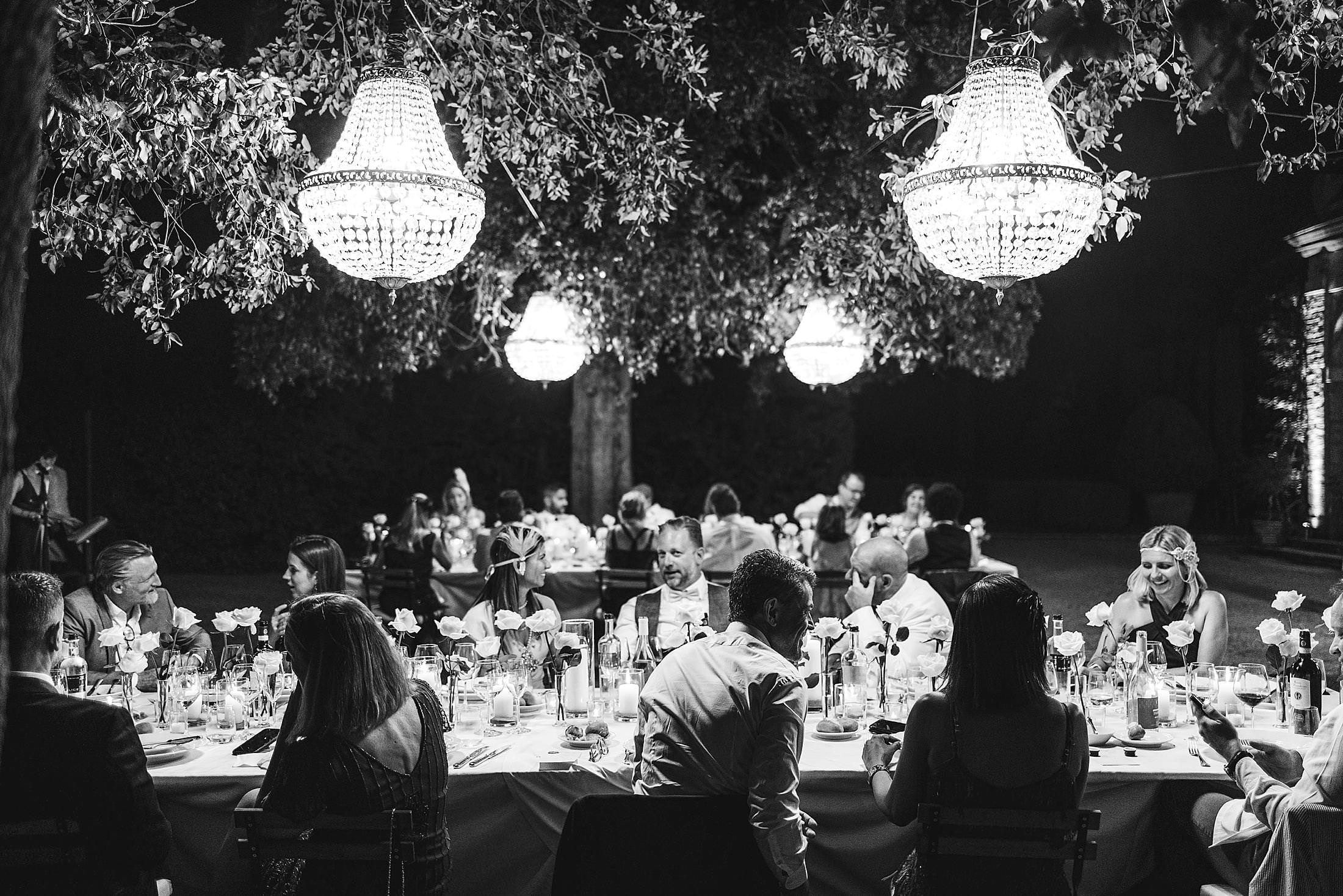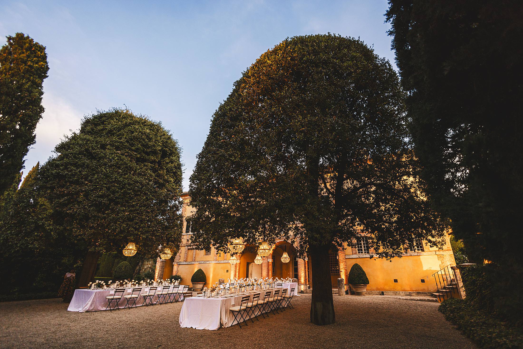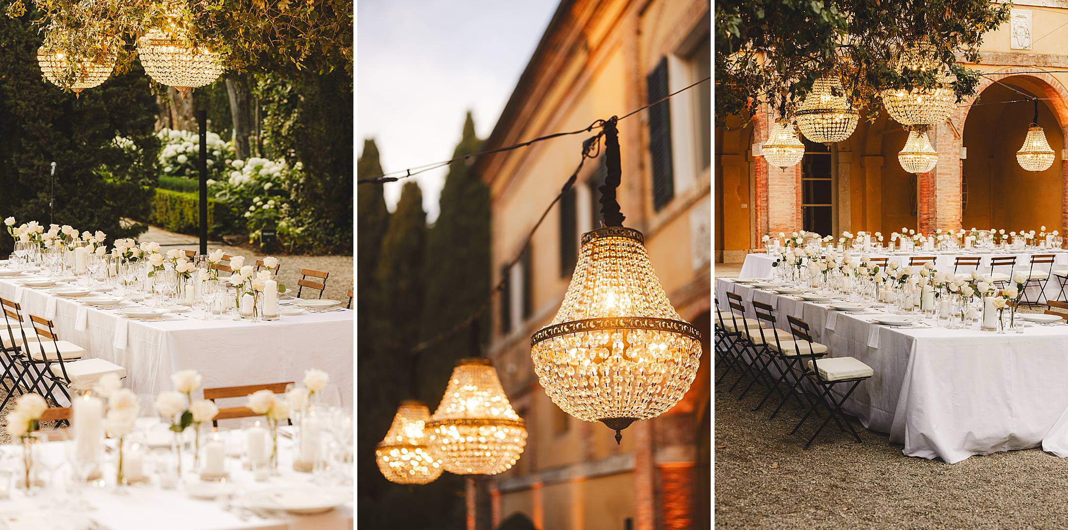 Elegant wedding dinner setup decor at La Foce breathtaking venue in the heart of Val d’Orcia. Photo by the Italian elegant wedding photographer in Tuscany based Florence Gabriele Fani