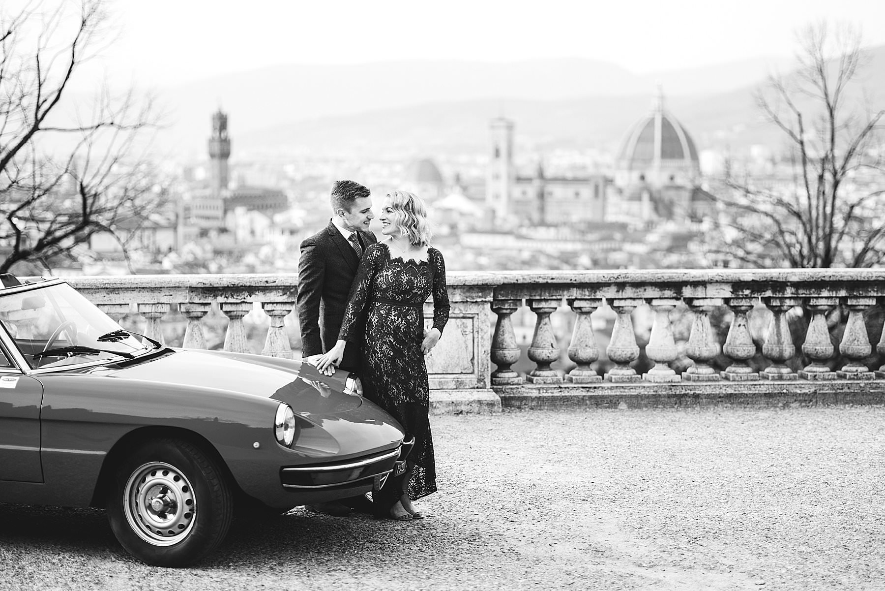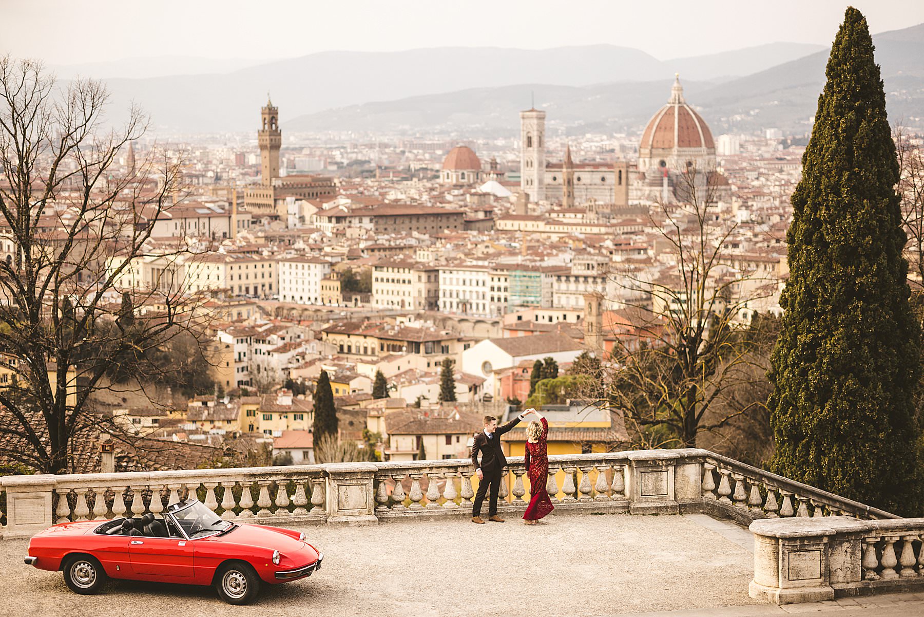 Later we moved to San Miniato al Monte, where we shot timeless wedding anniversary photos with a breathtaking view of Florence in the background – and with the Spider as a co-protagonist. I can safely say that it felt like being in a movie!