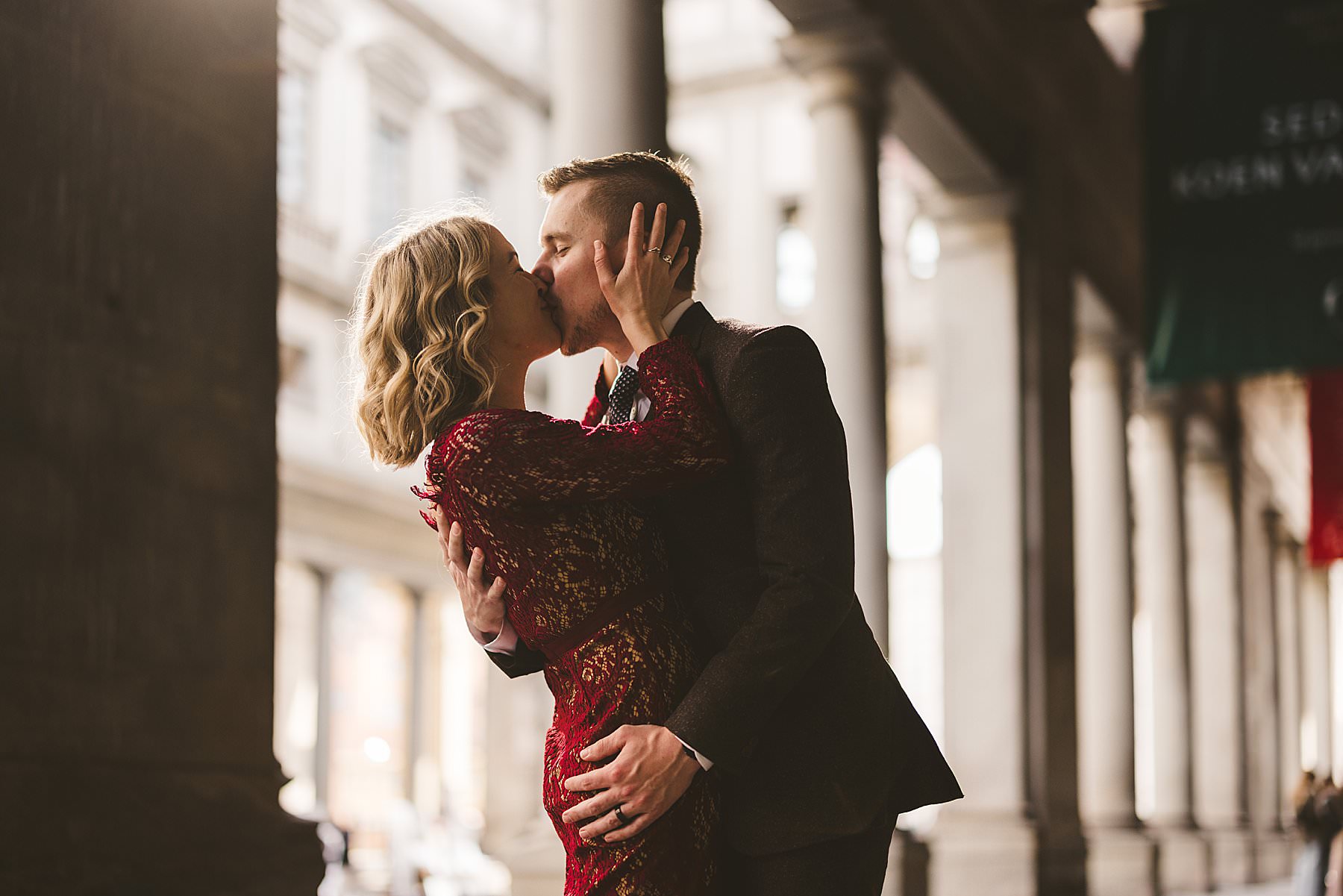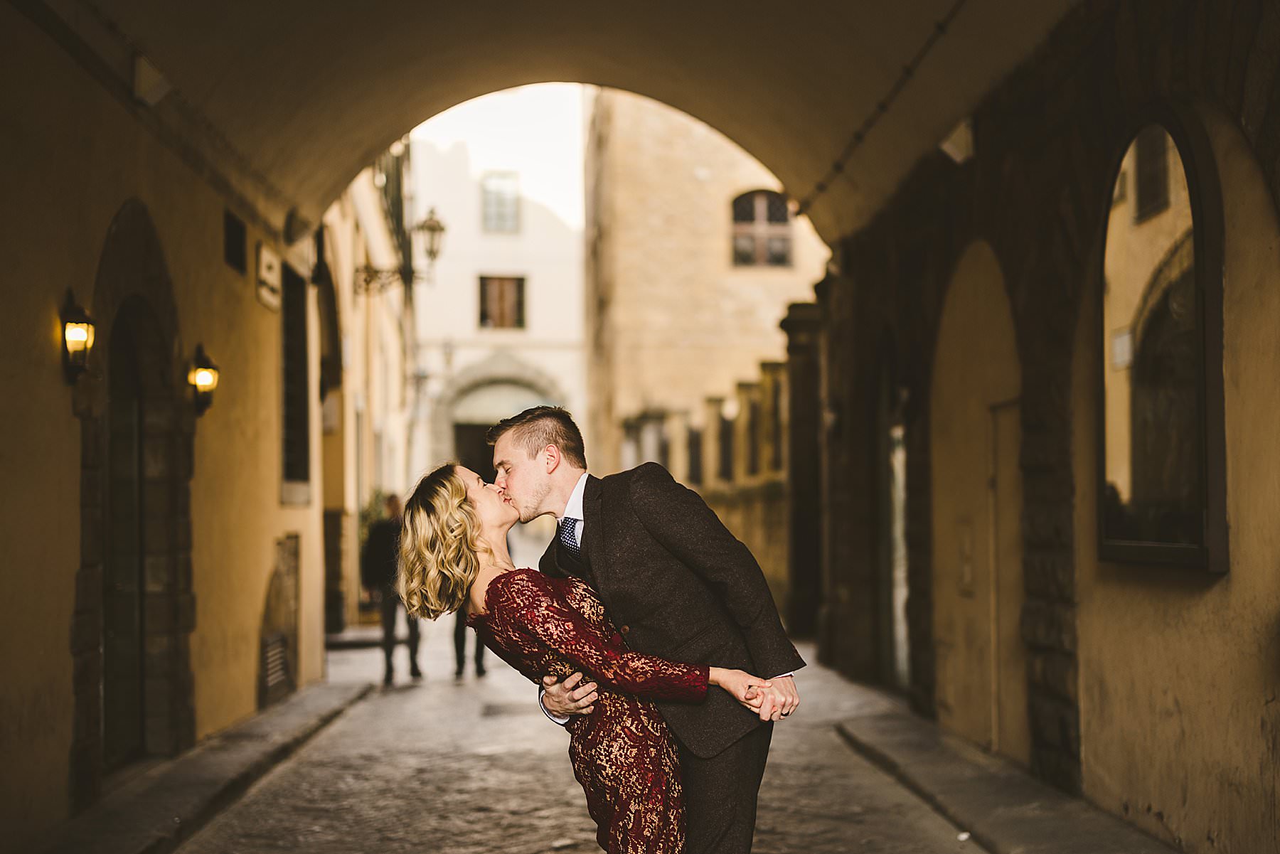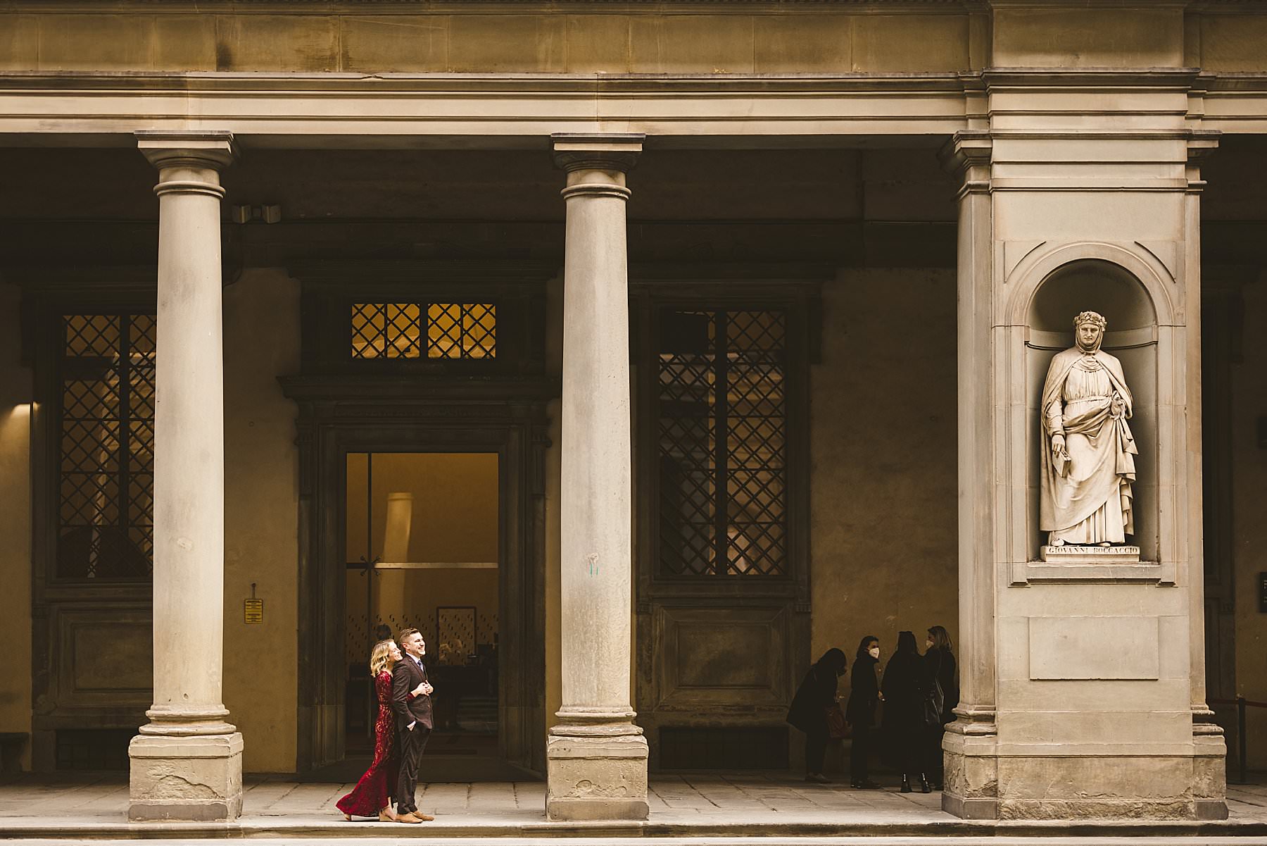 Romantic couple portrait wedding anniversary photo in the heart of Florence near Uffizi. Photo by the Italian elegant and creative couple portrait photographer in Tuscany based Florence Gabriele Fani