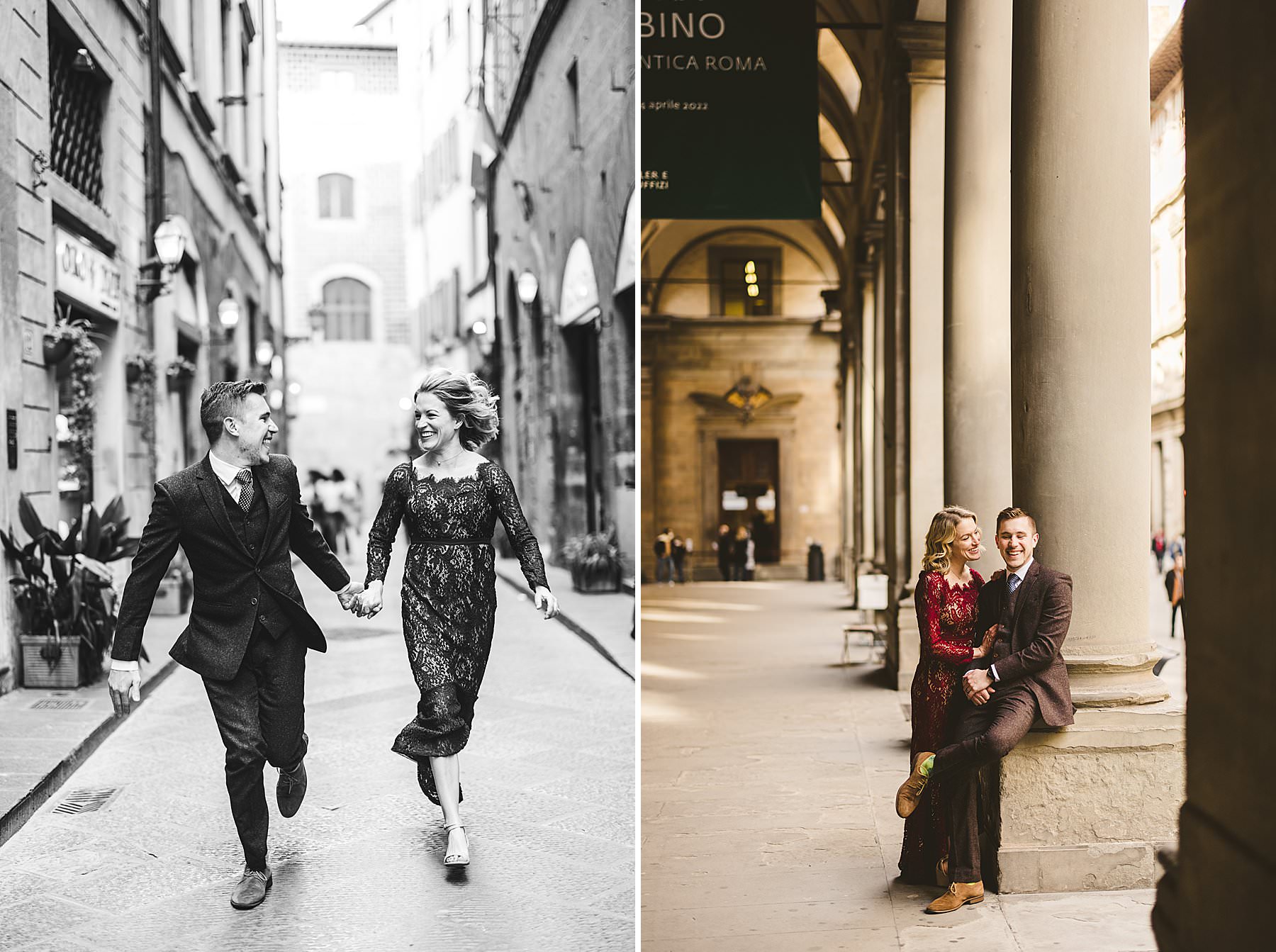 Joyful couple portrait wedding anniversary photos in the heart of Florence. Photo by the Italian elegant and creative couple portrait photographer in Tuscany based Florence Gabriele Fani