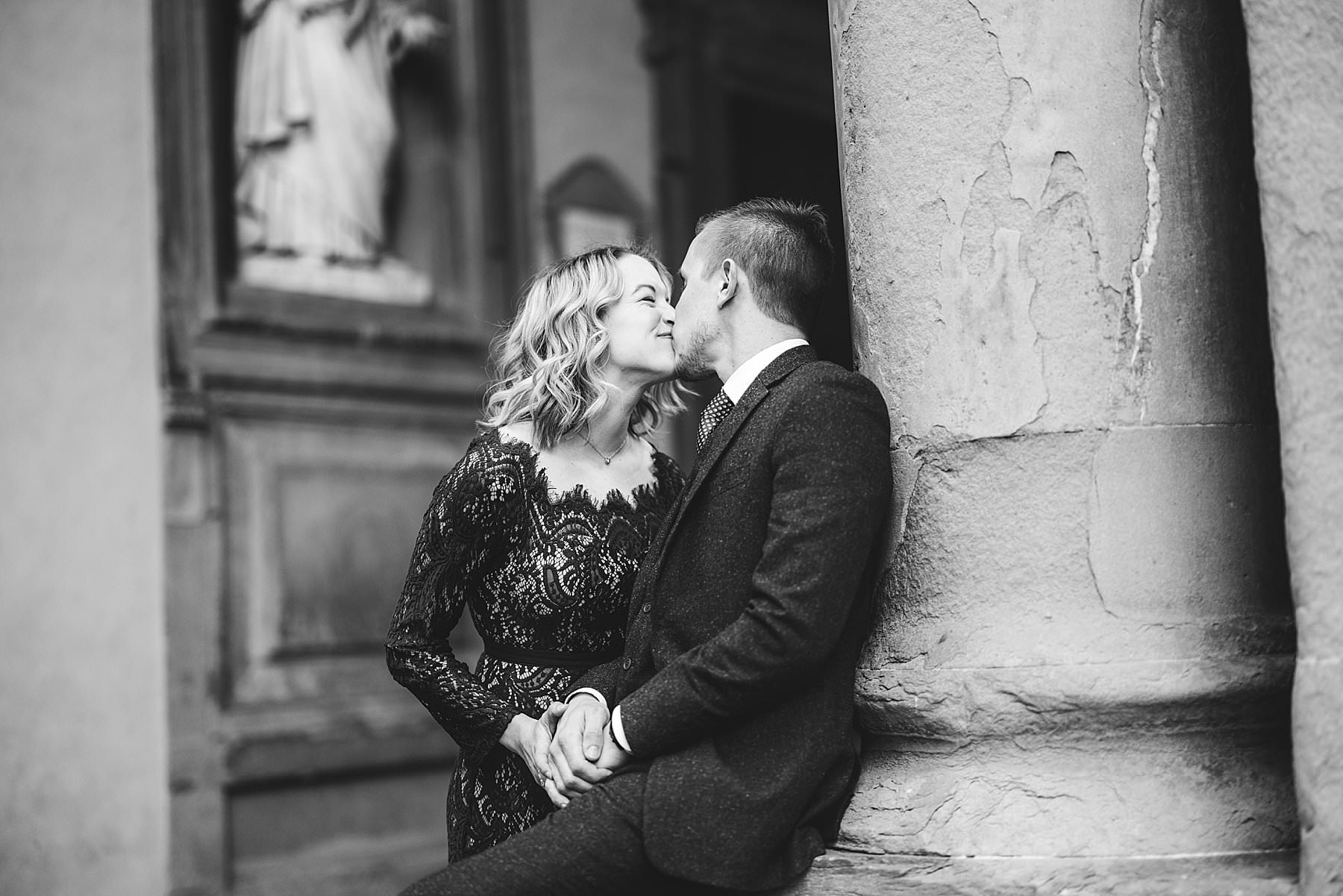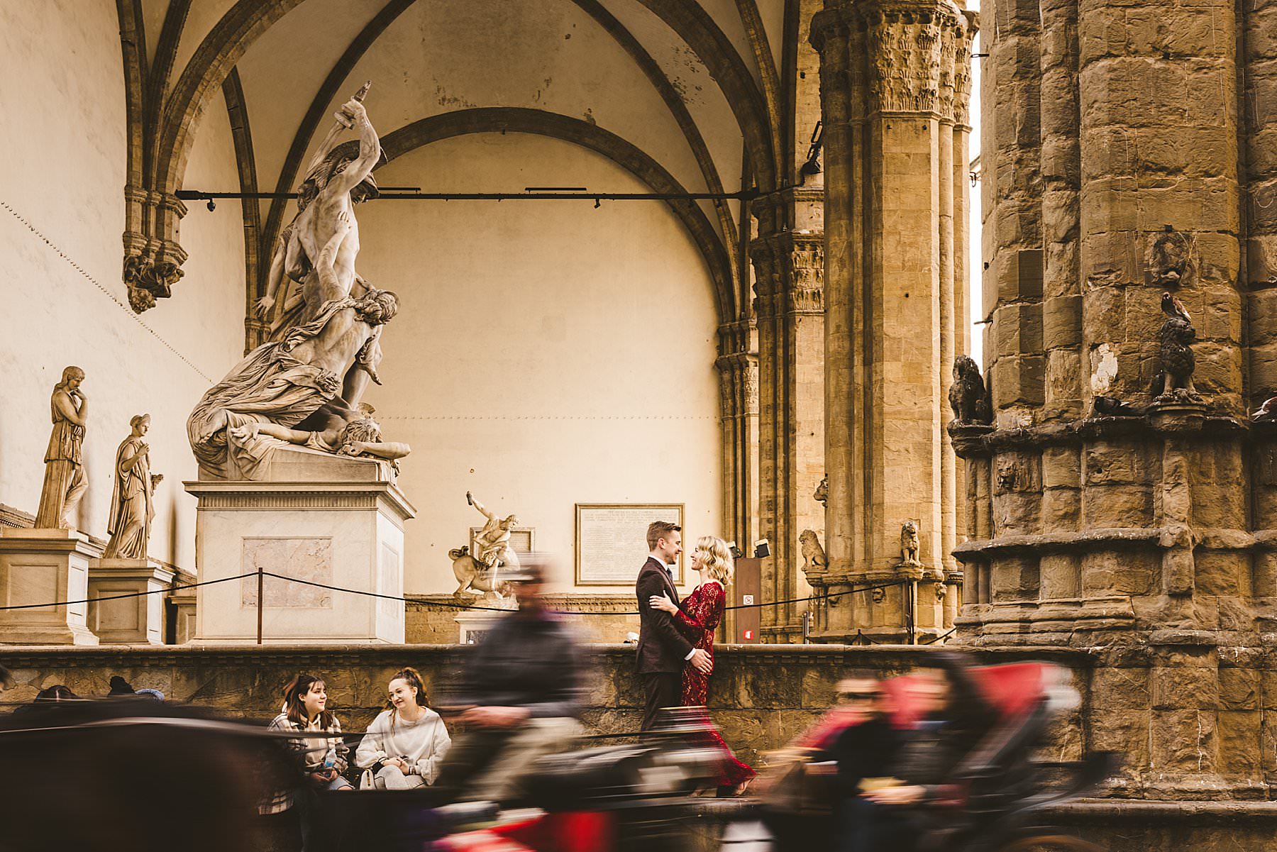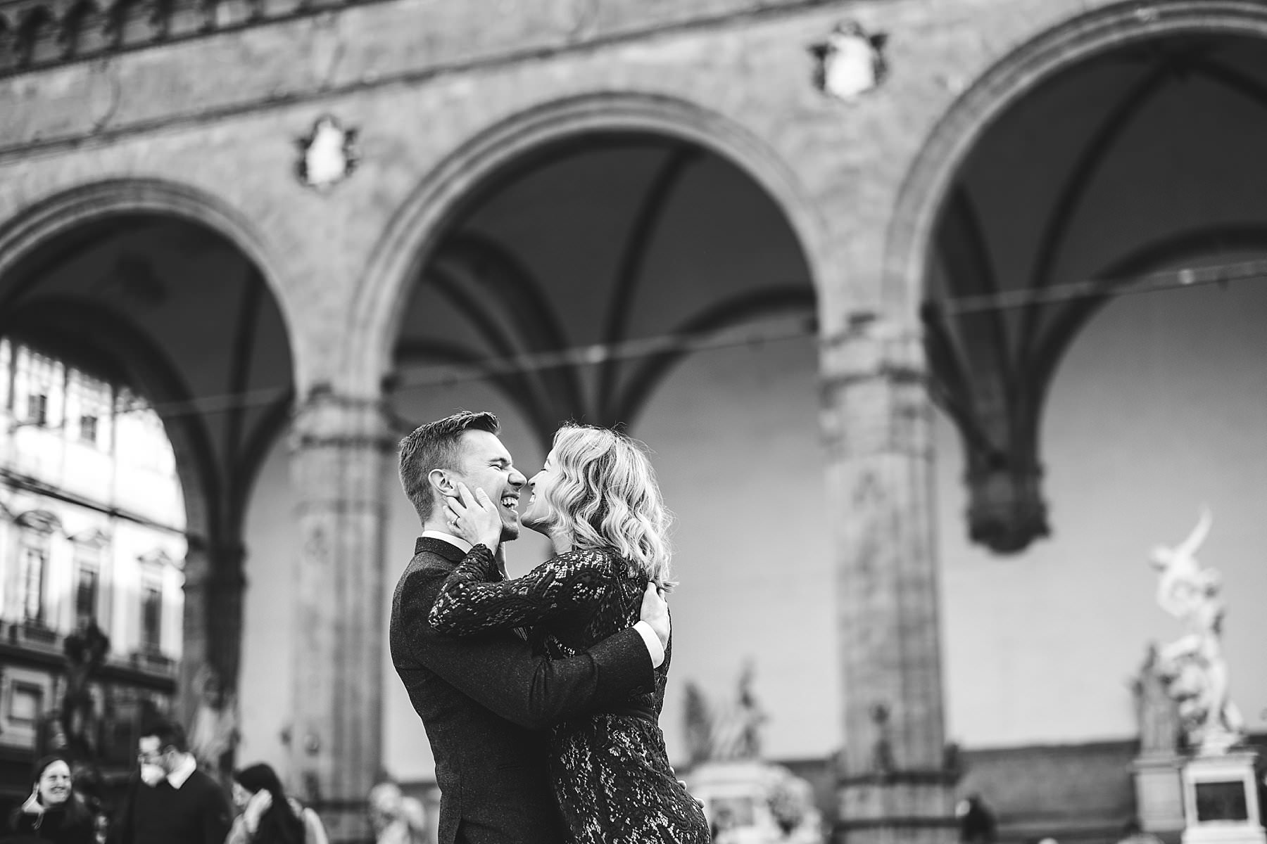 Lovely couple photo shoot in Florence near Palazzo Vecchio. Photo by the Italian elegant and creative couple portrait photographer in Tuscany based Florence Gabriele Fani