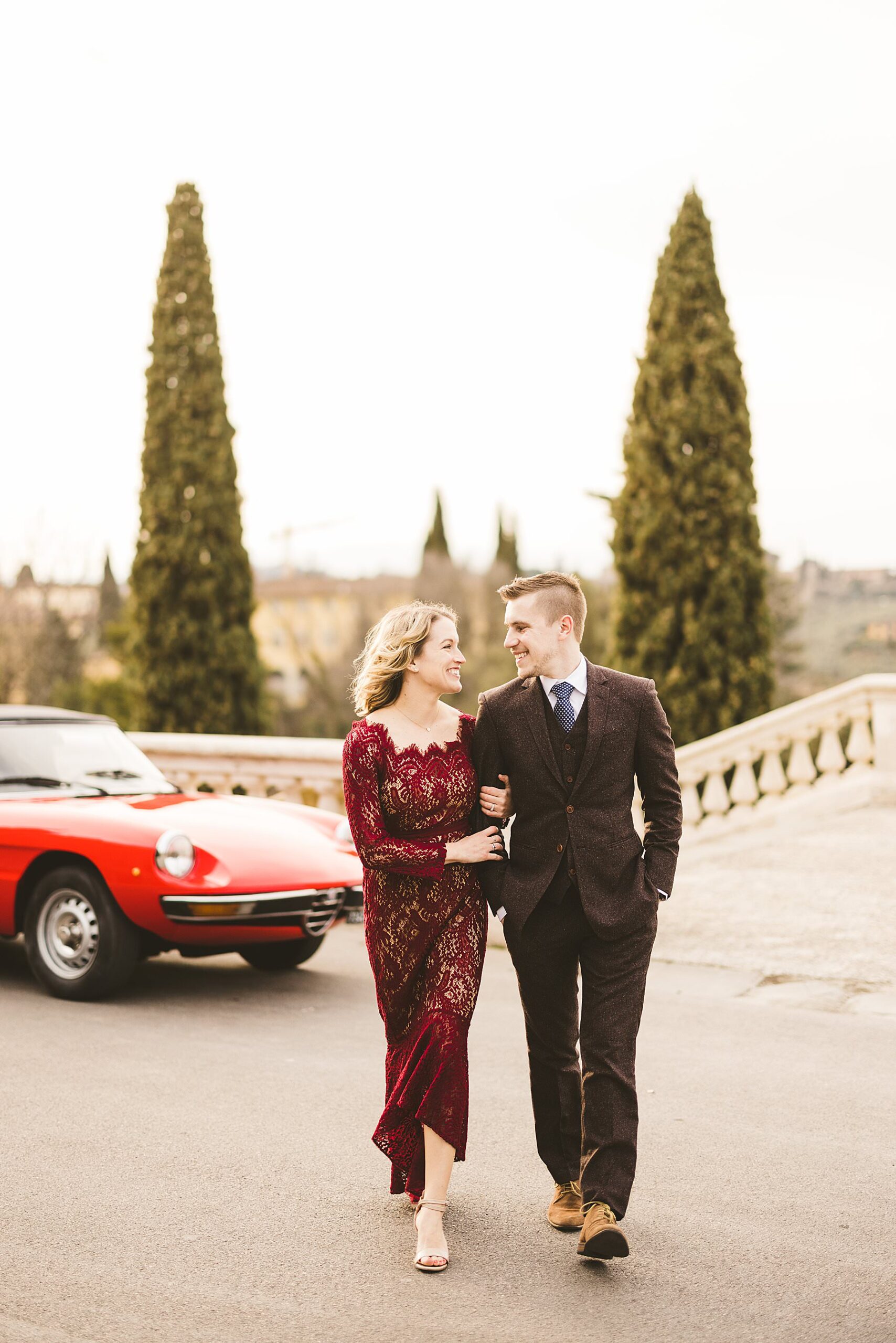 That’s why they contacted me to shoot their wedding anniversary photos around Florence and its beautiful surroundings. Moreover, they rented a passion red vintage Alfa Spider – which I think perfectly fits their personality – to make the shooting even more memorable.