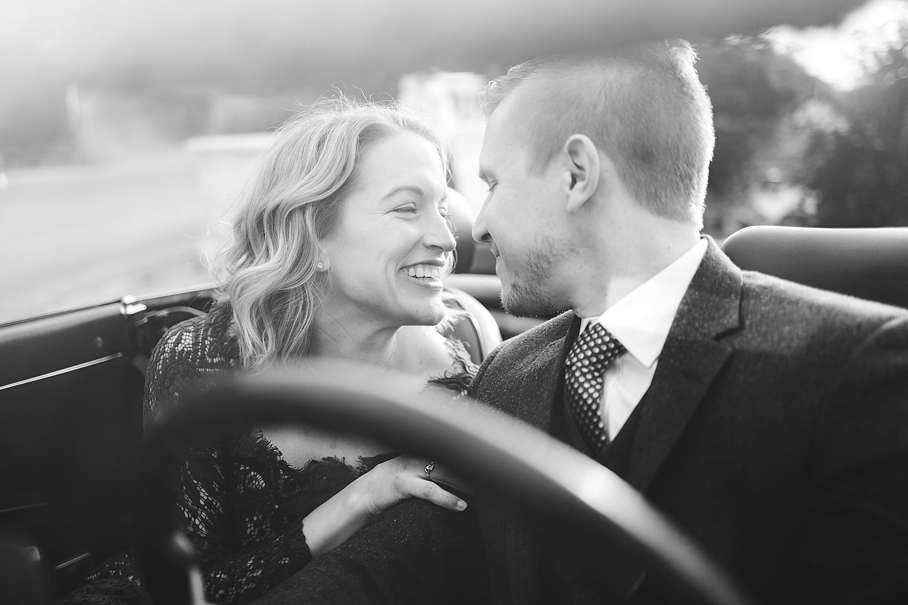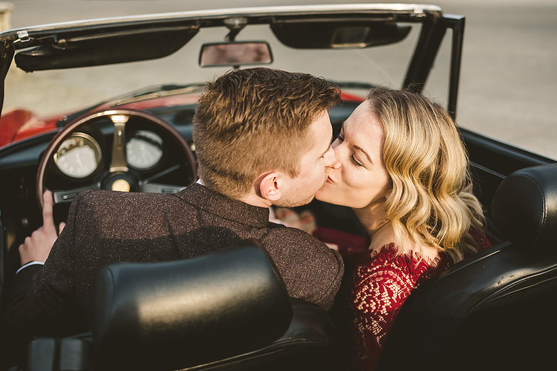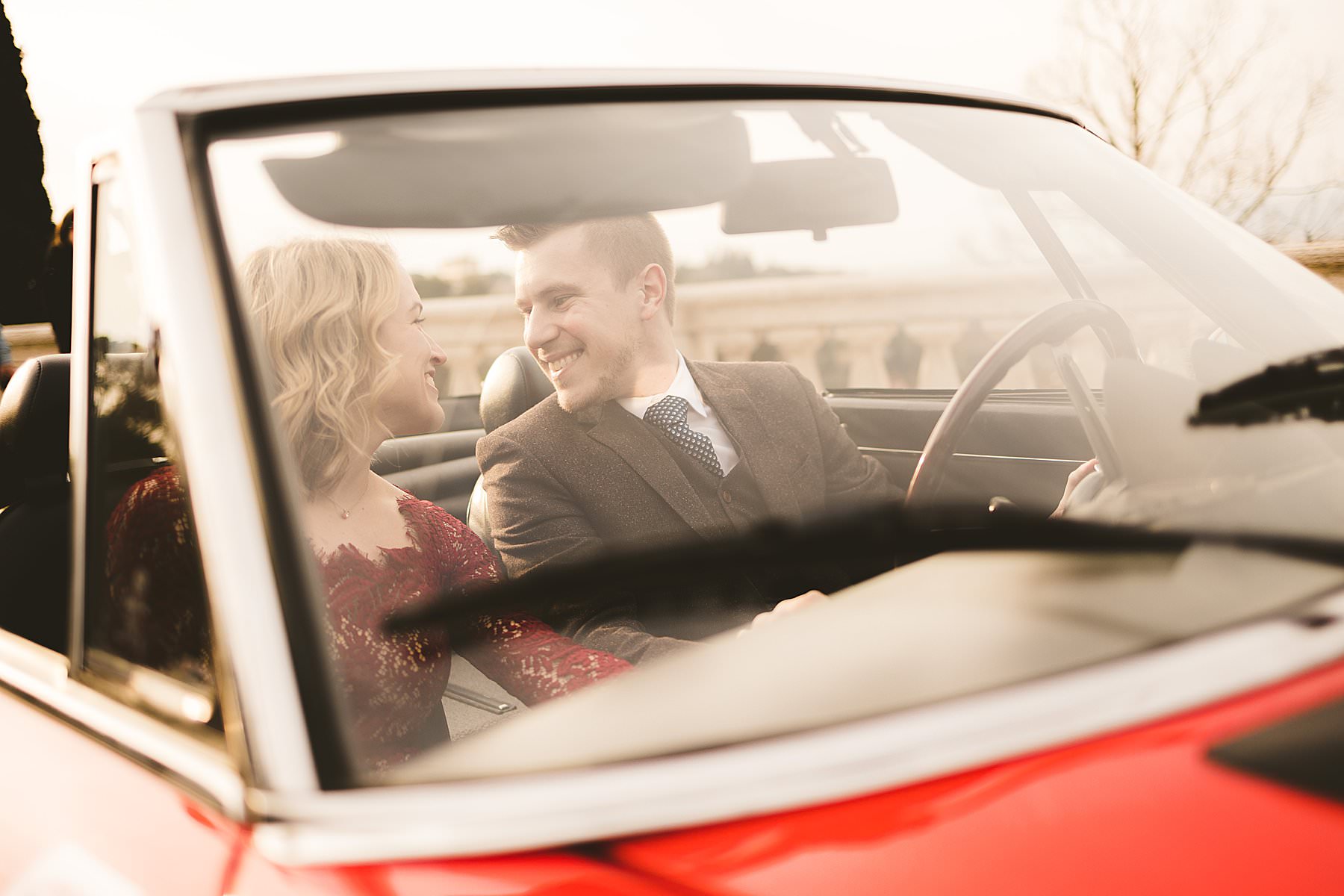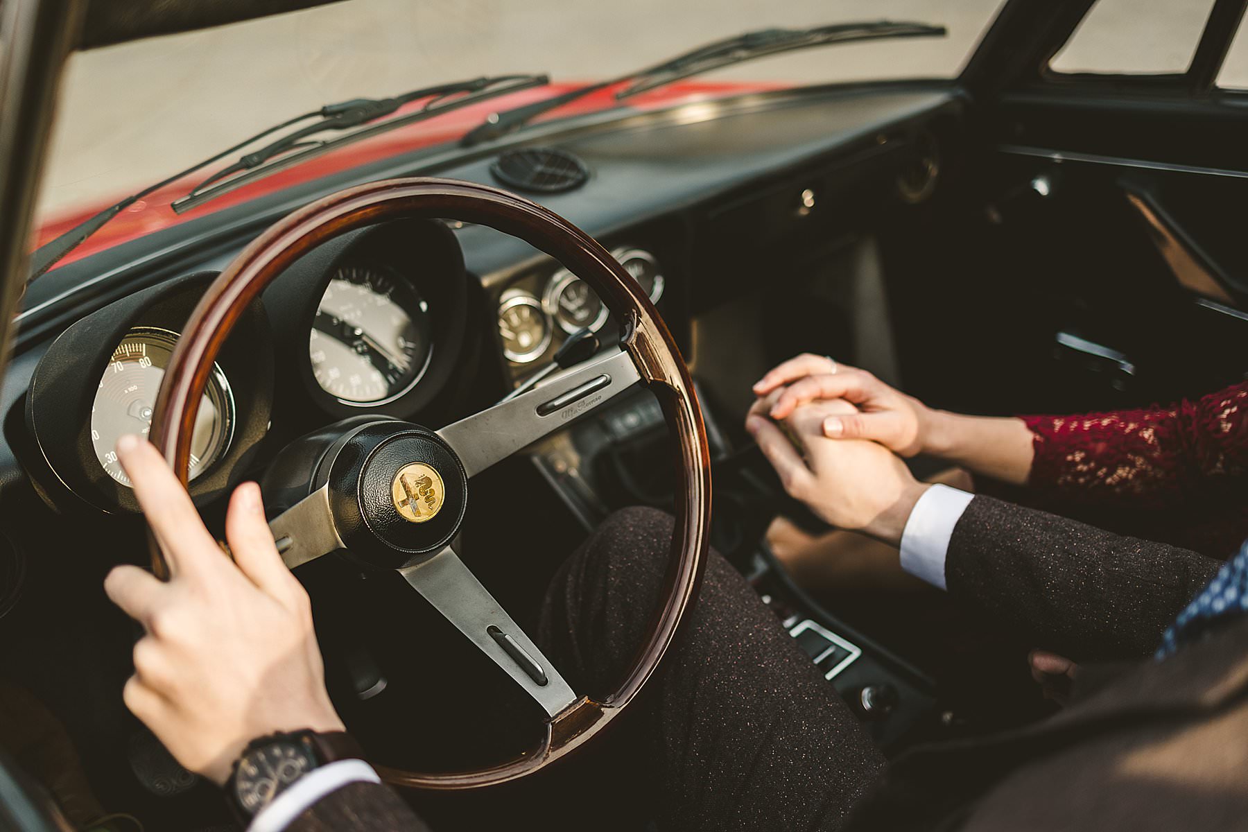 Unusual wedding anniversary photo experience in Florence with vintage Alfa Romeo Spider. Photo by the Italian elegant and creative couple portrait photographer in Tuscany based Florence Gabriele Fani