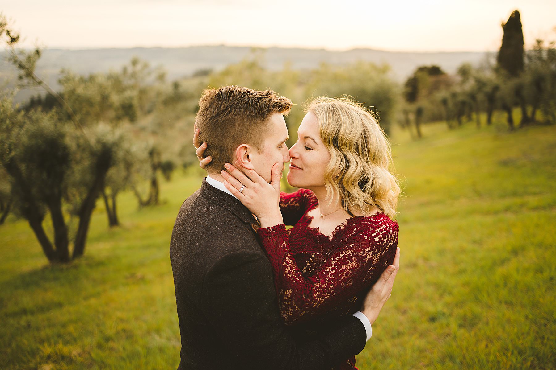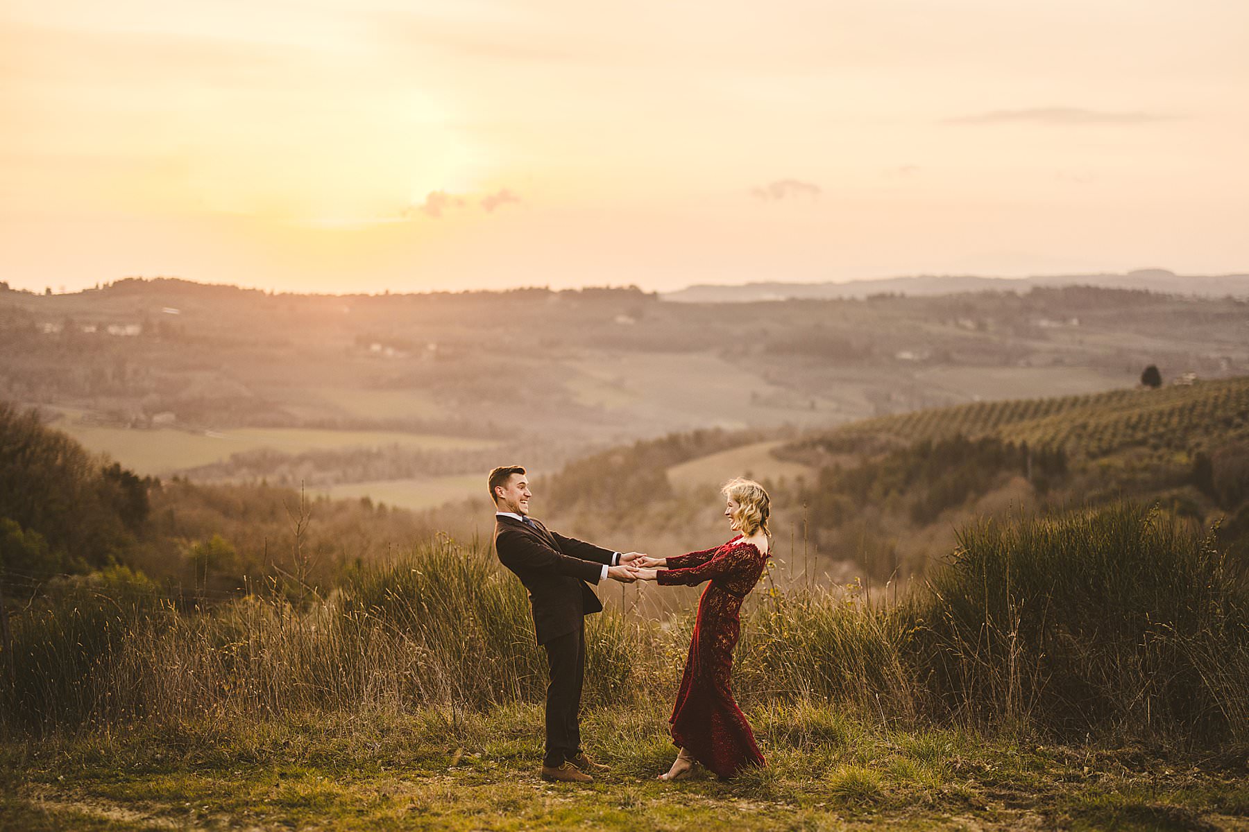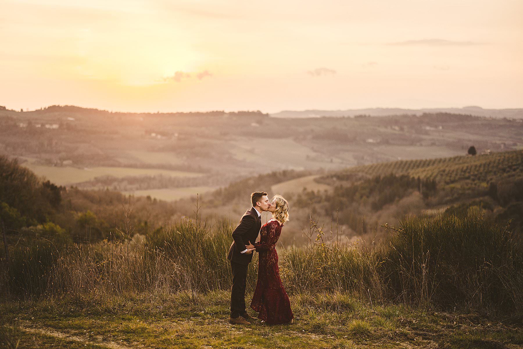 Last, but not least, the grand finale: it was almost sunset time when we reached the rolling hills of Chianti, where I photographed Amanda and Mark embraced by astounding nature, in an atmosphere that underlined and enhanced the bond between them.