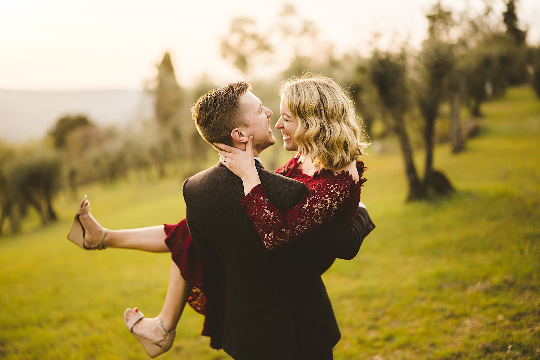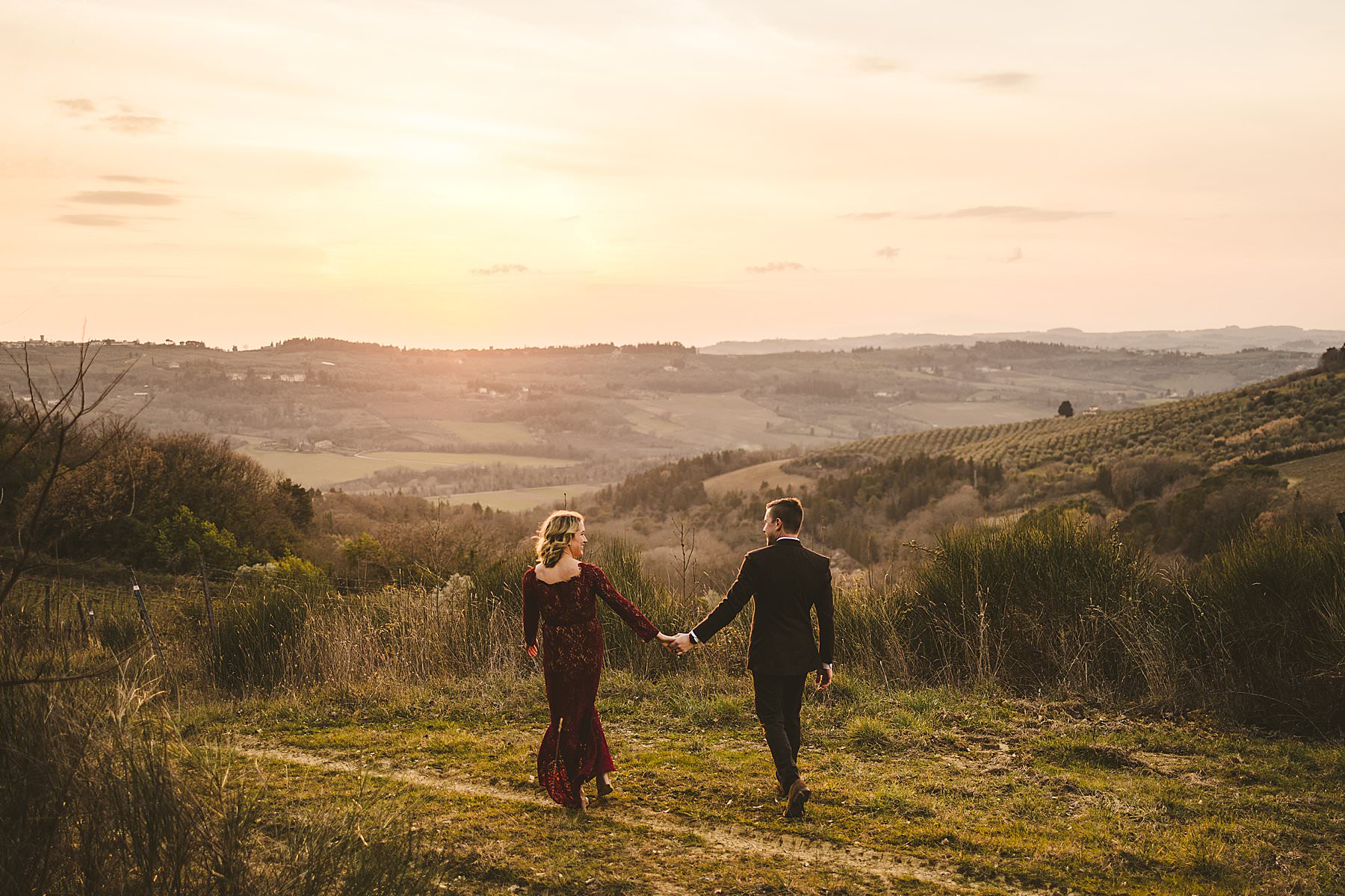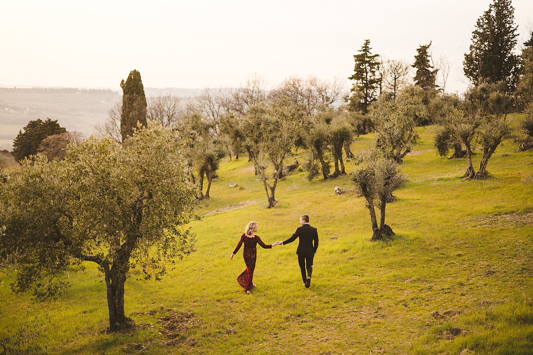Last, but not least, the grand finale: it was almost sunset time when we reached the rolling hills of Chianti, where I photographed Amanda and Mark embraced by astounding nature, in an atmosphere that underlined and enhanced the bond between them.