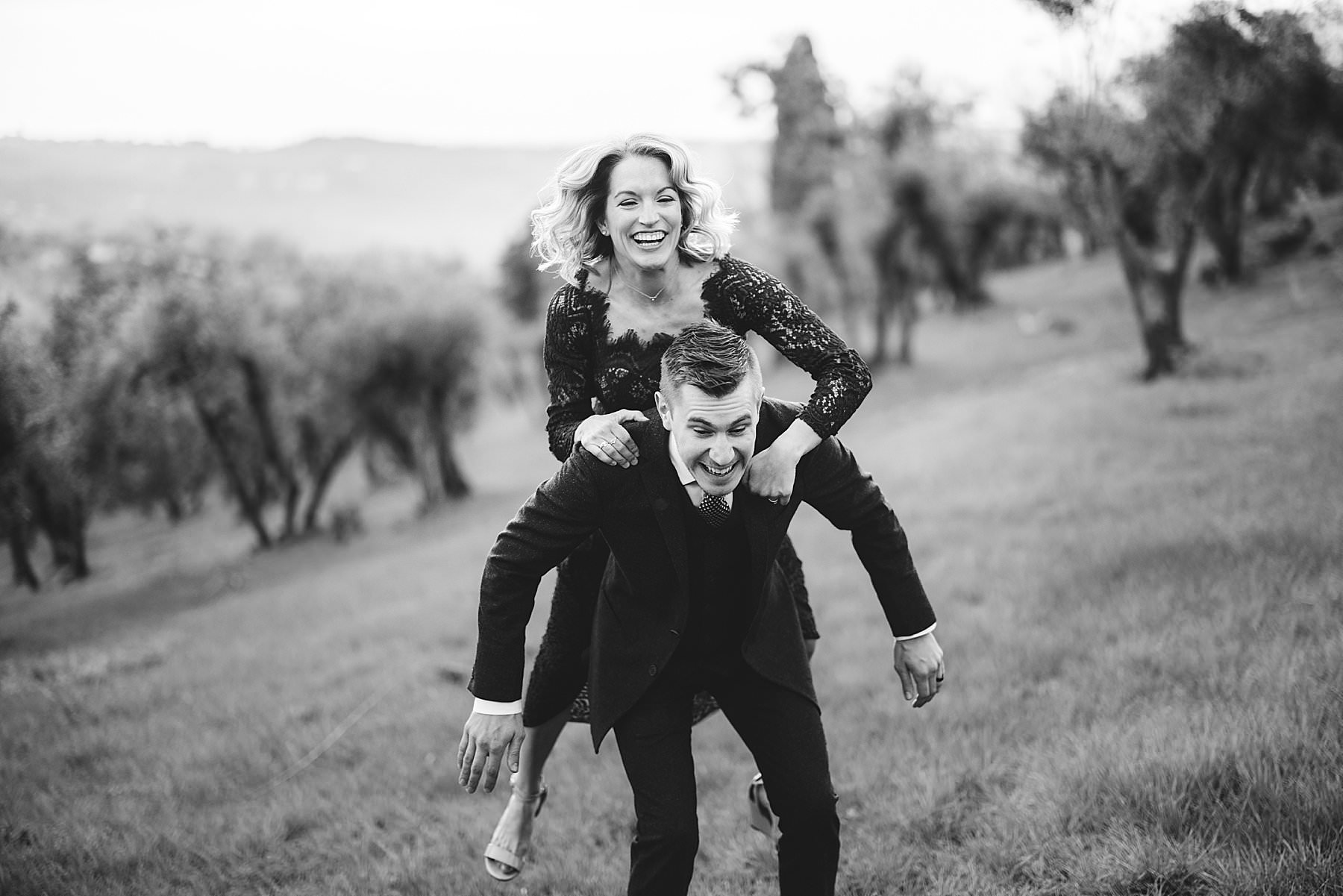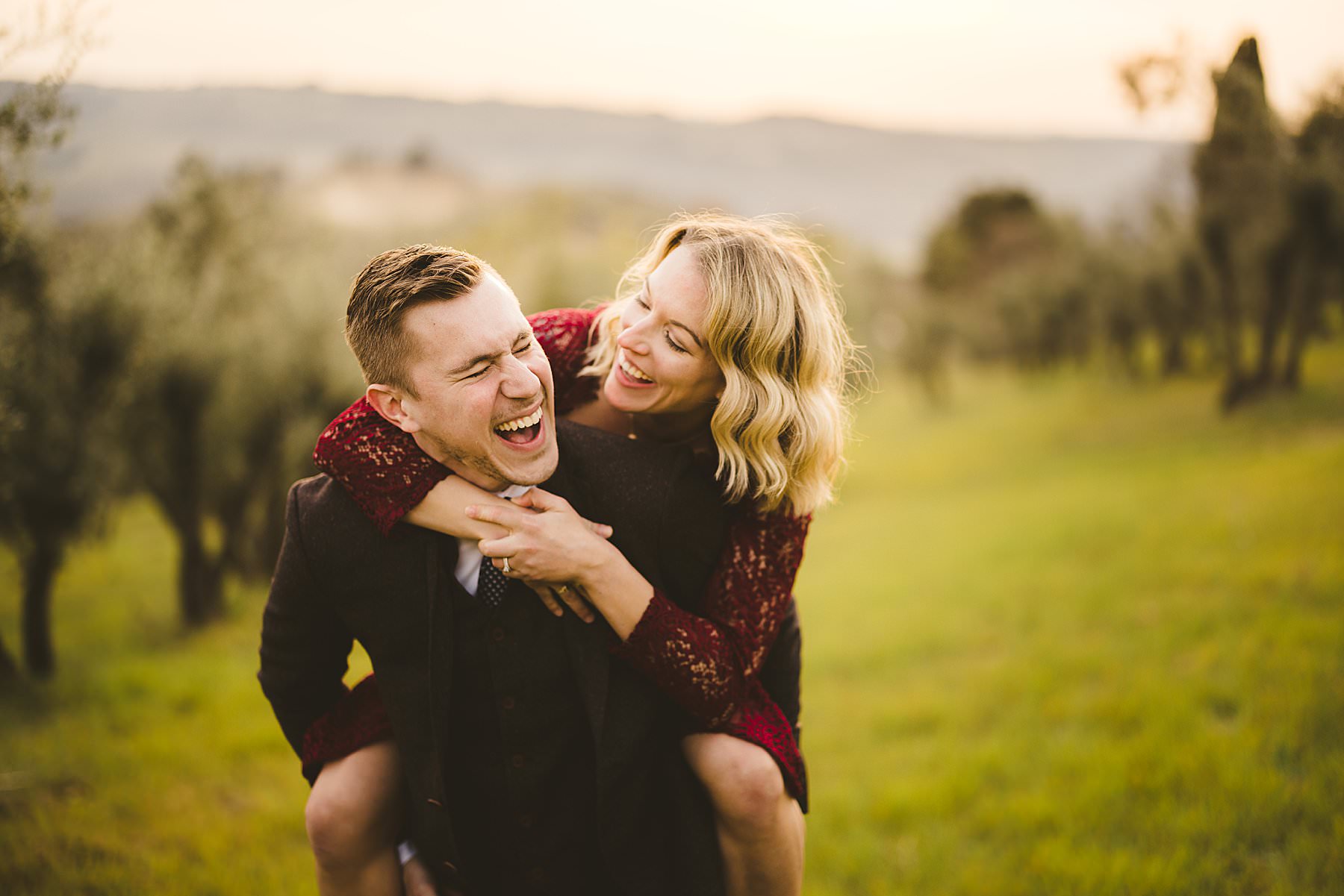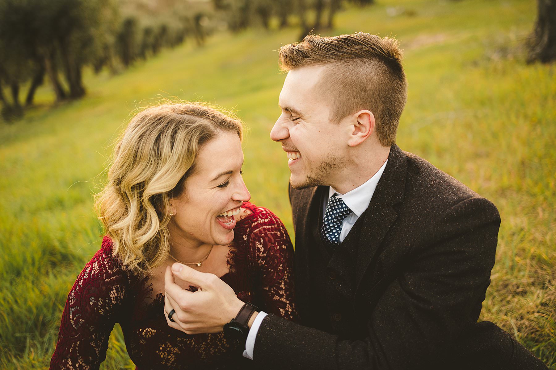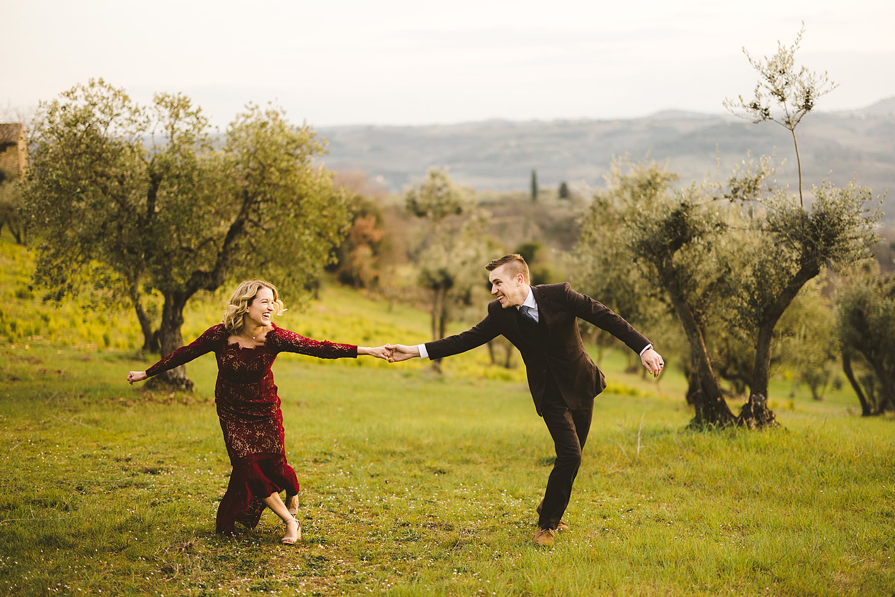 Enthusiastic wedding anniversary candid couple photo shoot in Chianti rolling hills. Photo by the Italian elegant and creative couple portrait photographer in Tuscany based Florence Gabriele Fani