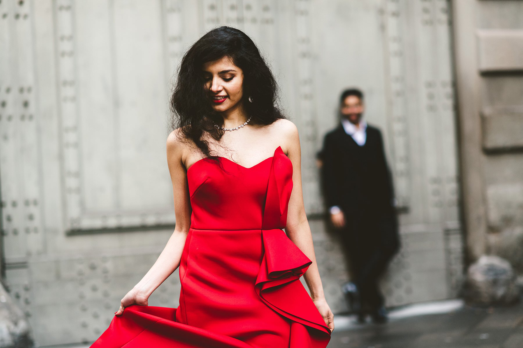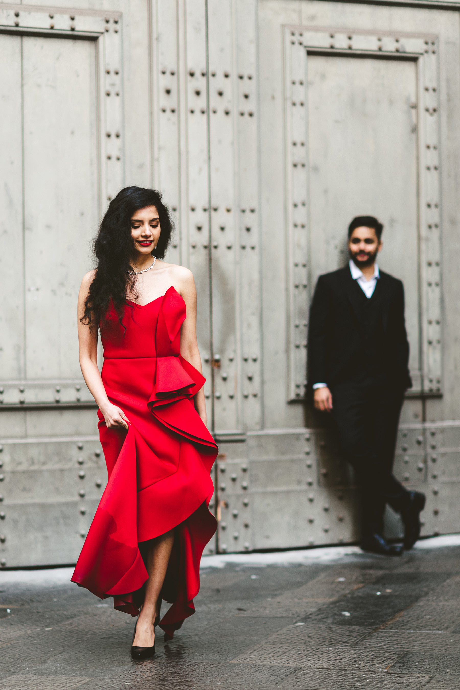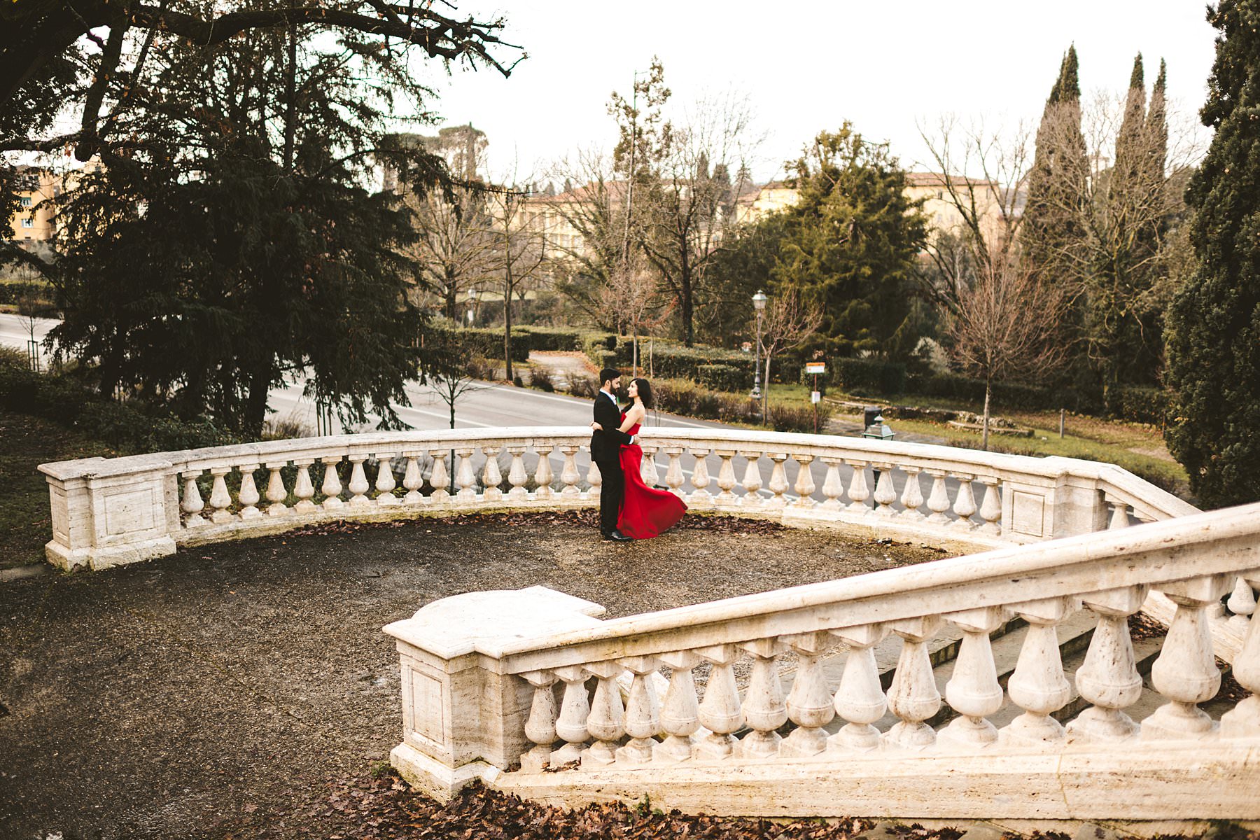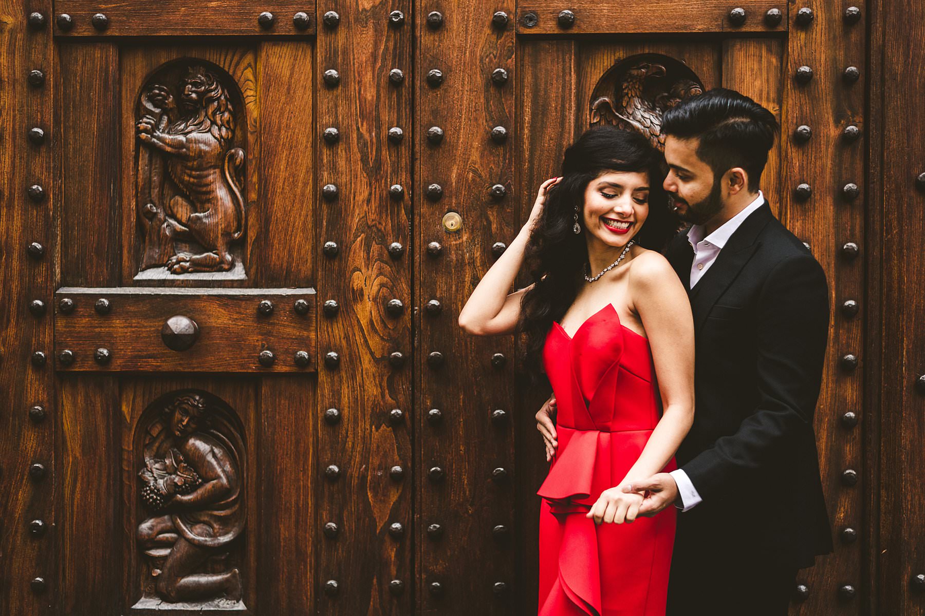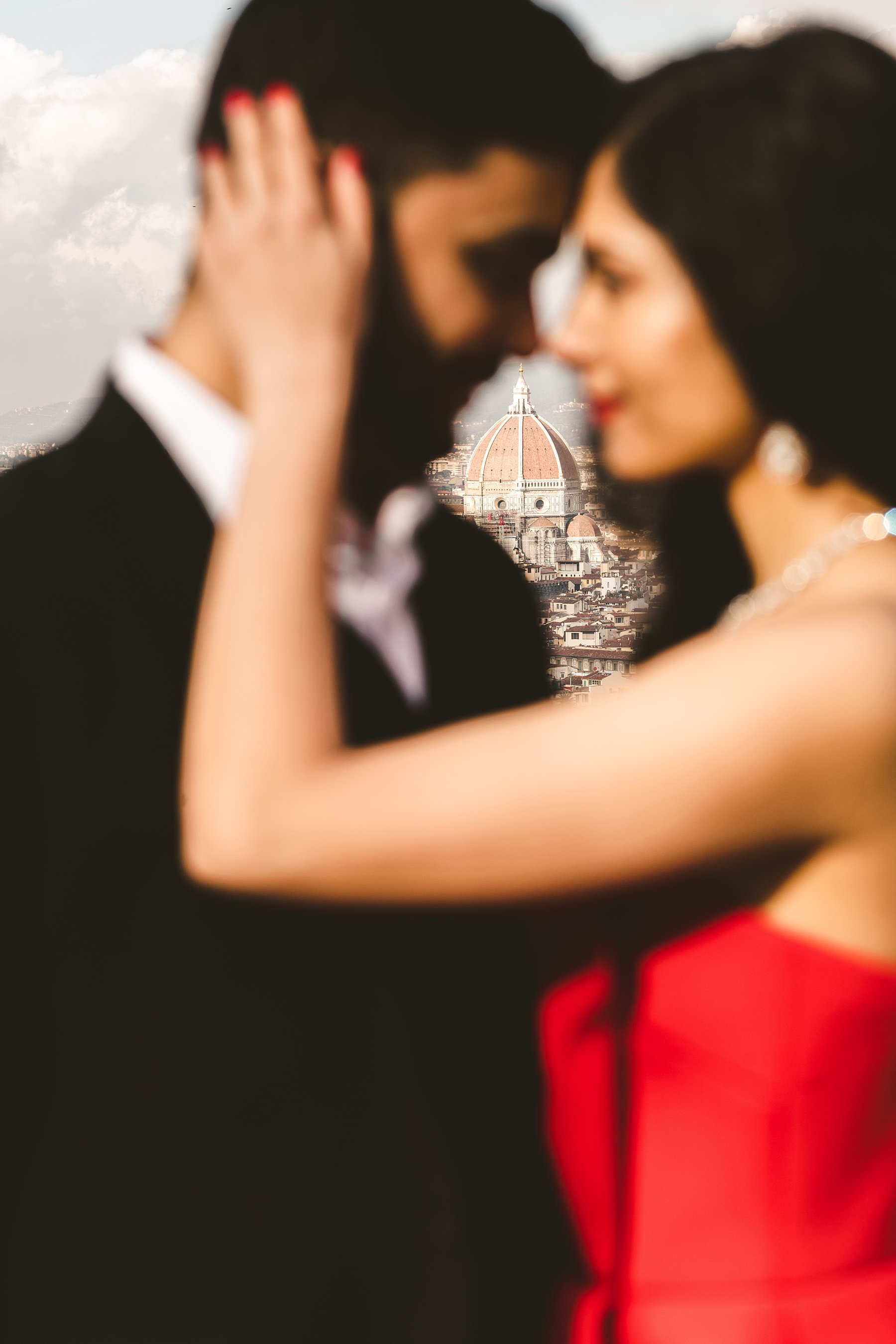 If Florence in winter wasn’t perfect itself as a destination engagement setting, Priya definitely contributed to making it even more fascinating thanks to the stunning red dress she wore during the shooting. She lit up that foggy day and the eyes of every passer-by were on her.